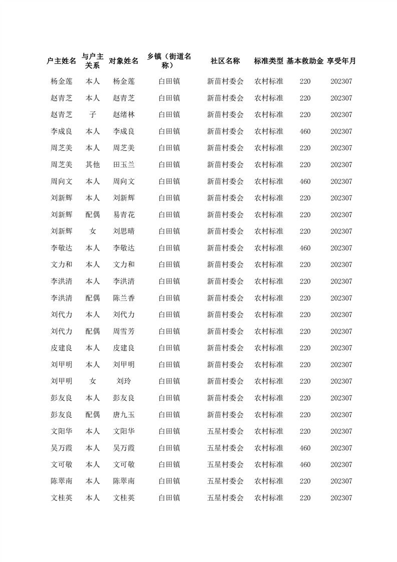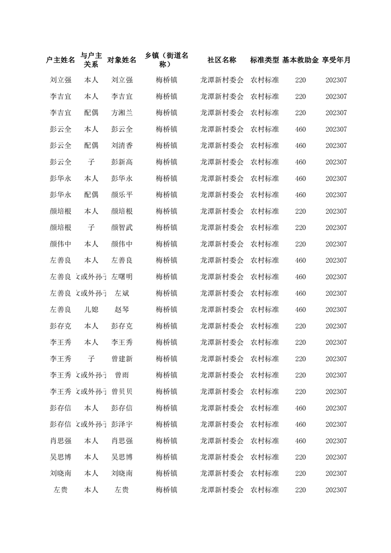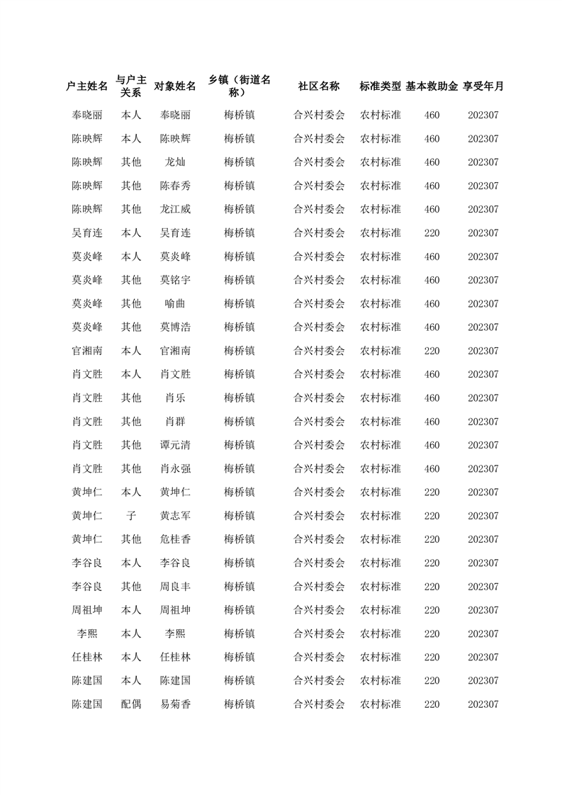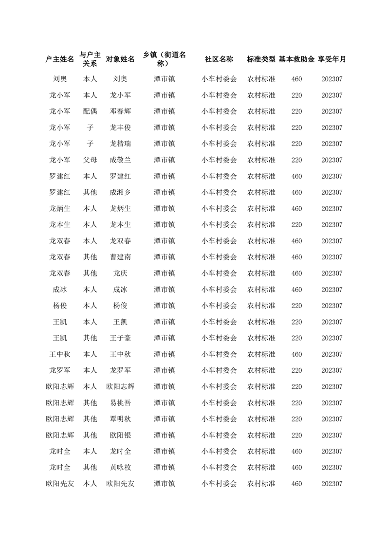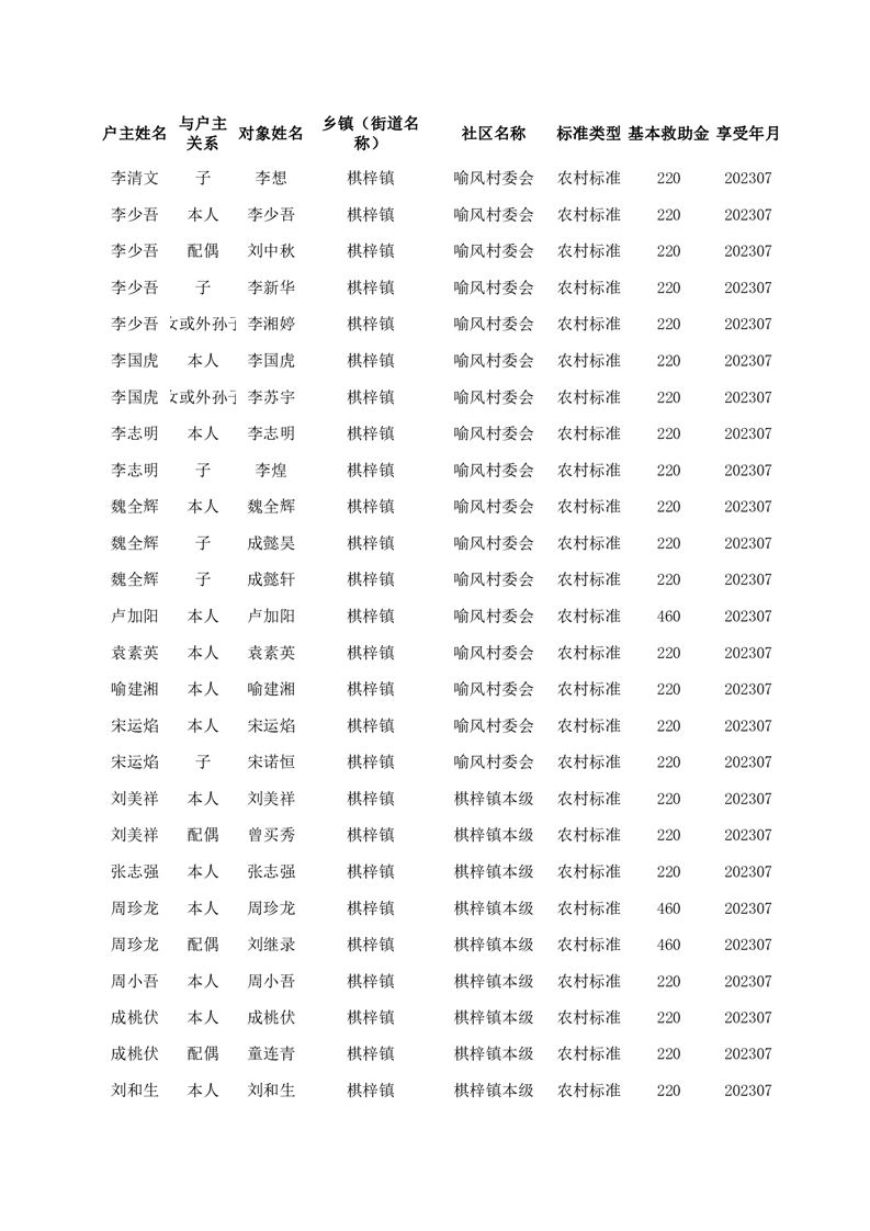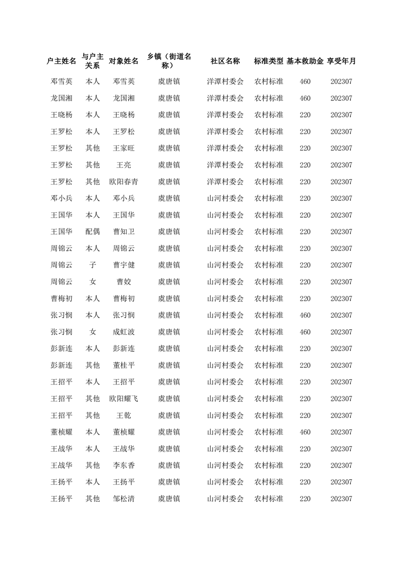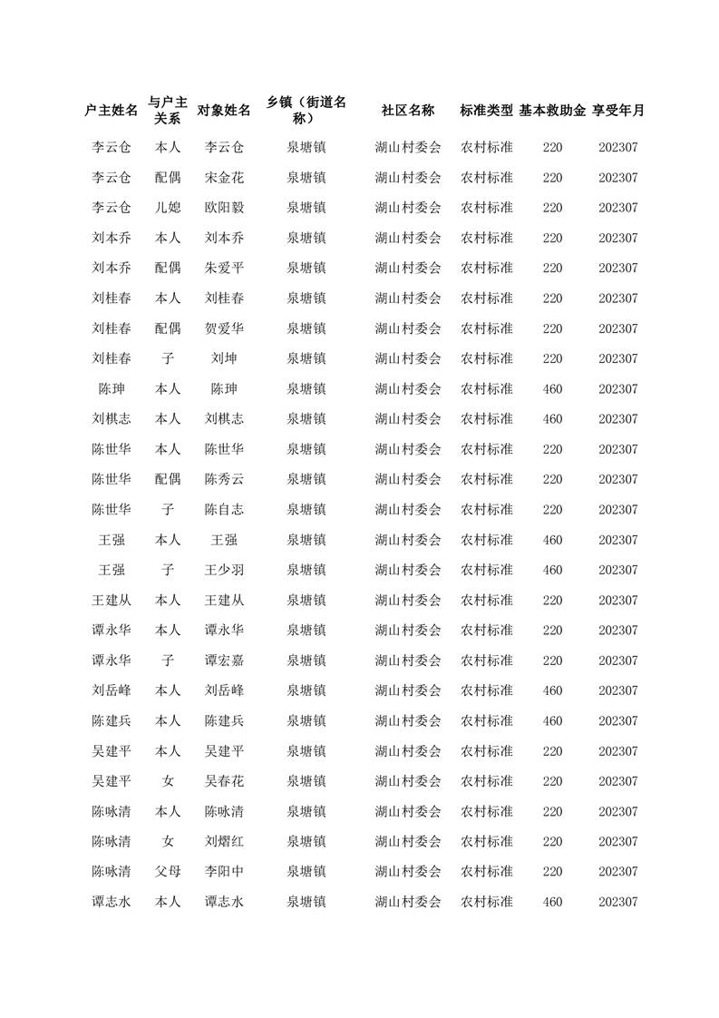 湘鄉市2023年7月份農村低保救助對象審批匯總表