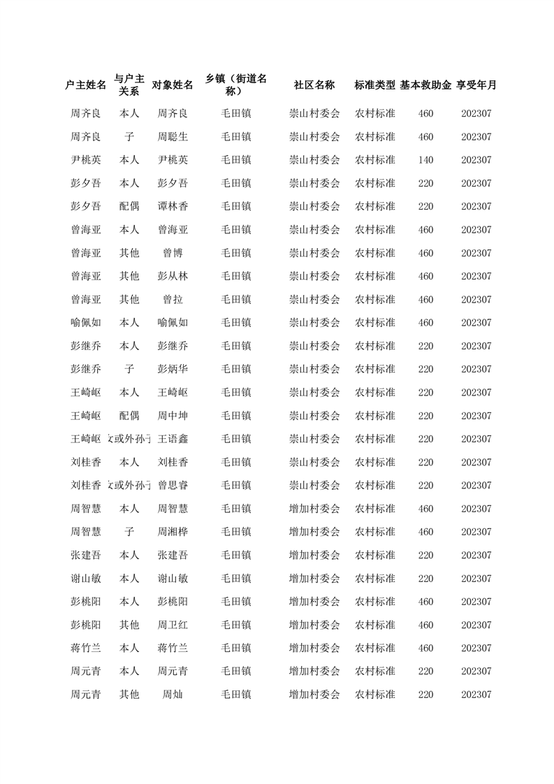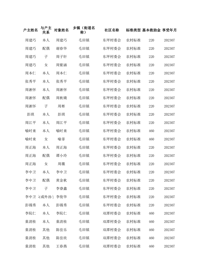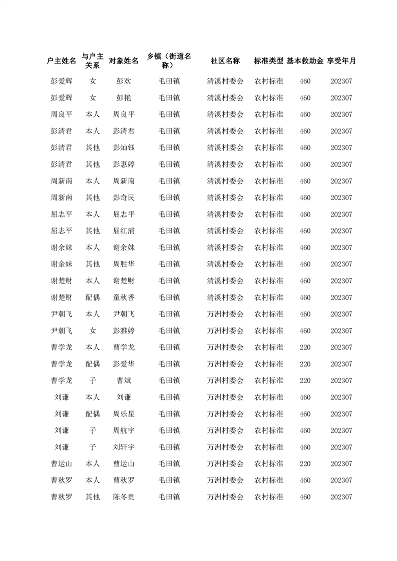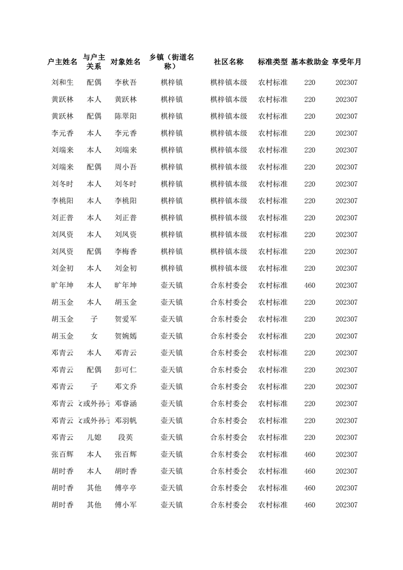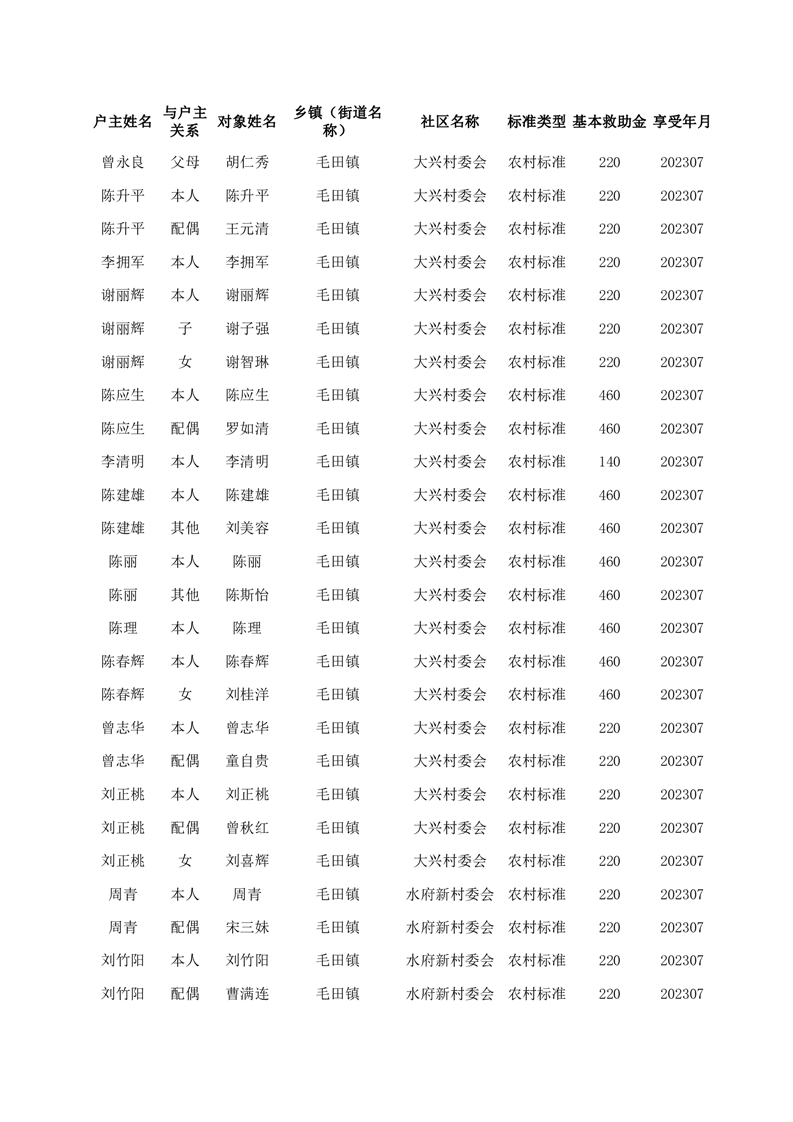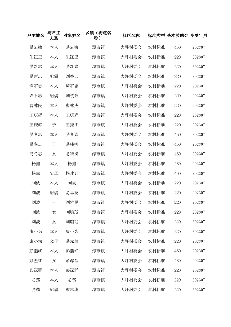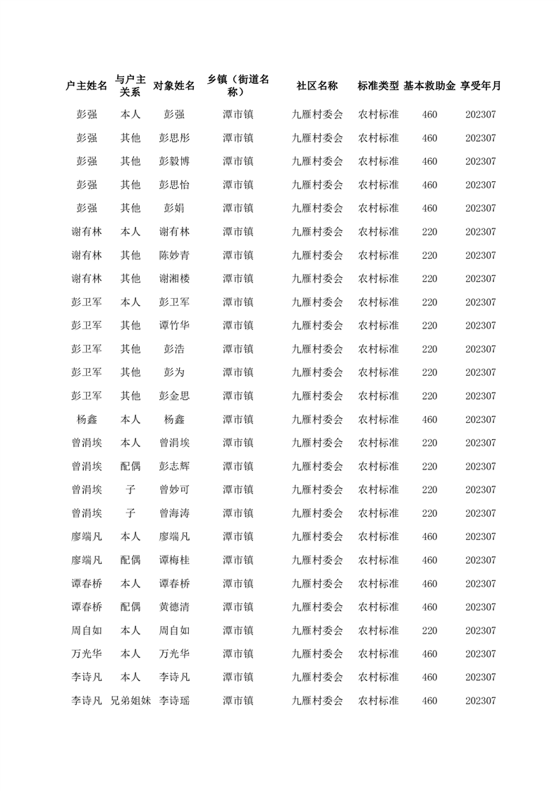 湘鄉市2023年7月份農村低保救助對象審批匯總表