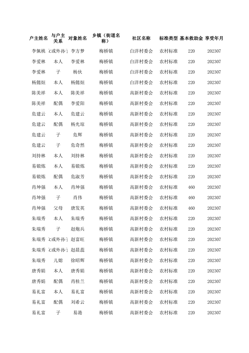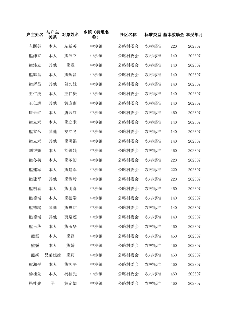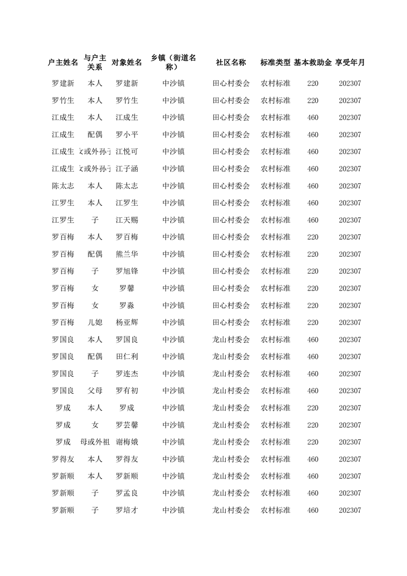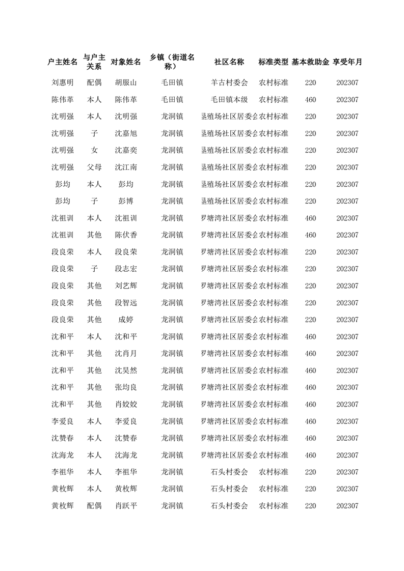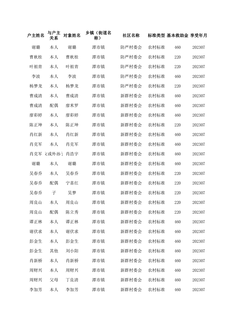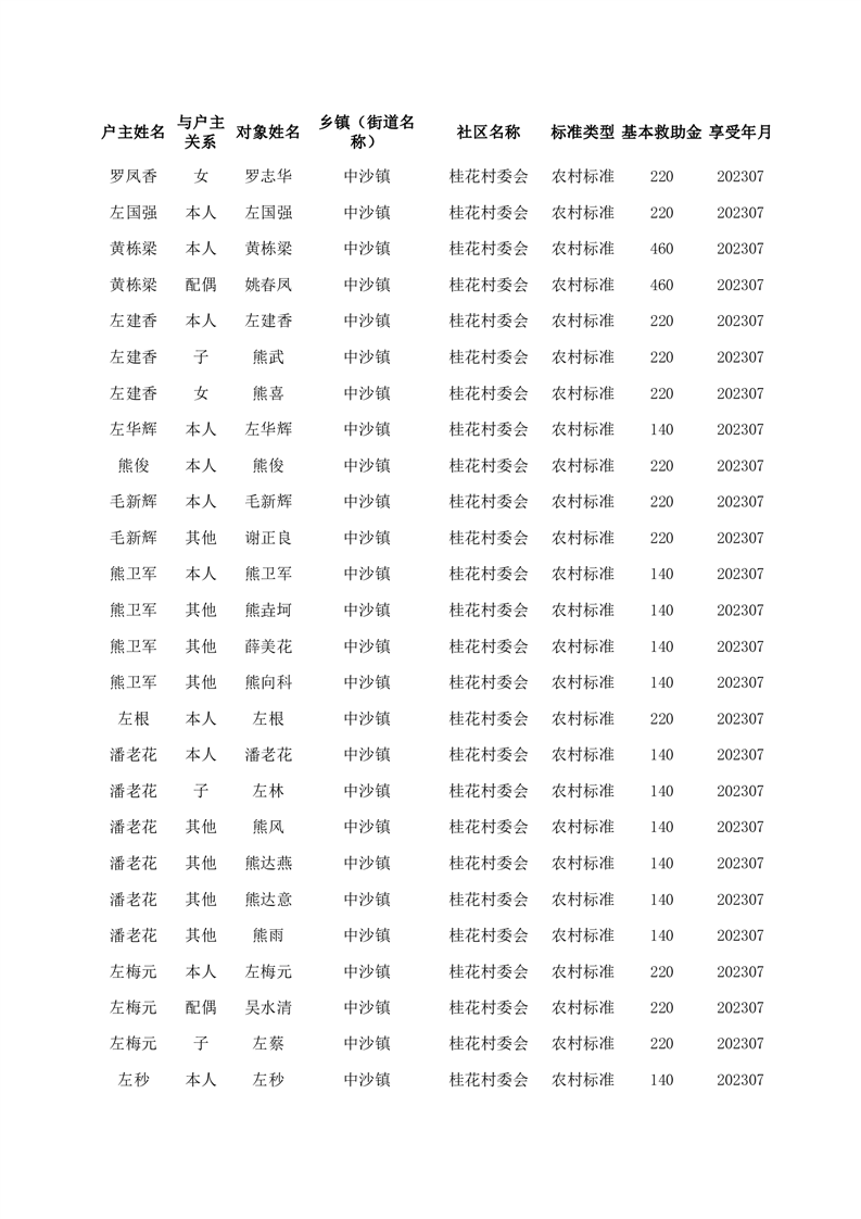 湘鄉市2023年7月份農村低保救助對象審批匯總表