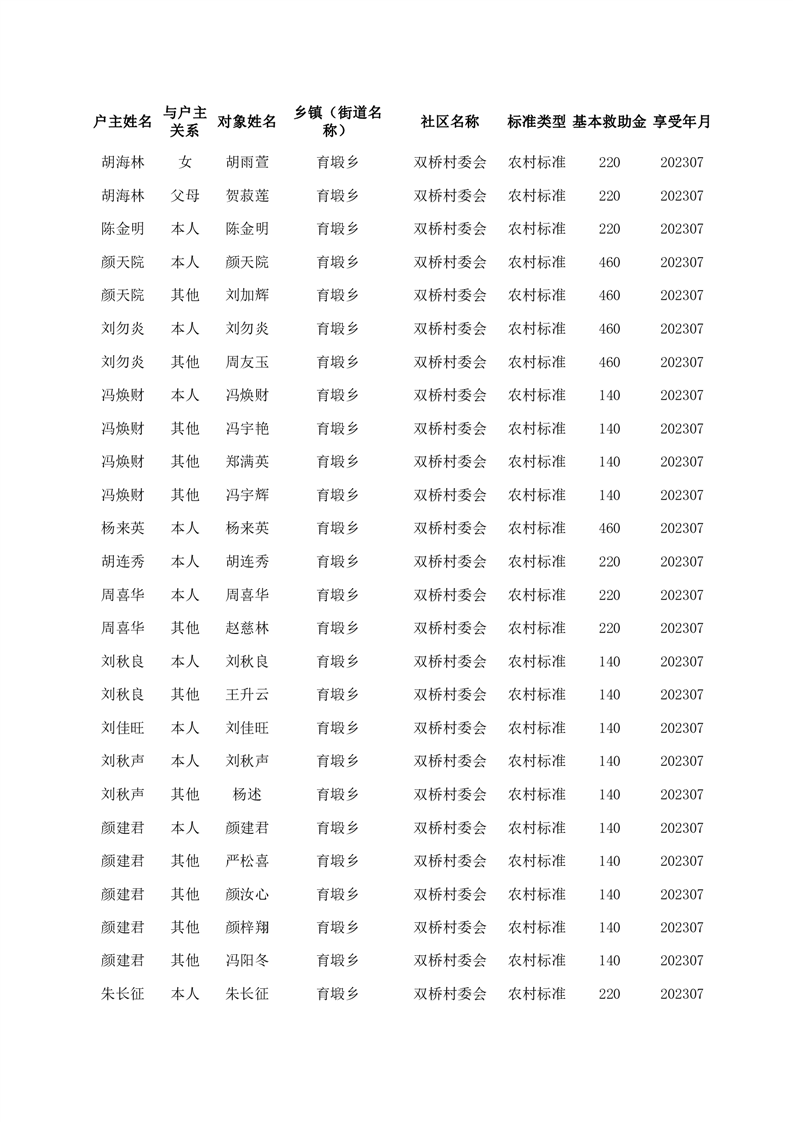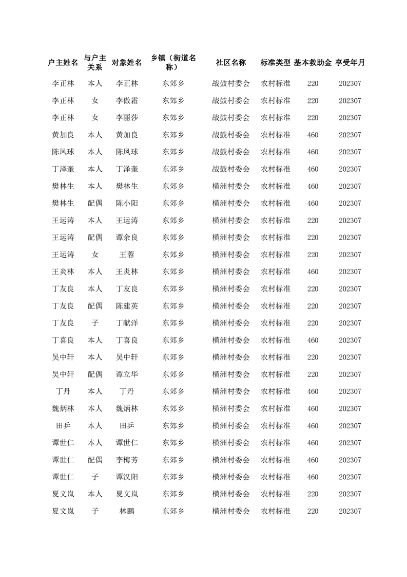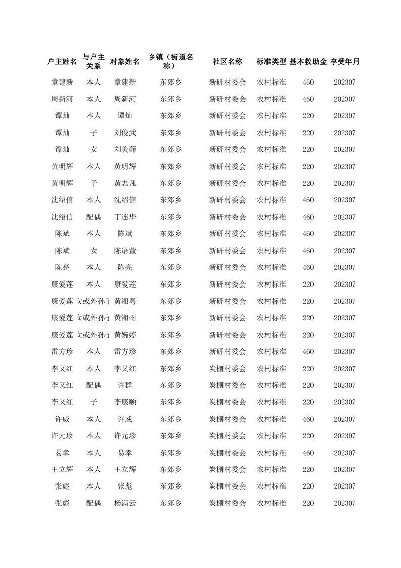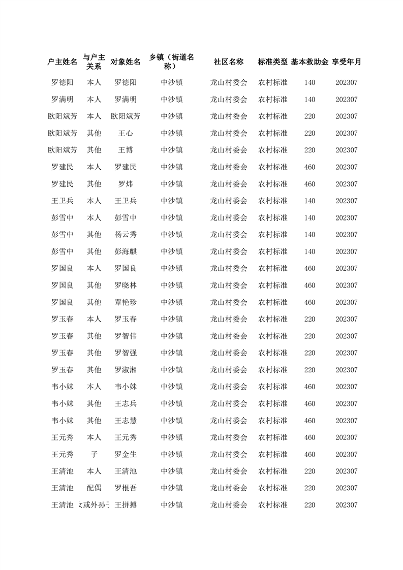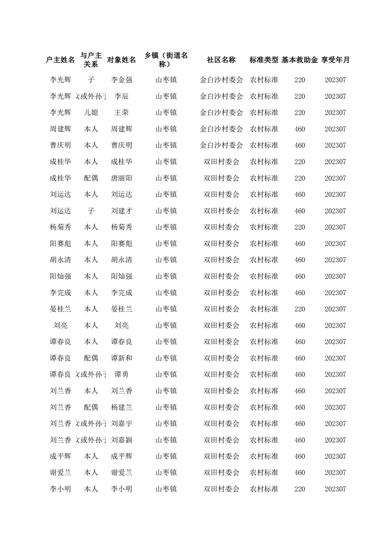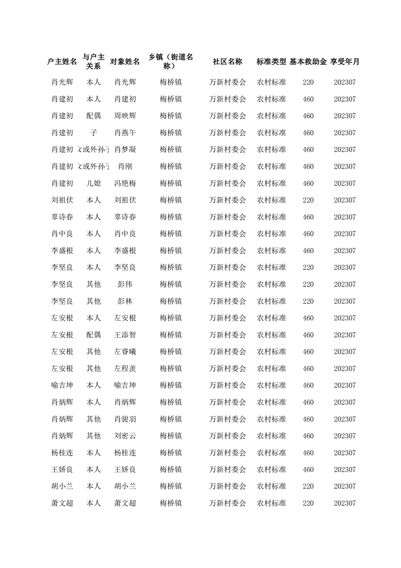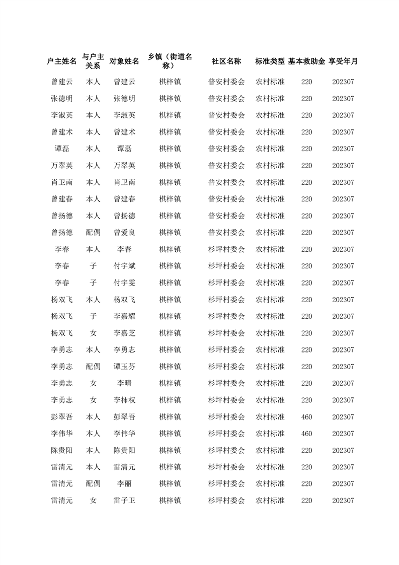 湘鄉市2023年7月份農村低保救助對象審批匯總表