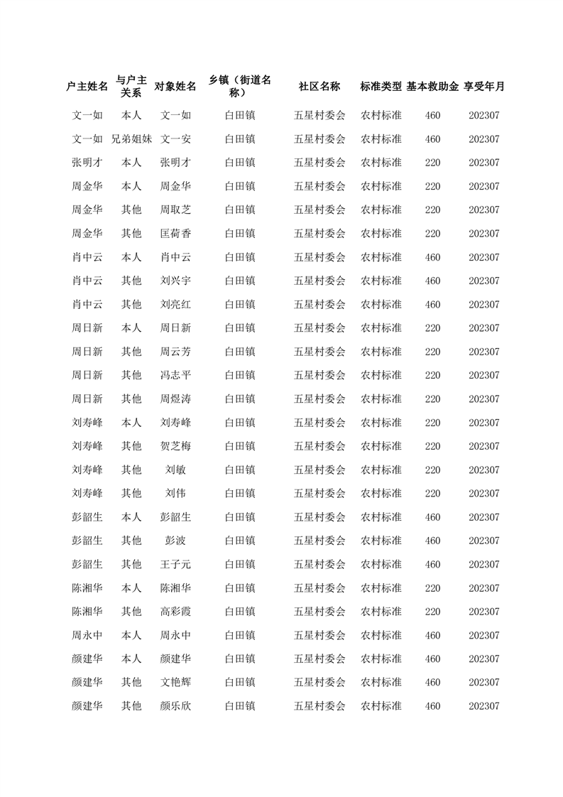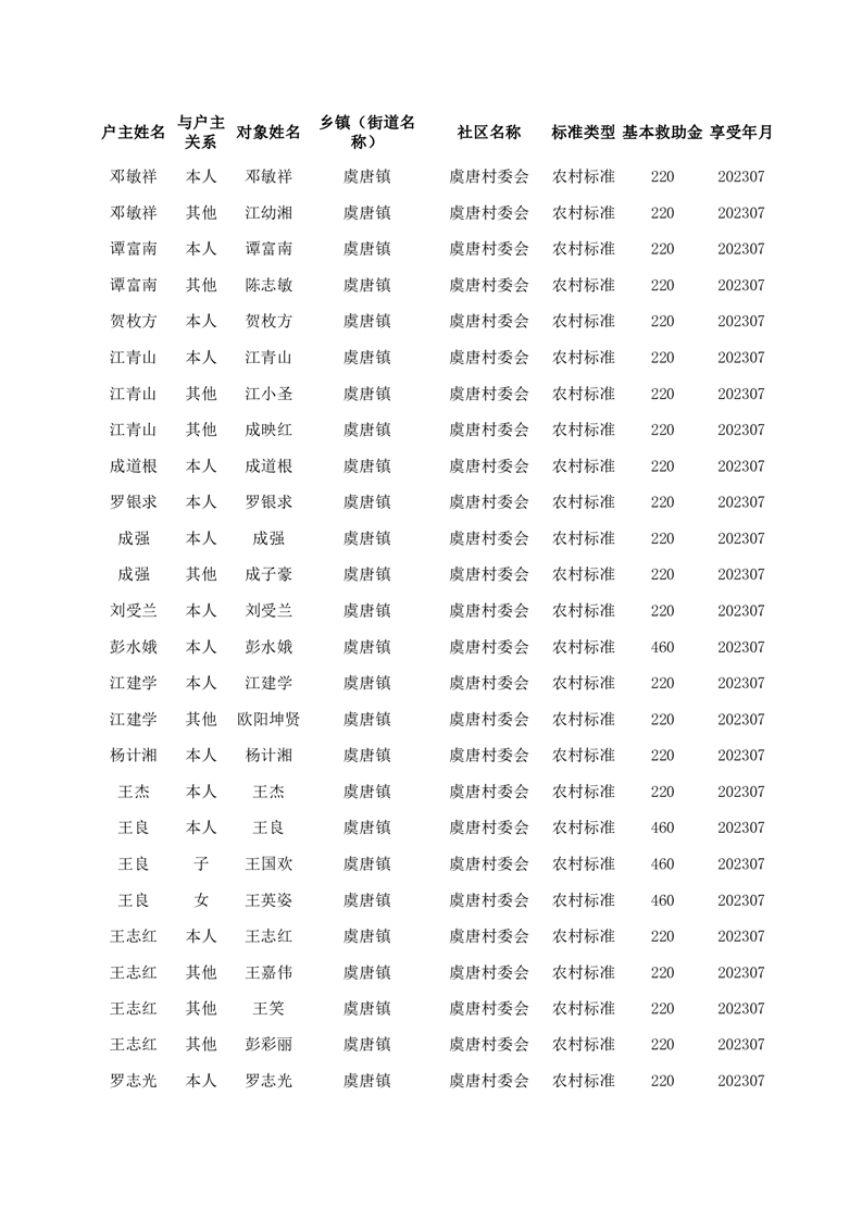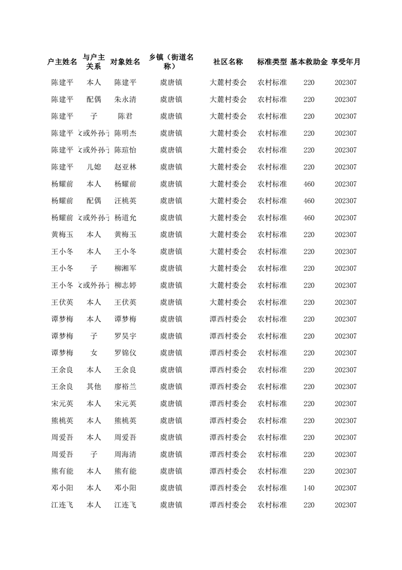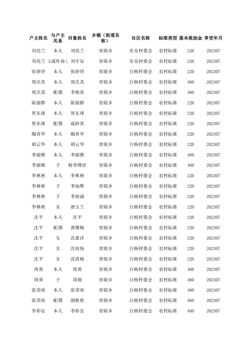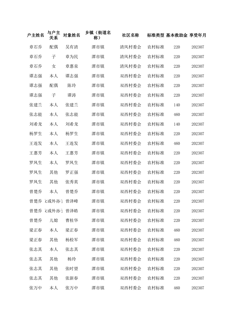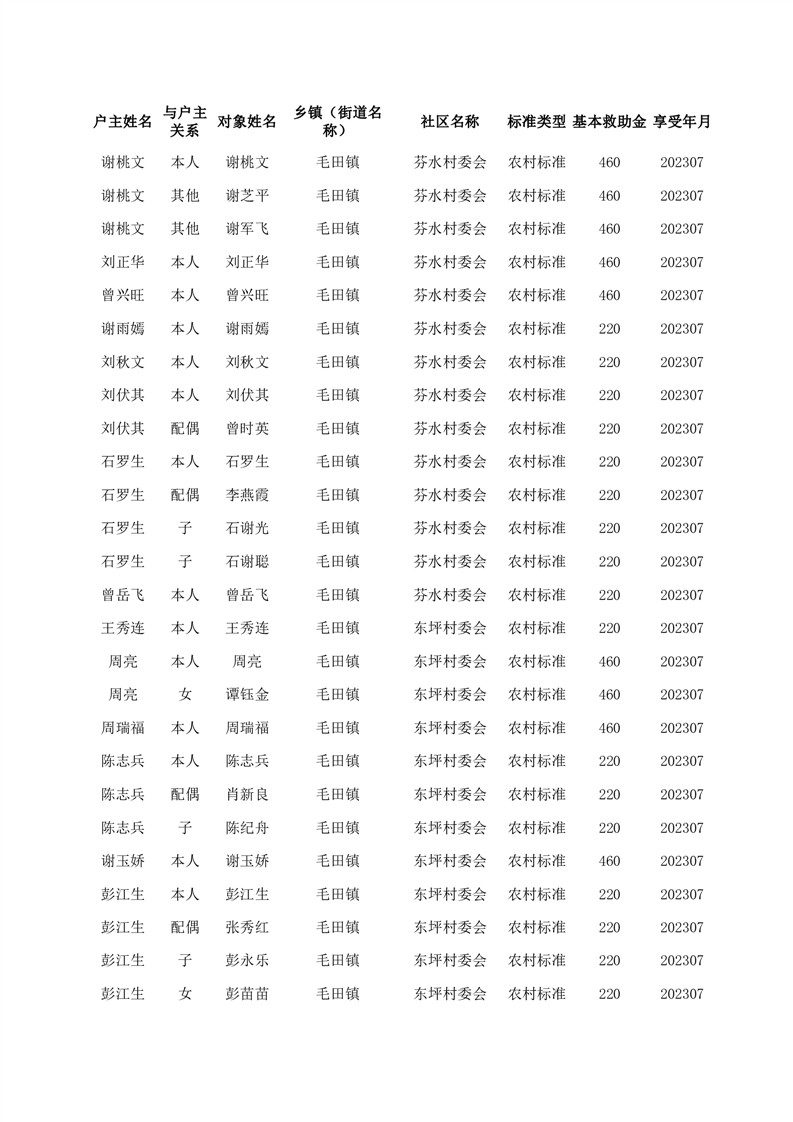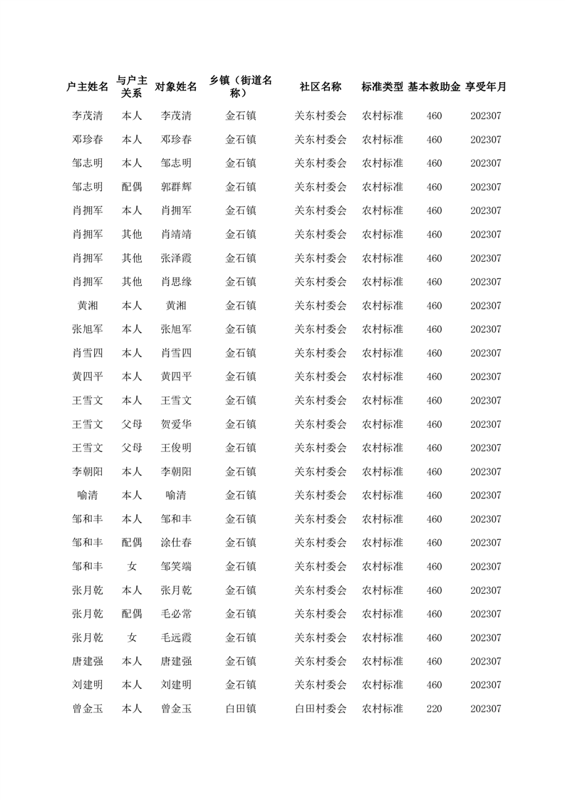 湘鄉市2023年7月份農村低保救助對象審批匯總表