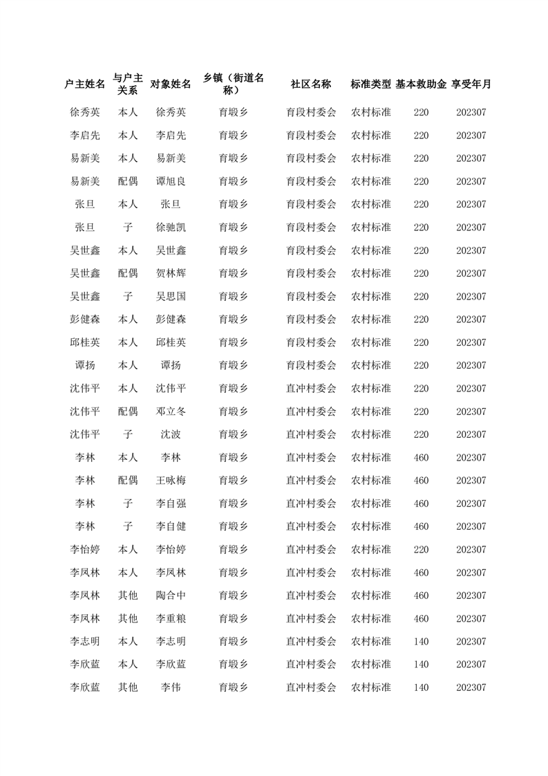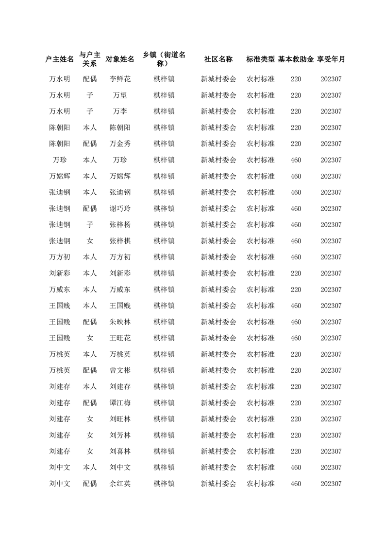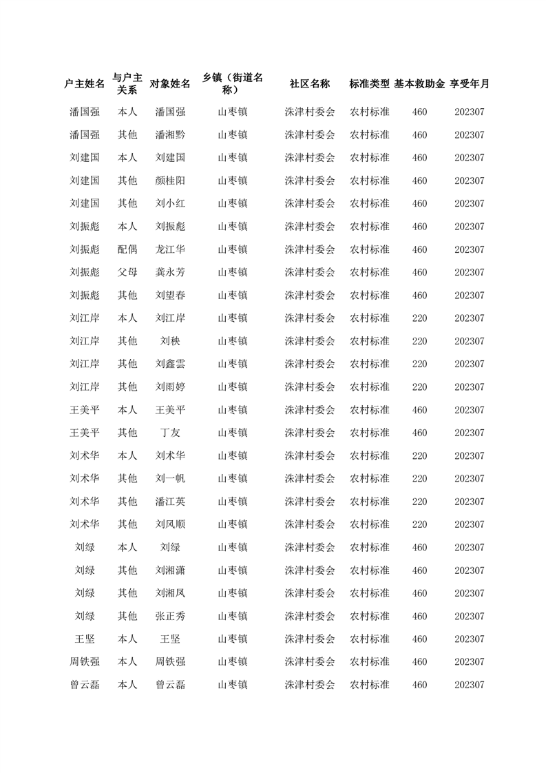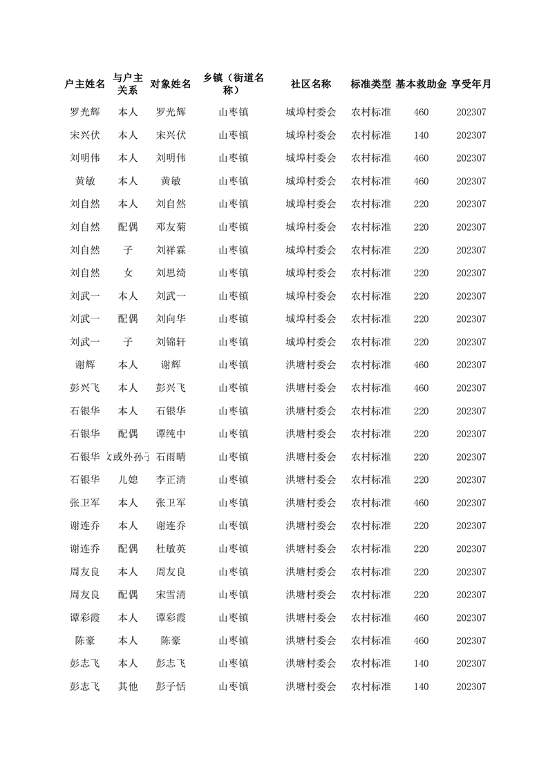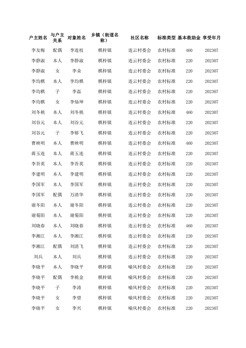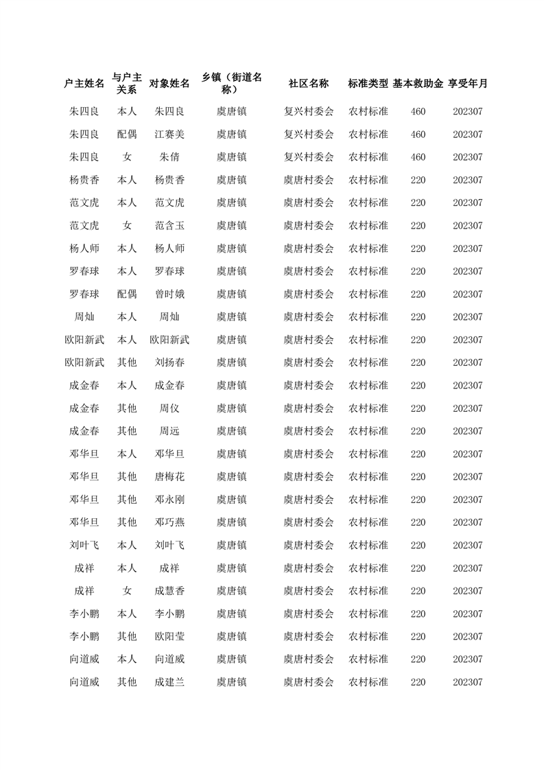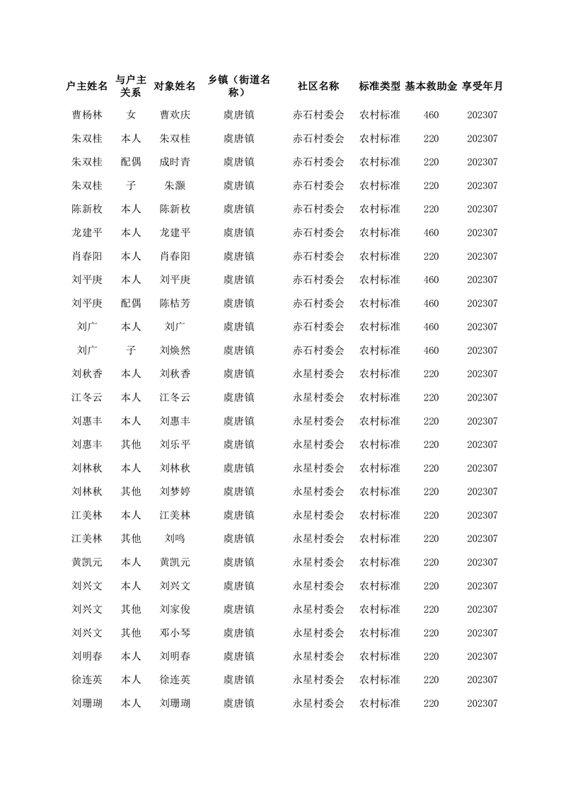 湘鄉市2023年7月份農村低保救助對象審批匯總表