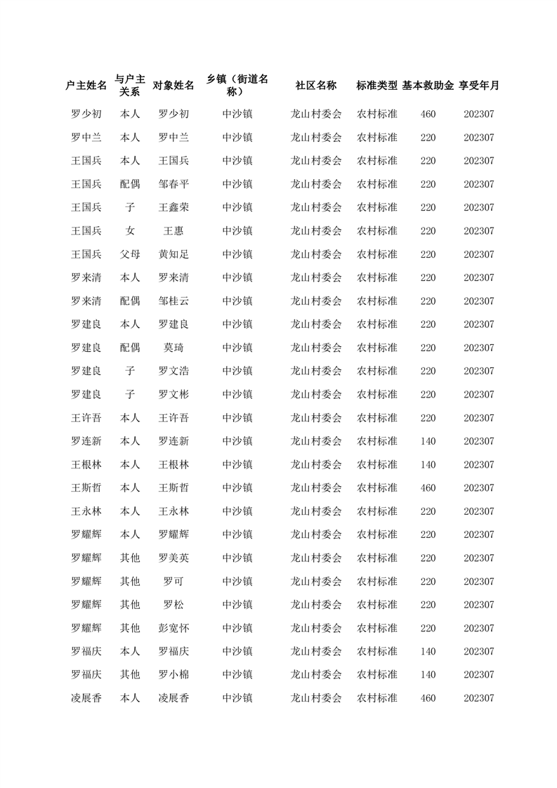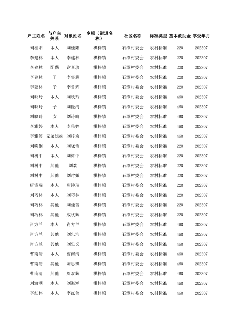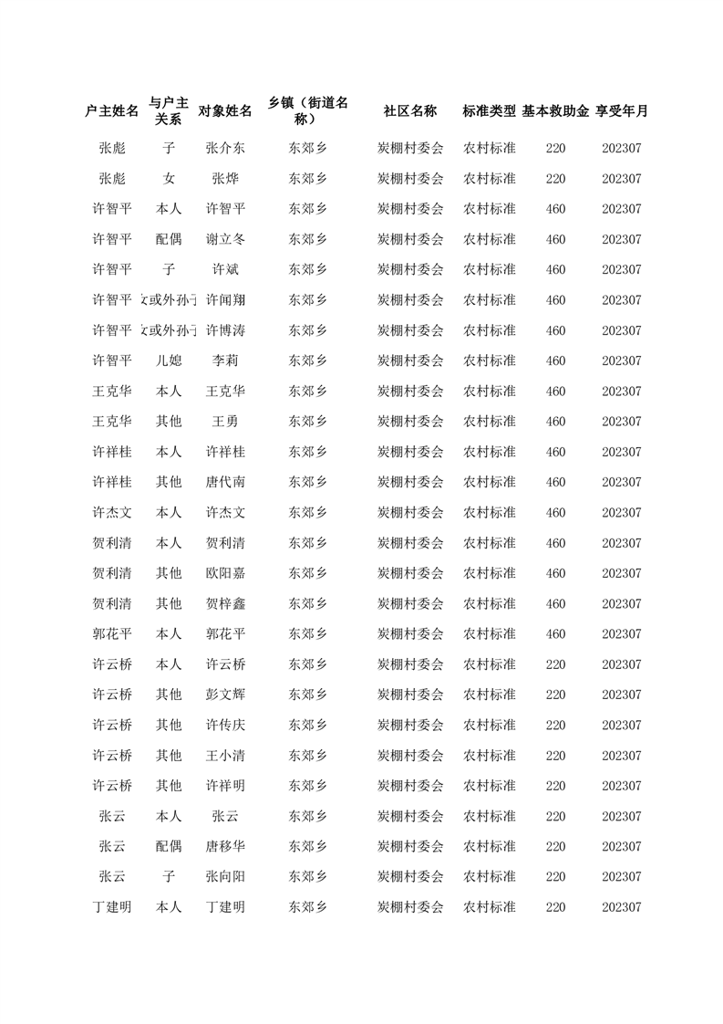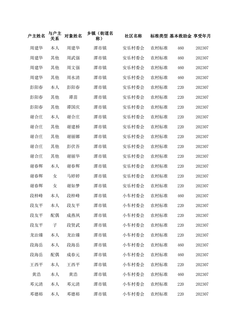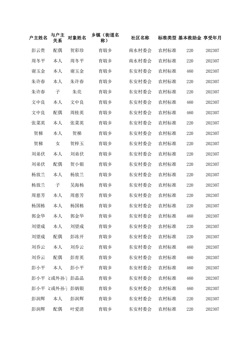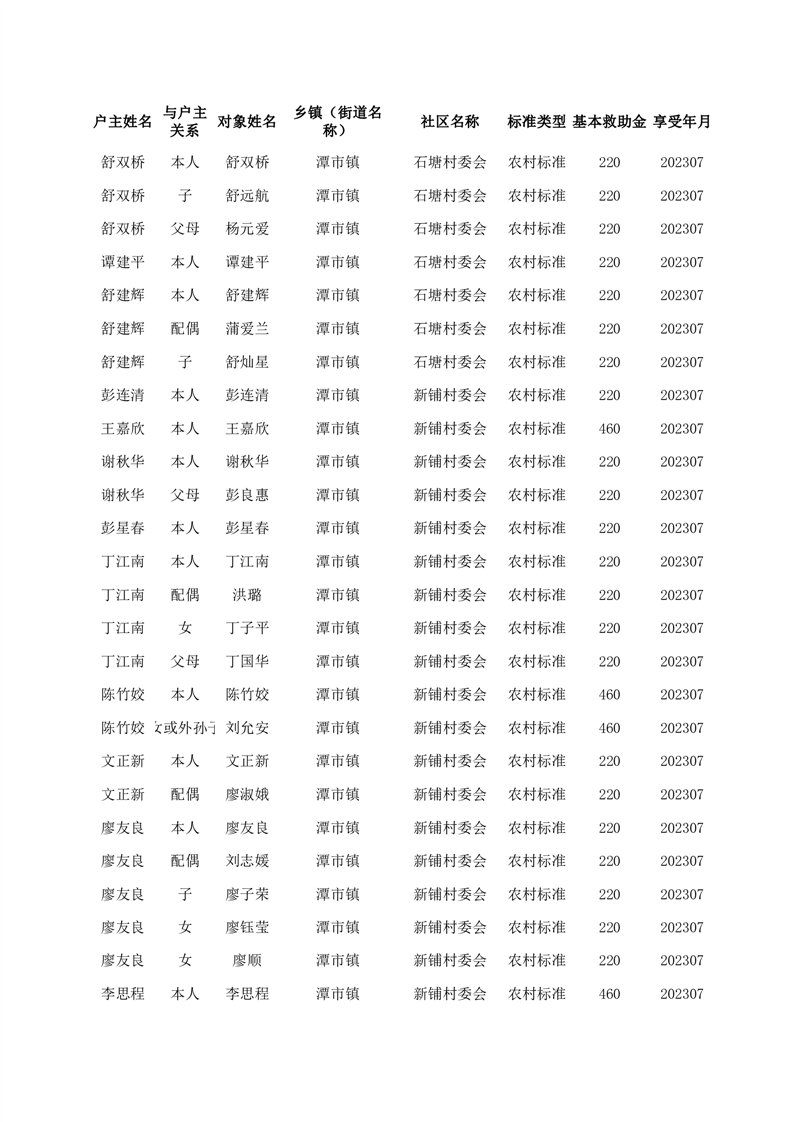 湘鄉市2023年7月份農村低保救助對象審批匯總表