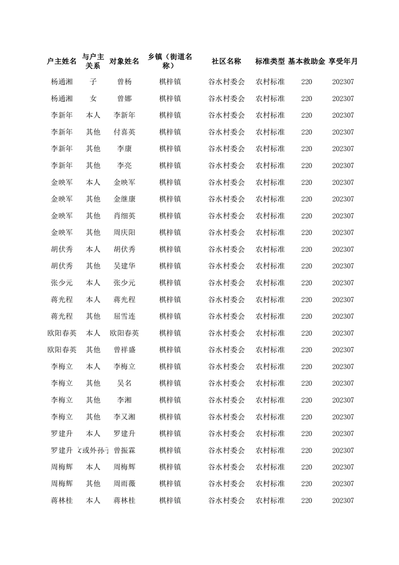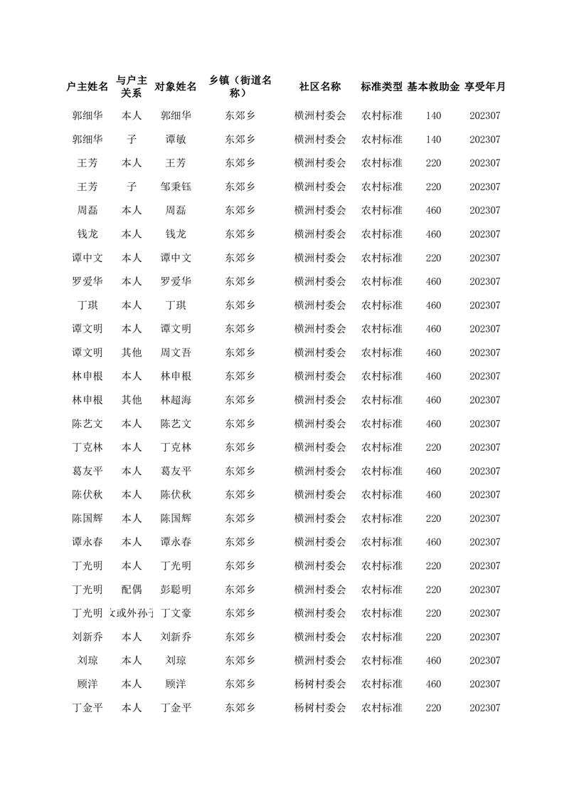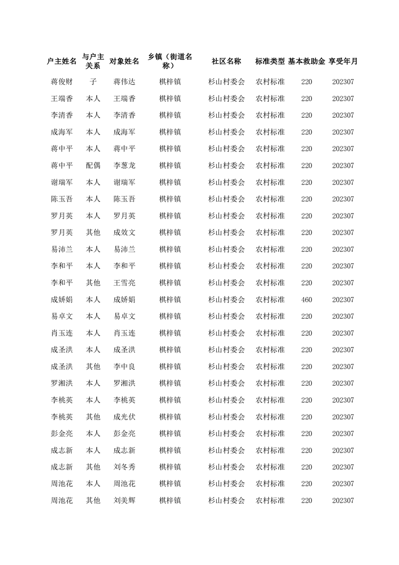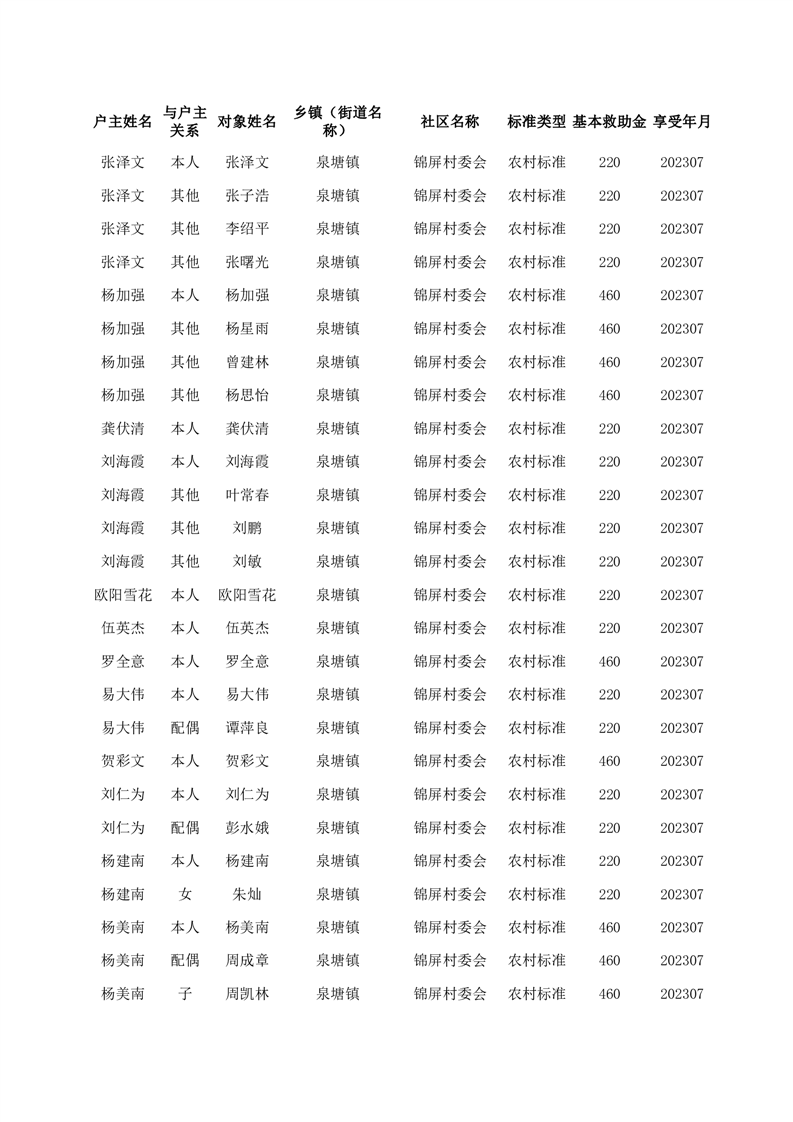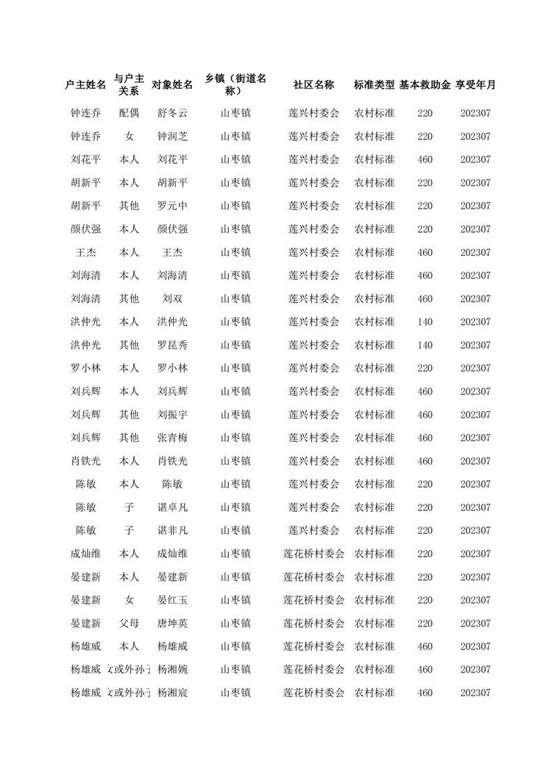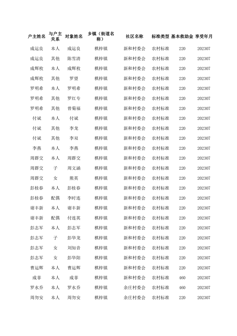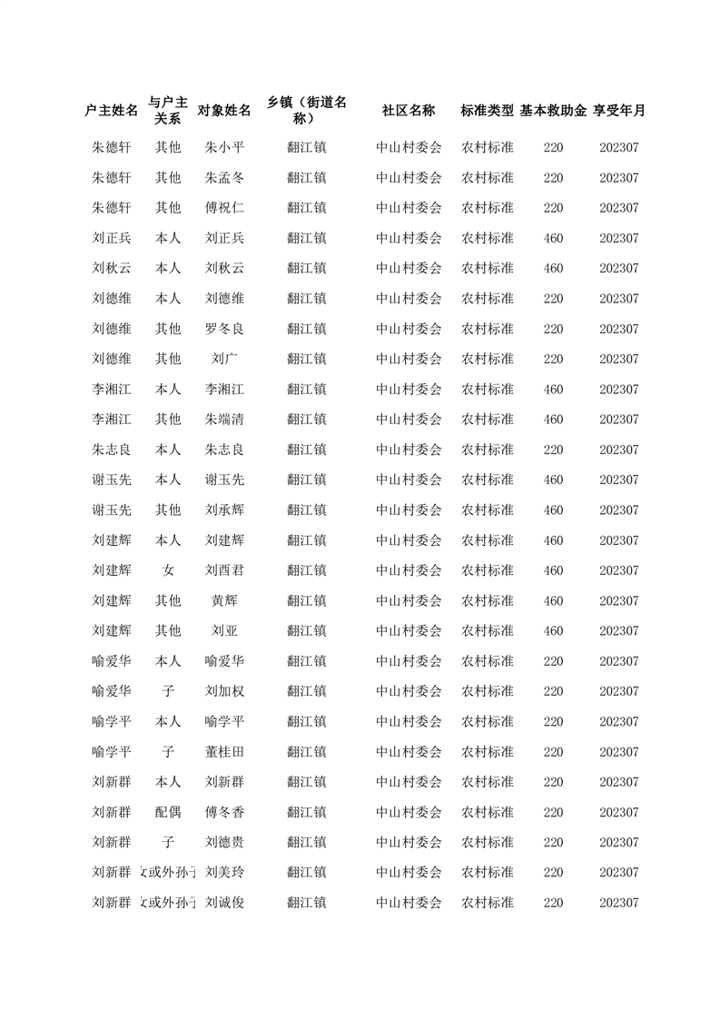 湘鄉市2023年7月份農村低保救助對象審批匯總表