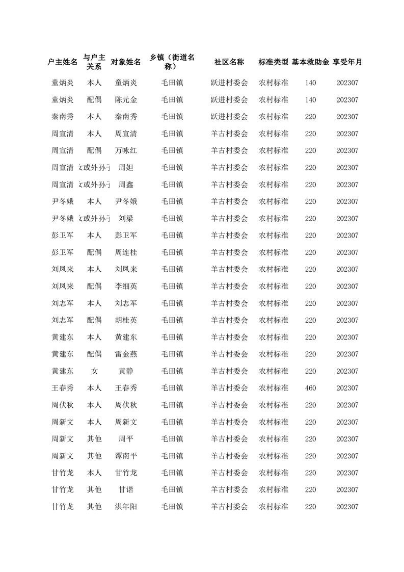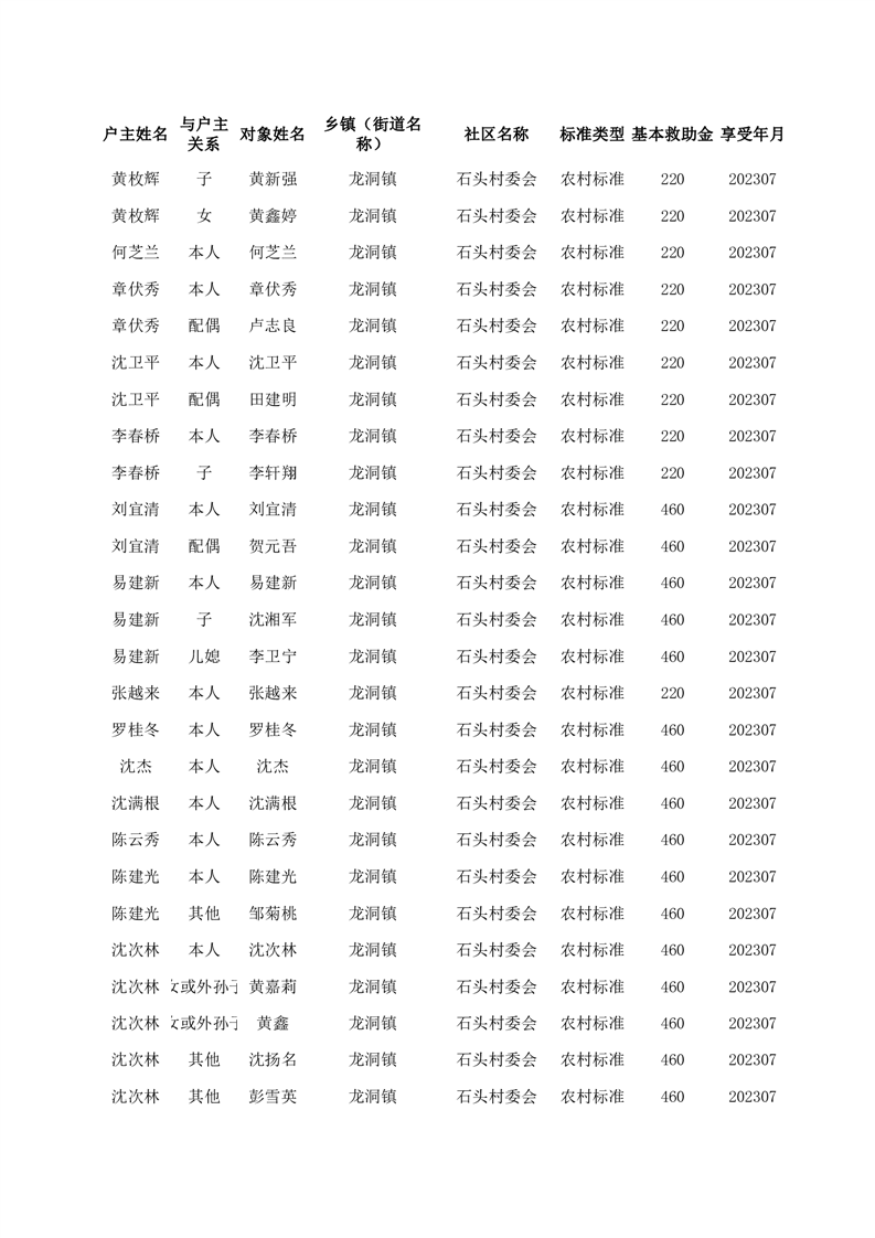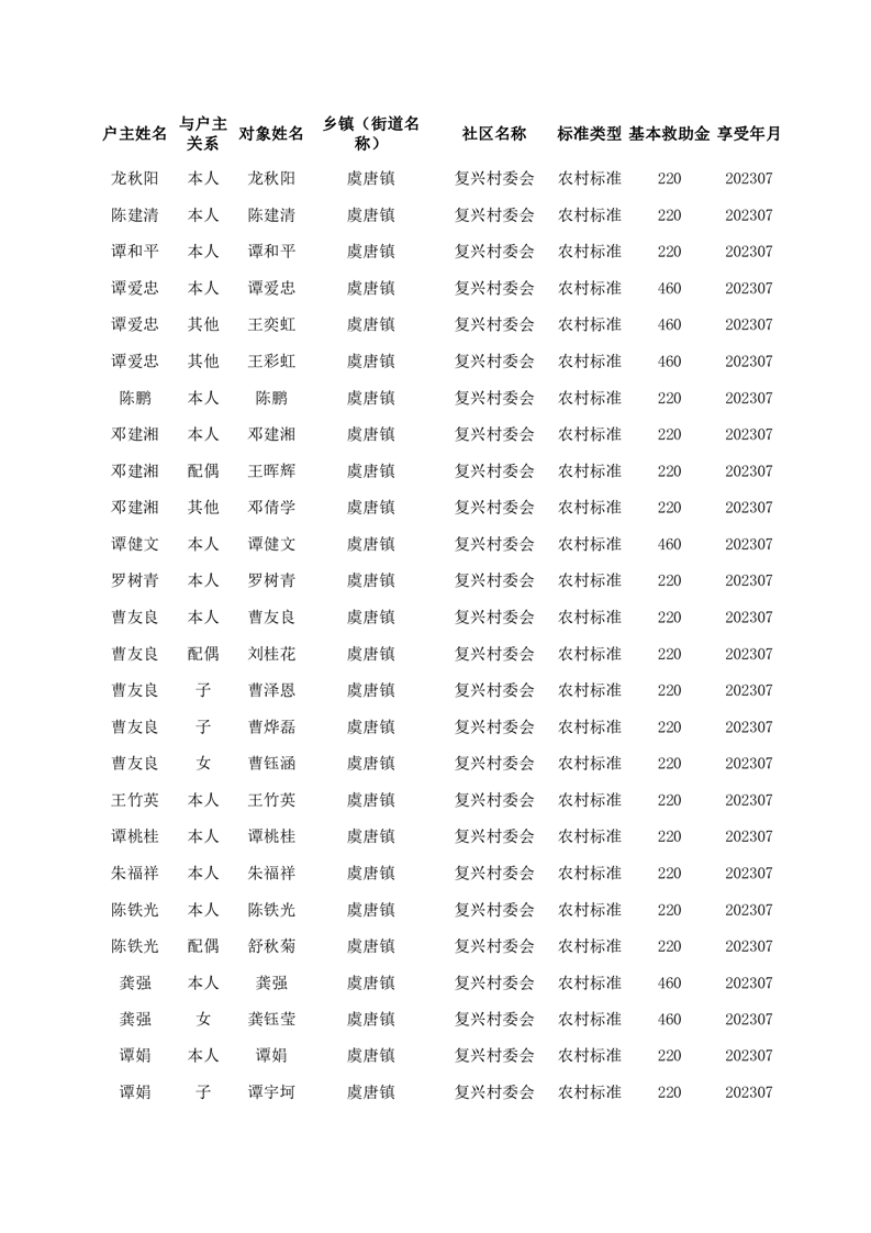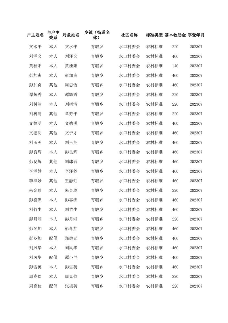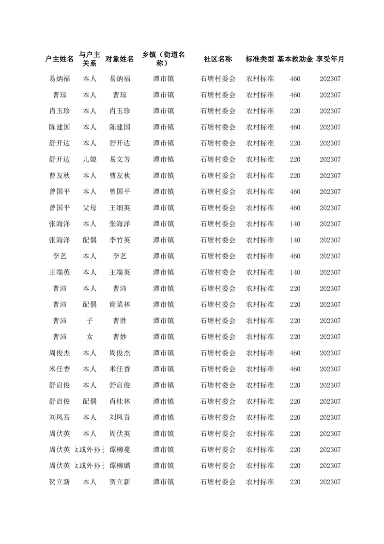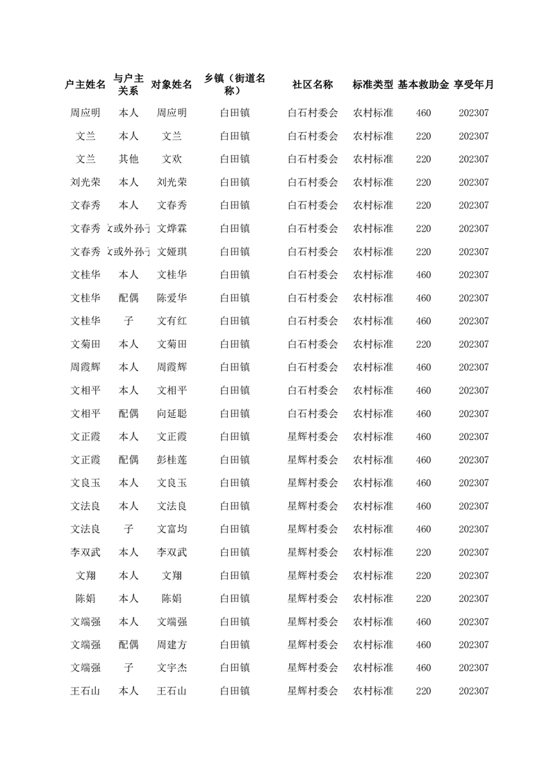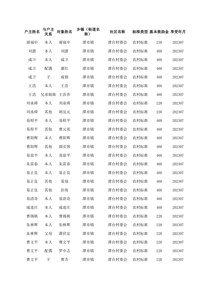 湘鄉市2023年7月份農村低保救助對象審批匯總表