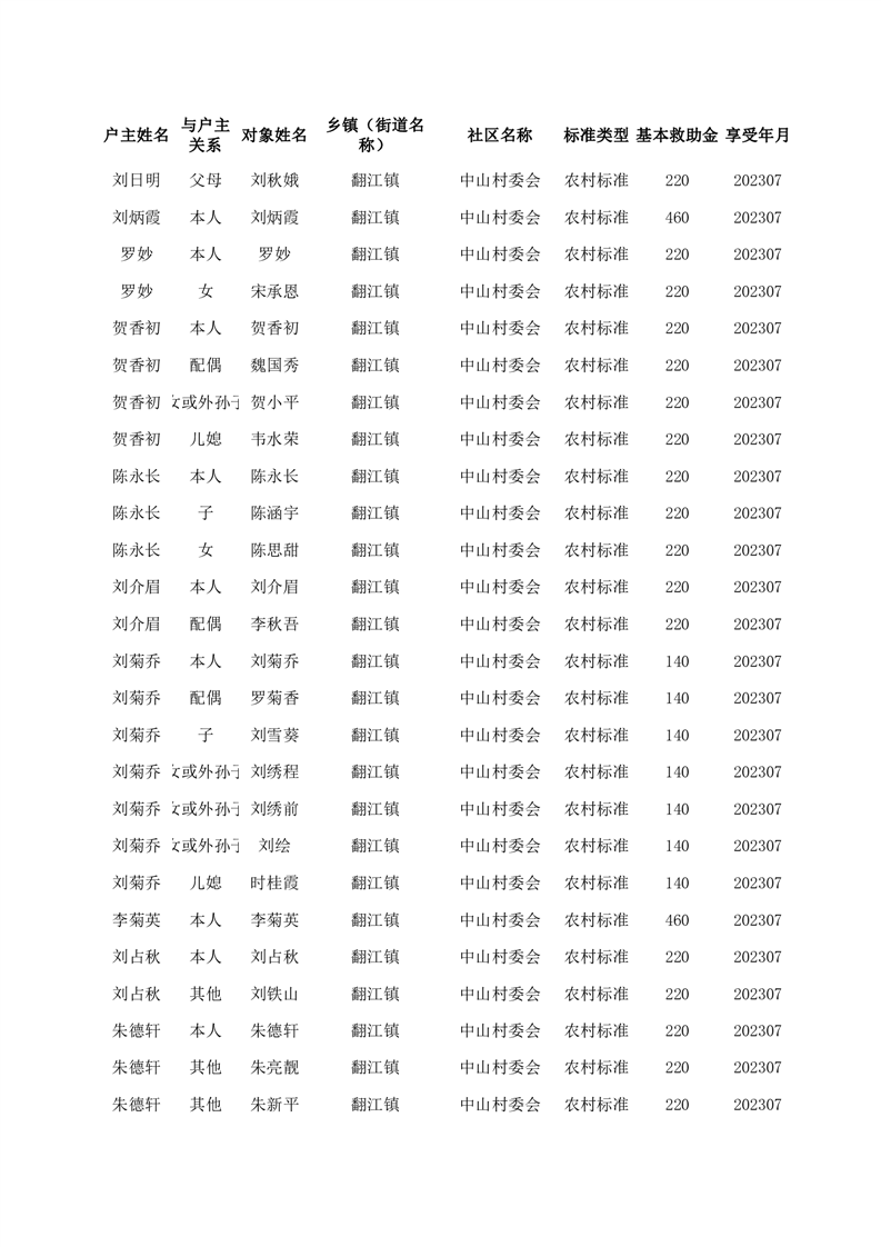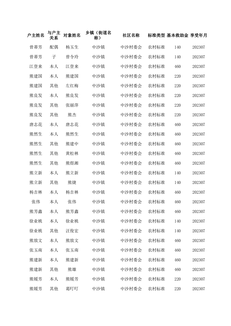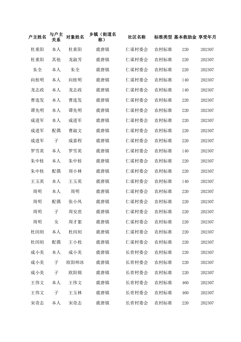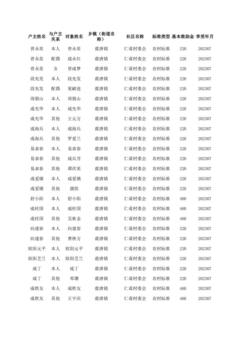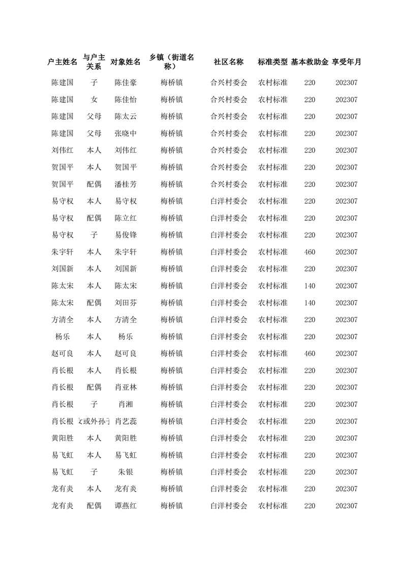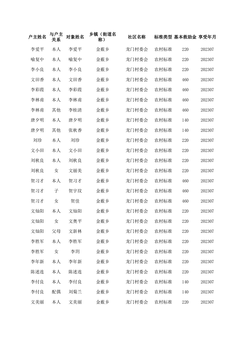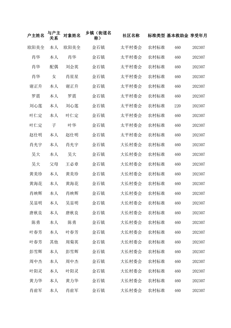 湘鄉市2023年7月份農村低保救助對象審批匯總表