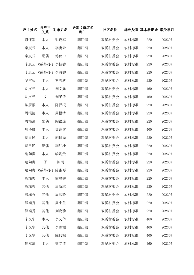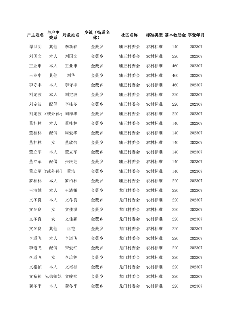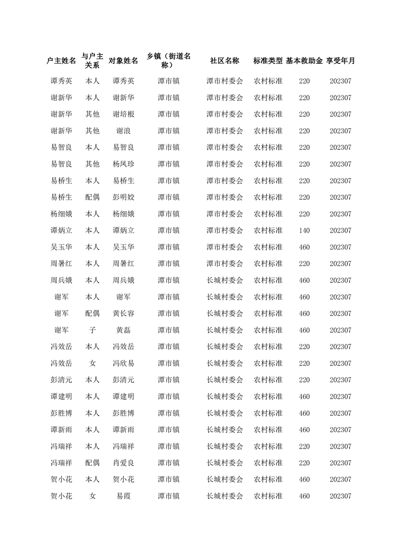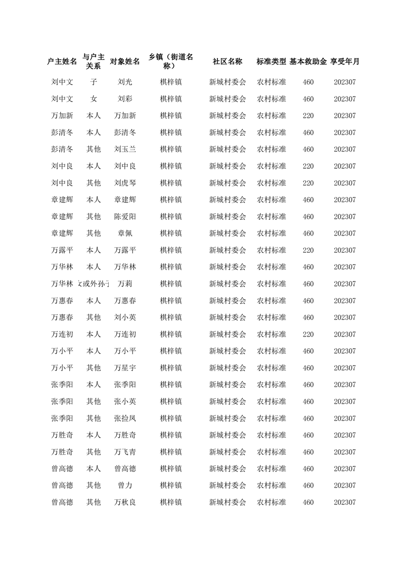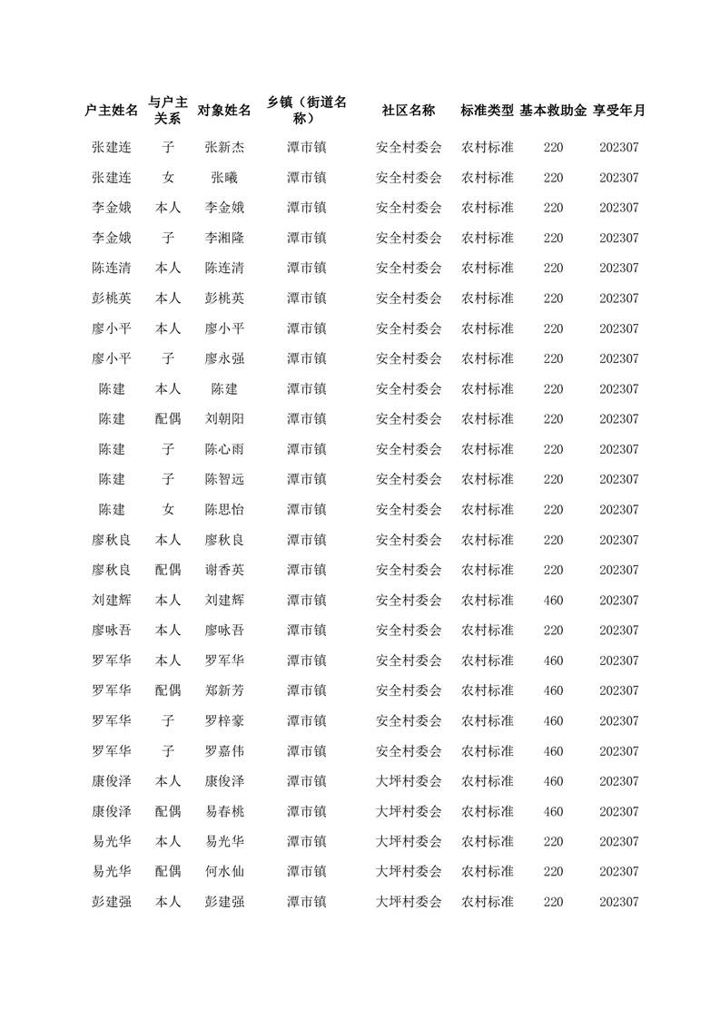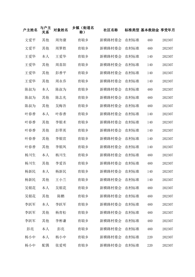 湘鄉市2023年7月份農村低保救助對象審批匯總表