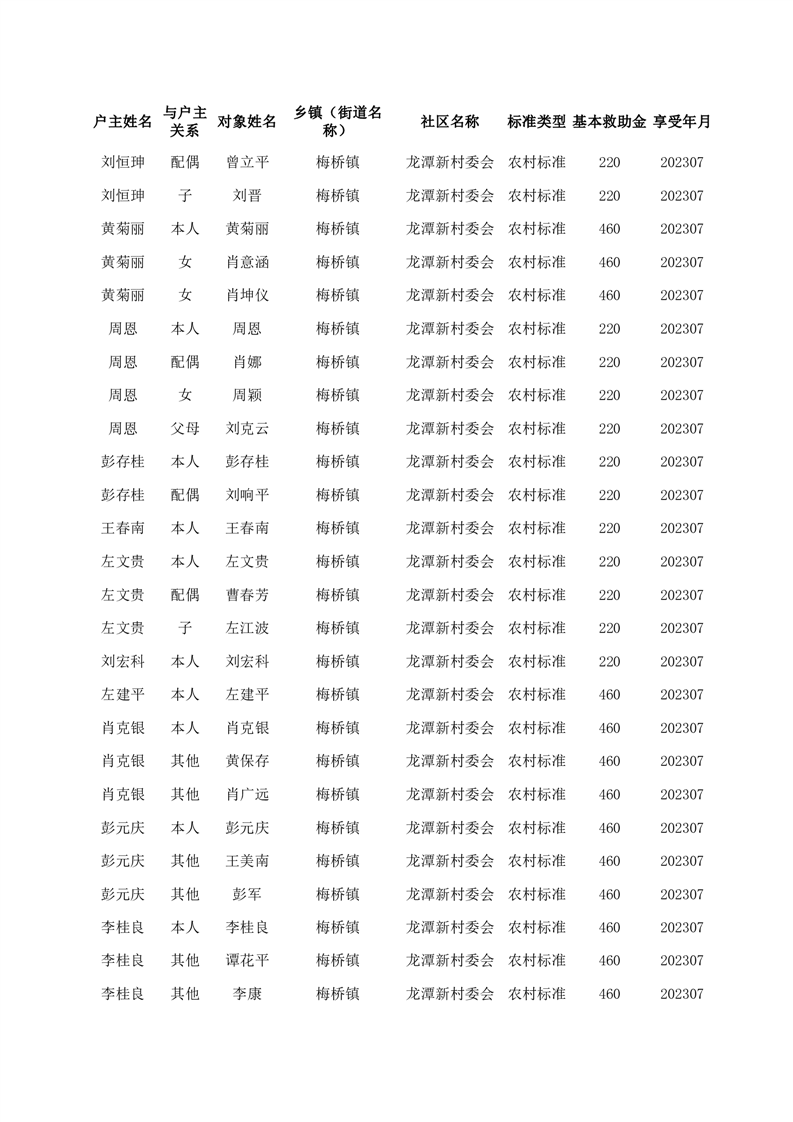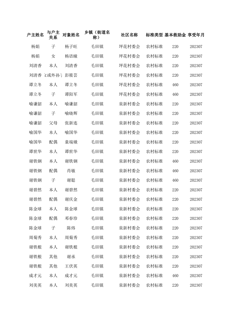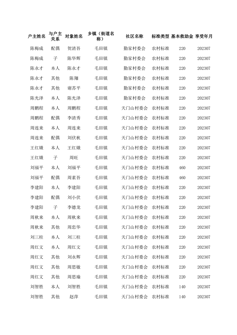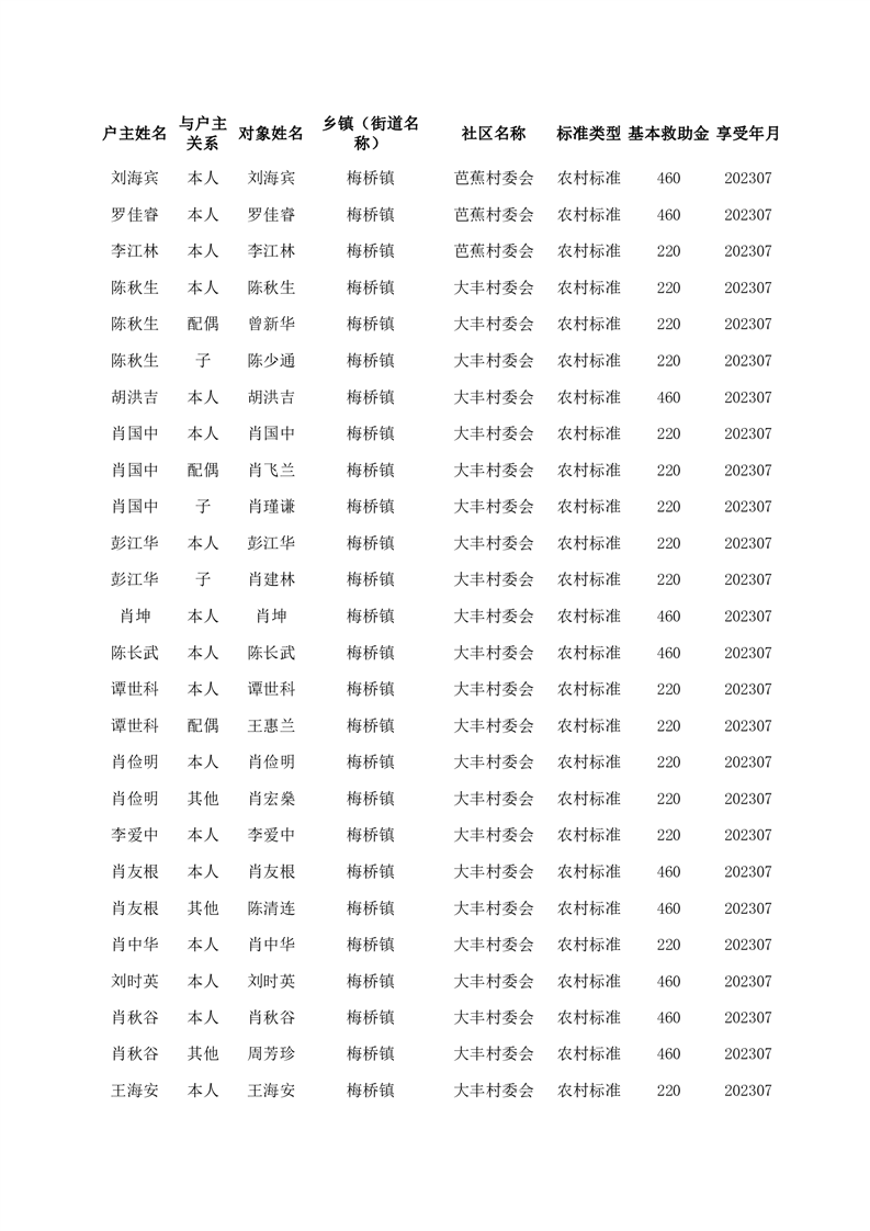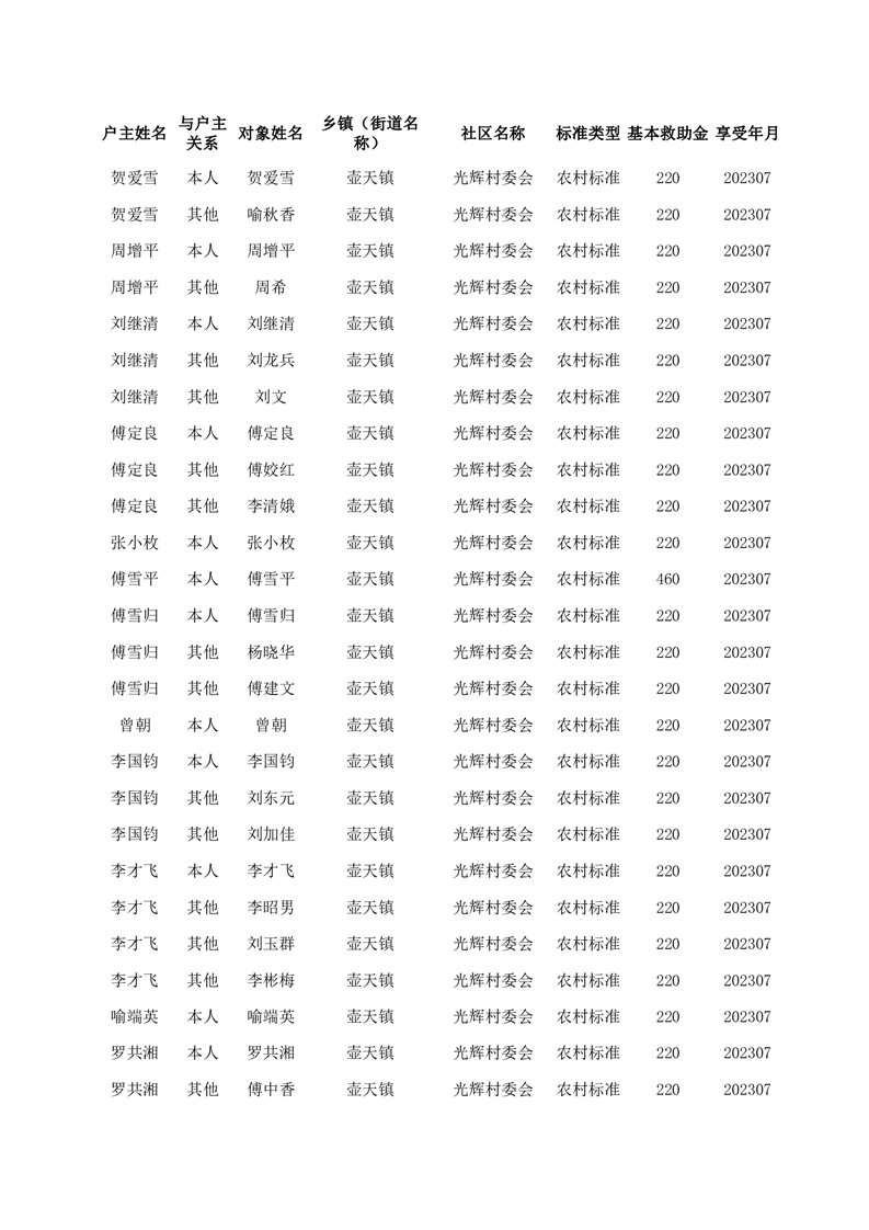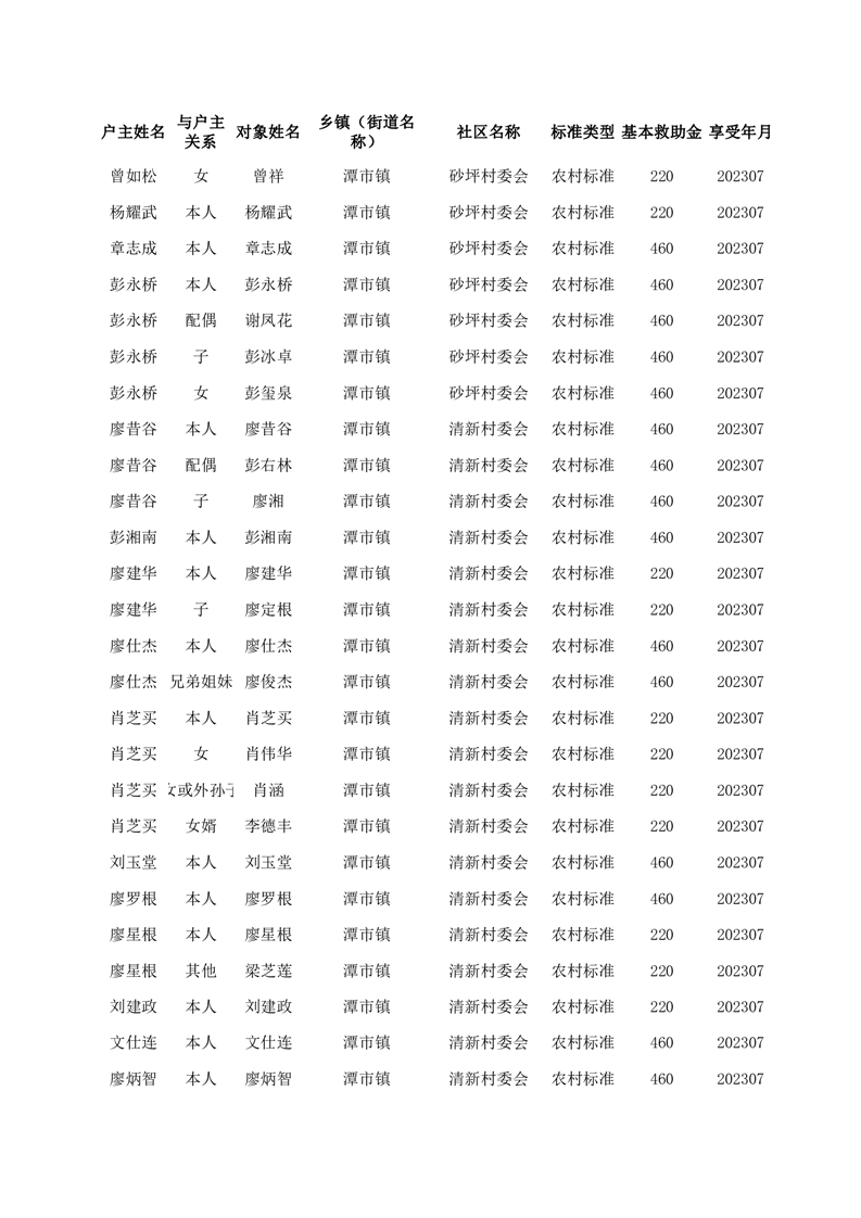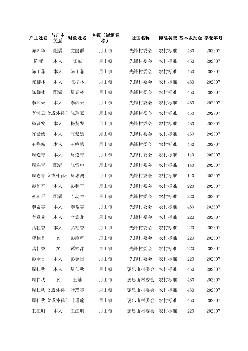 湘鄉市2023年7月份農村低保救助對象審批匯總表