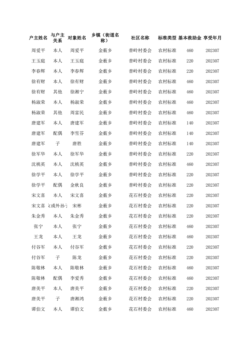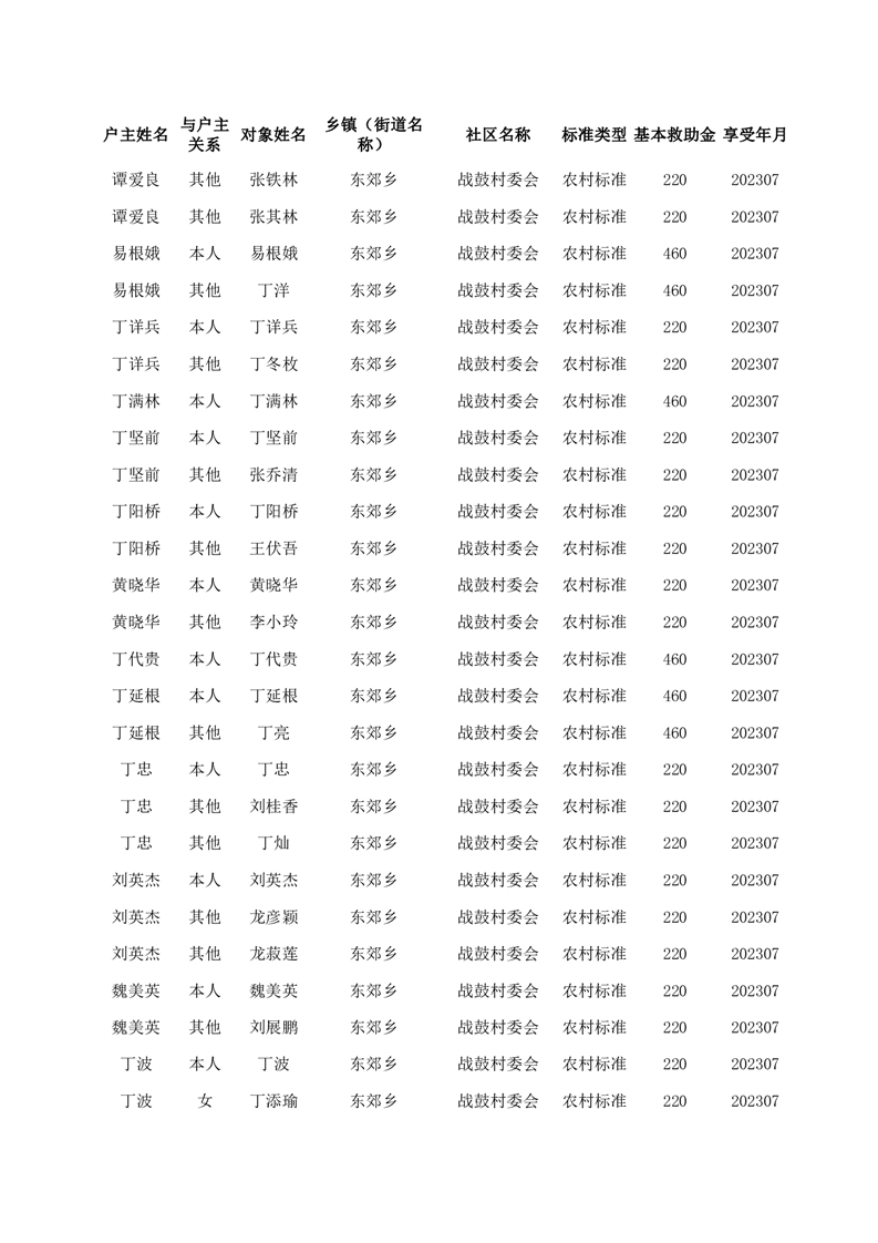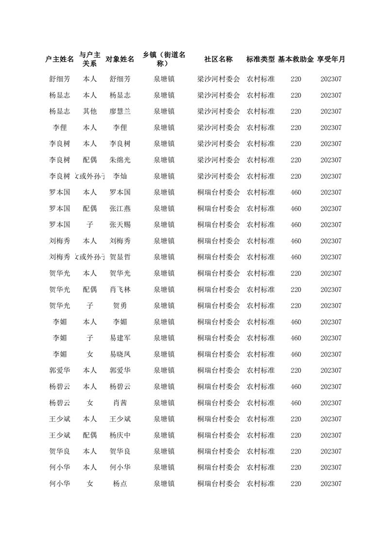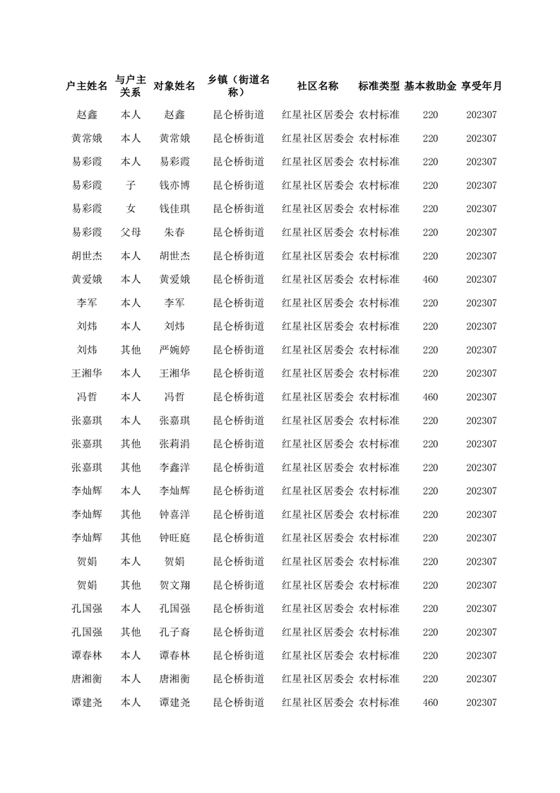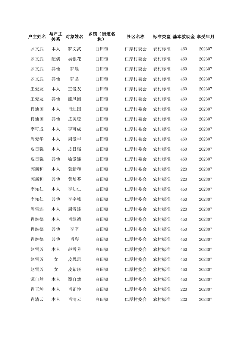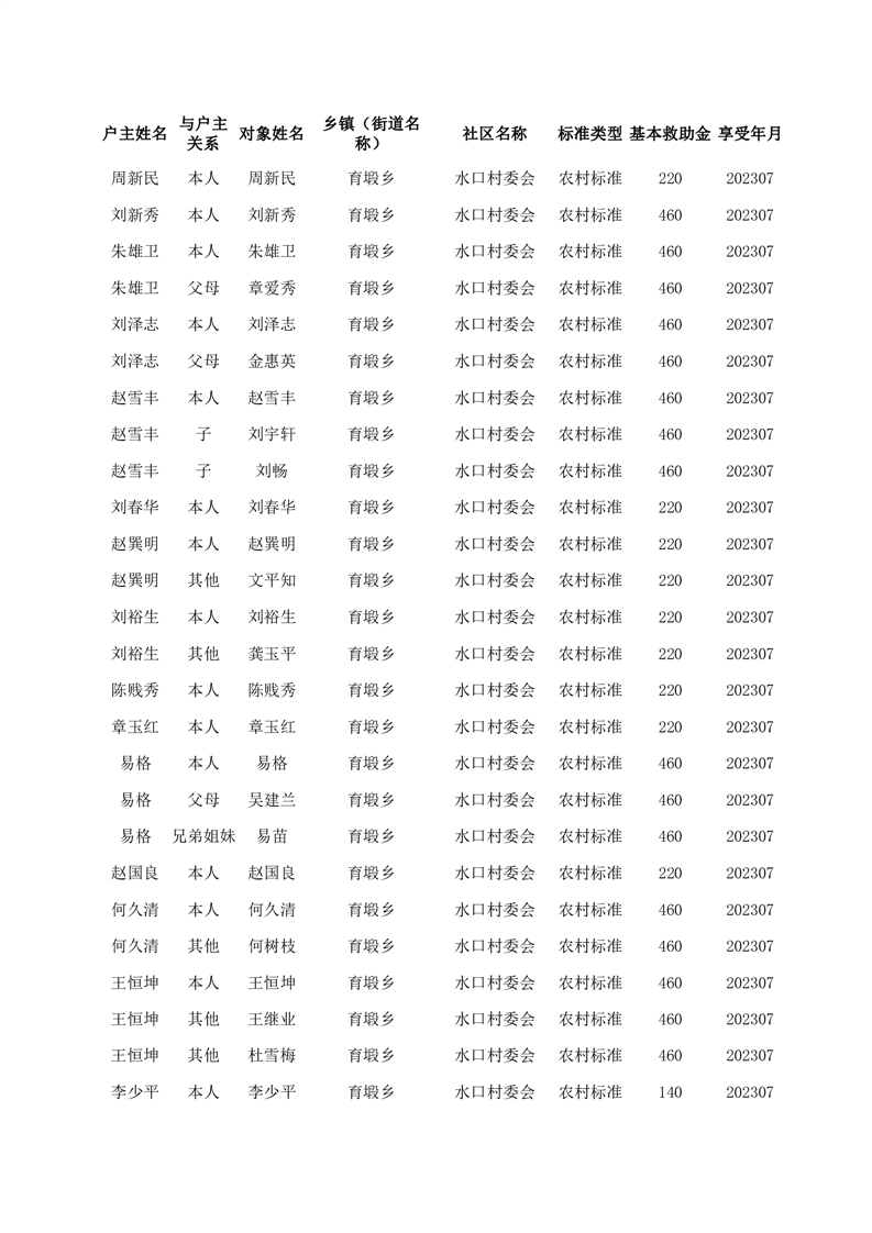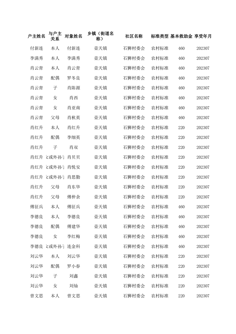 湘鄉市2023年7月份農村低保救助對象審批匯總表