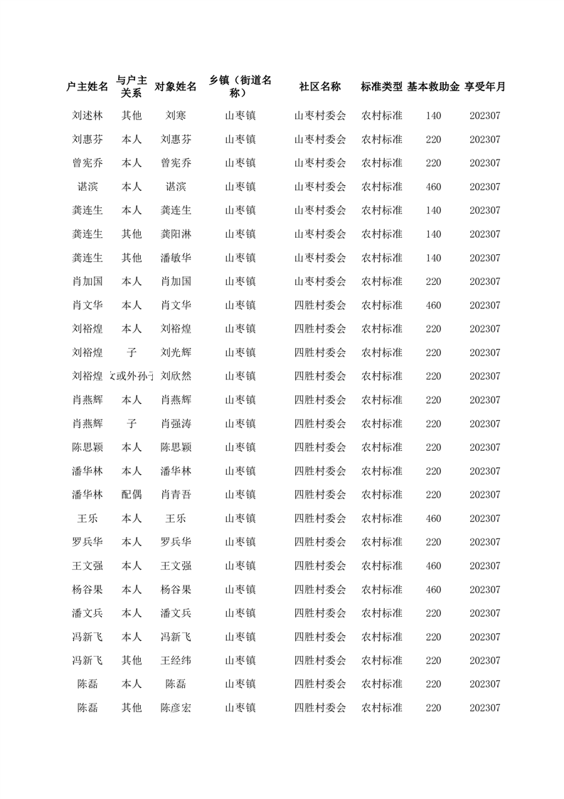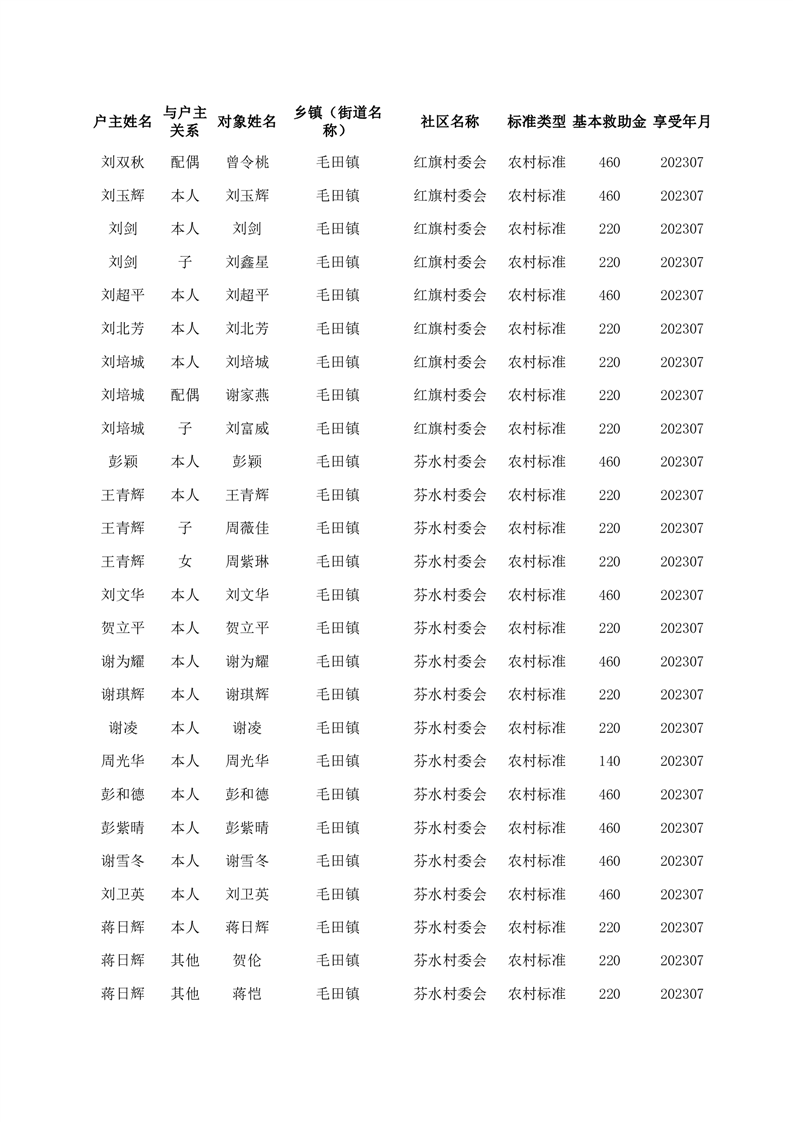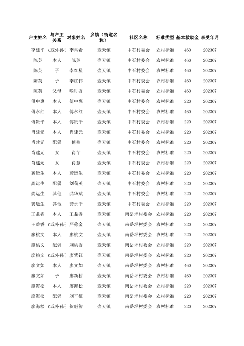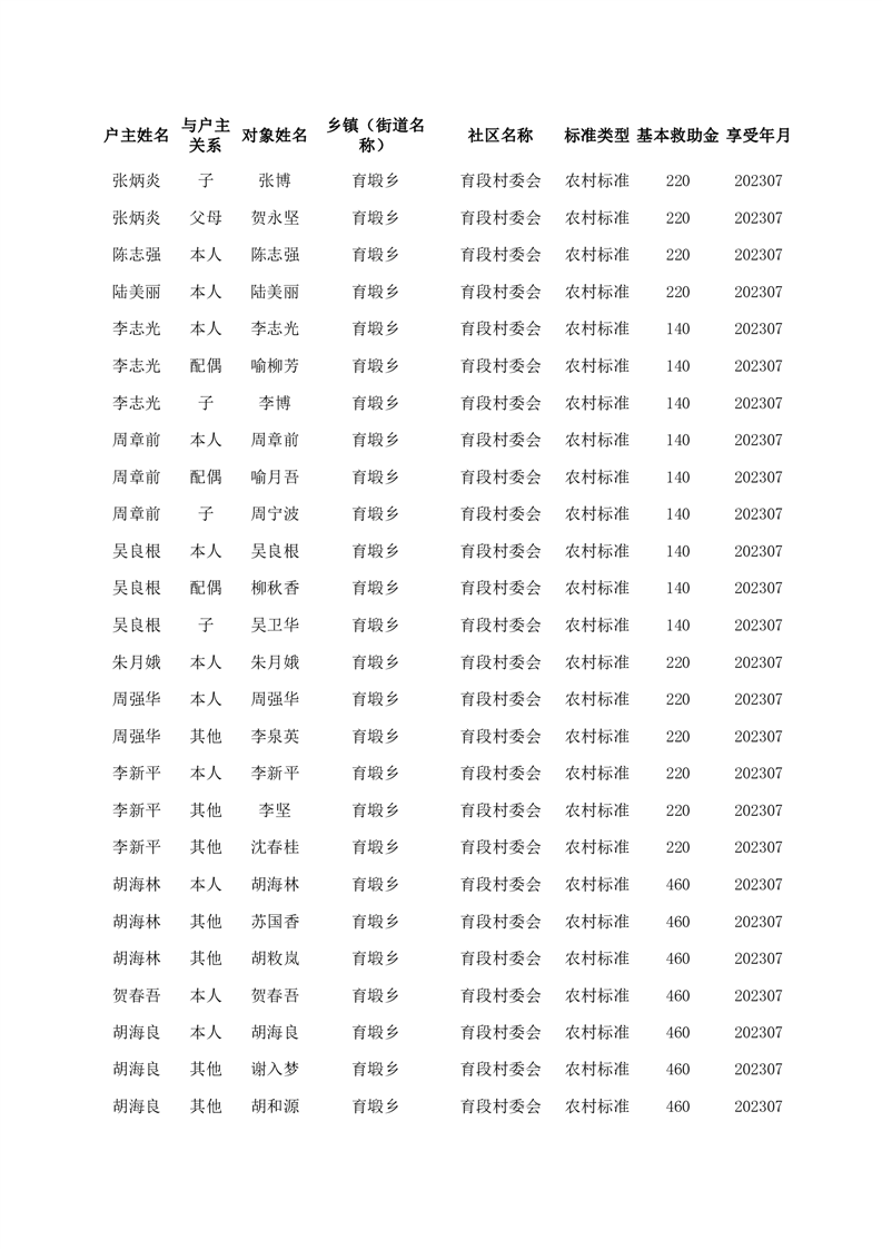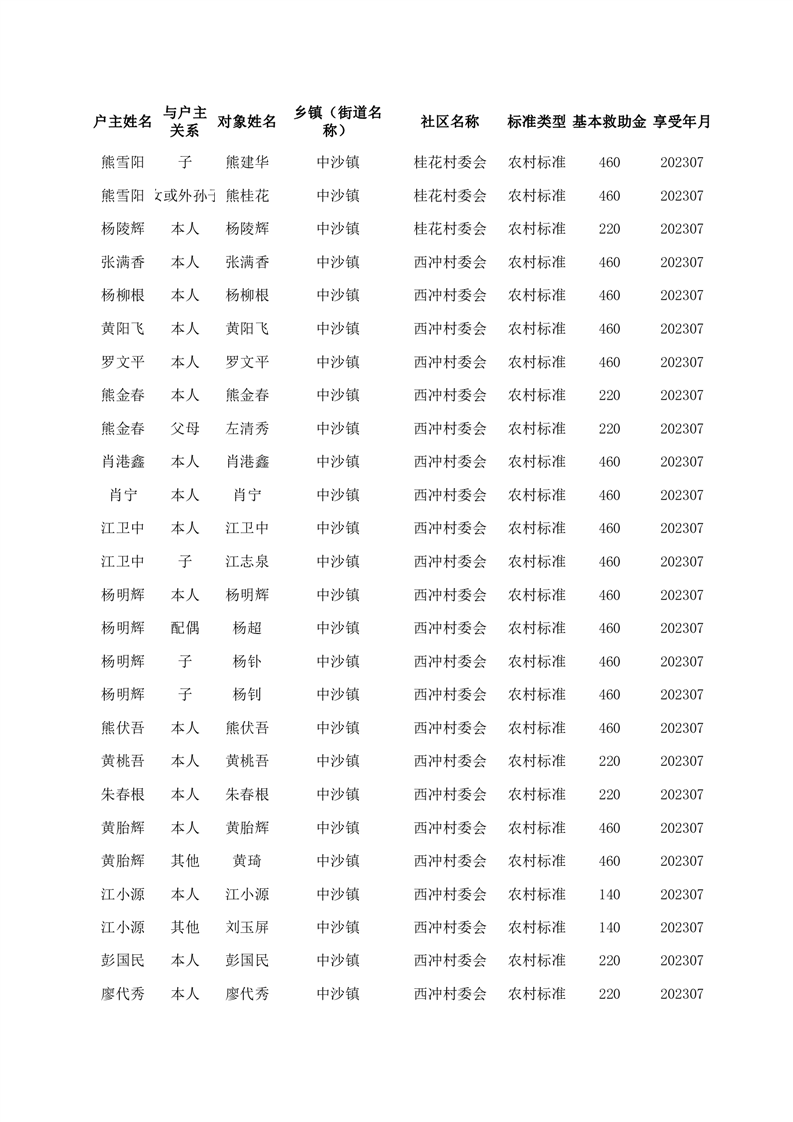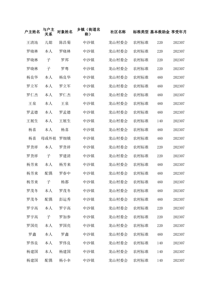 湘鄉市2023年7月份農村低保救助對象審批匯總表