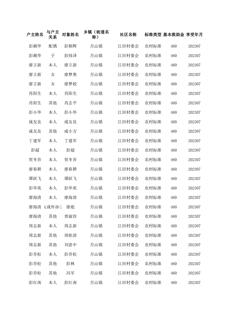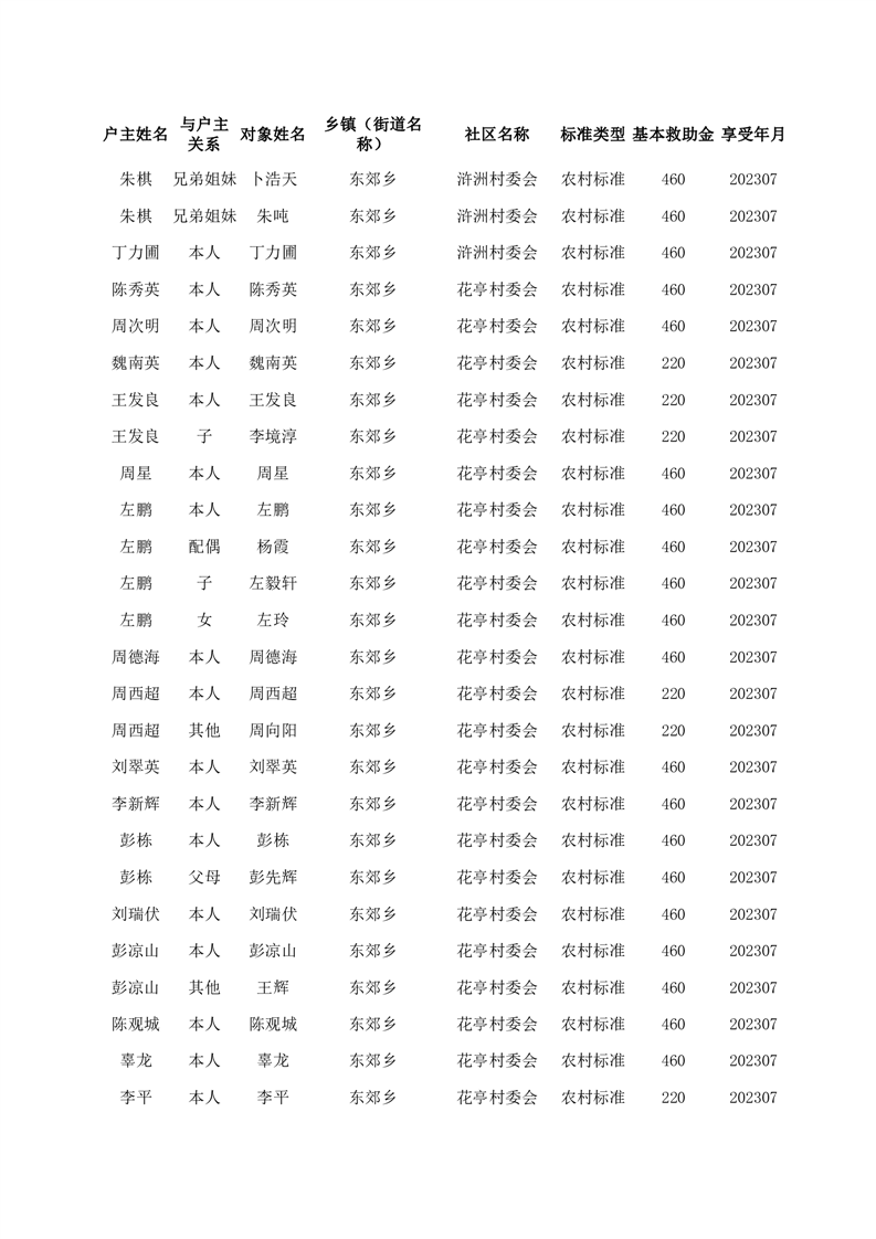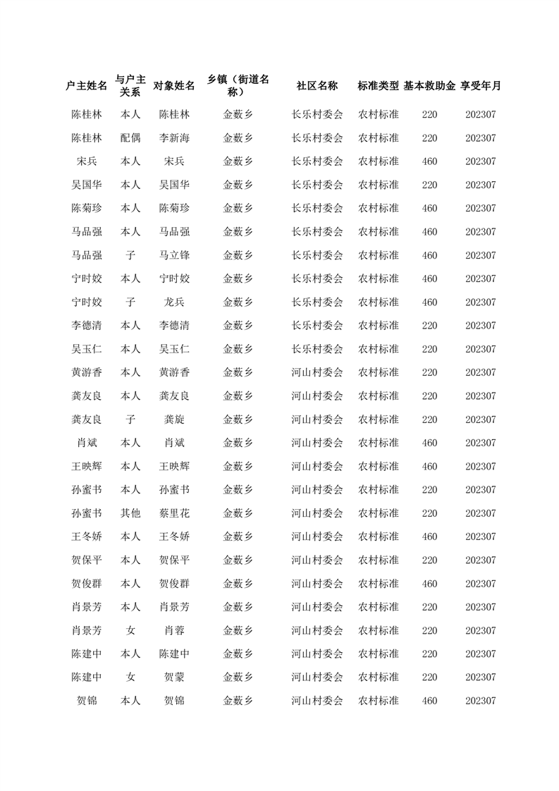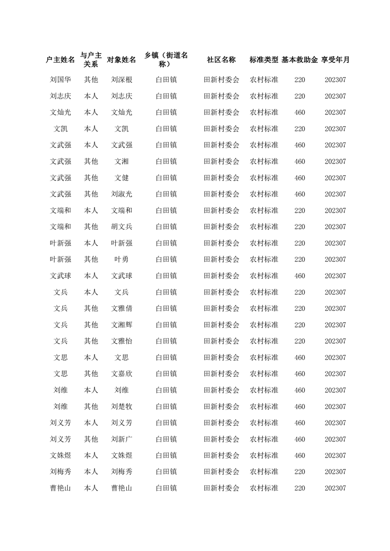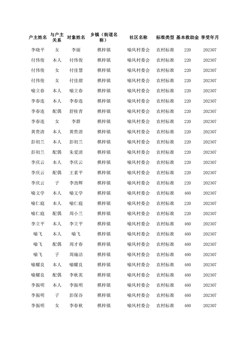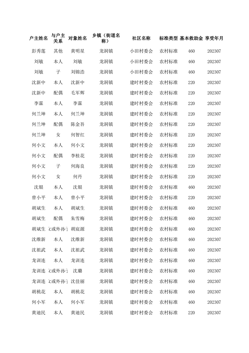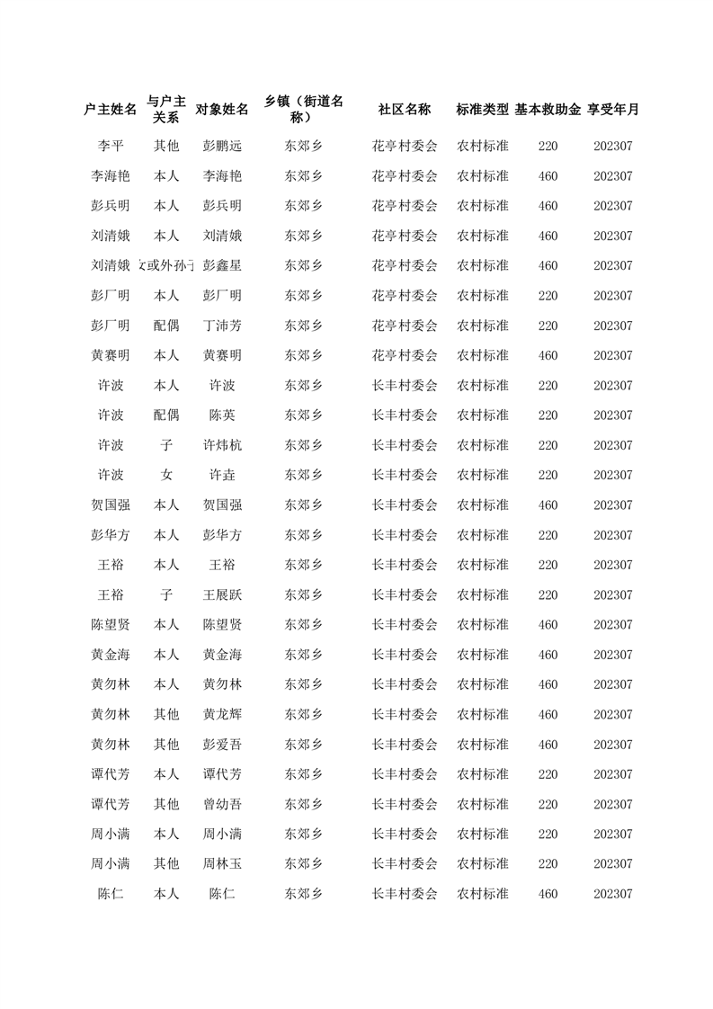 湘鄉市2023年7月份農村低保救助對象審批匯總表