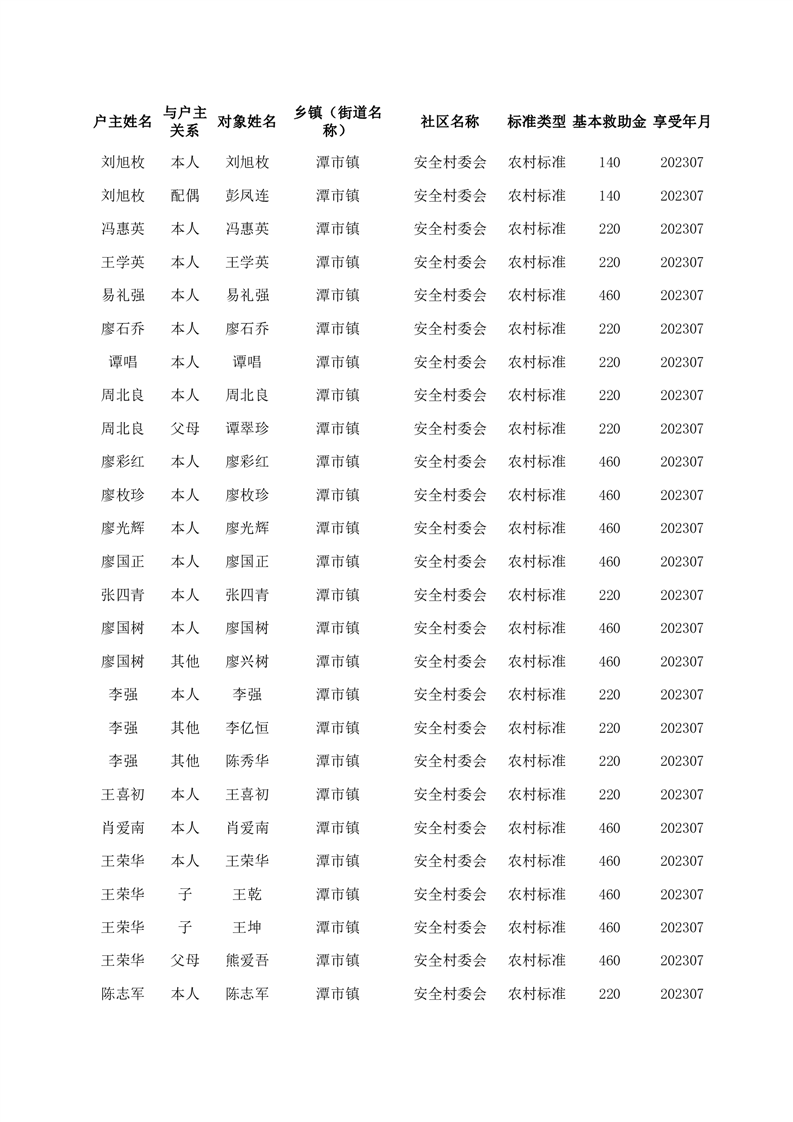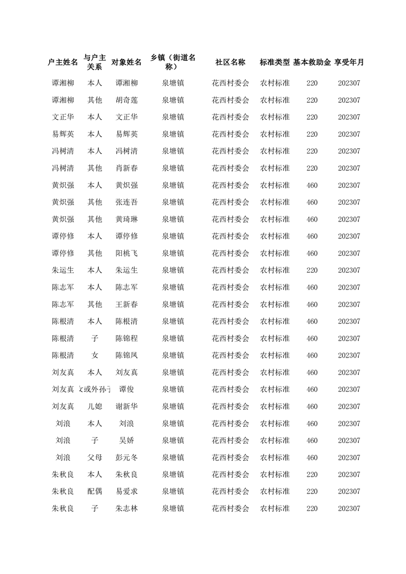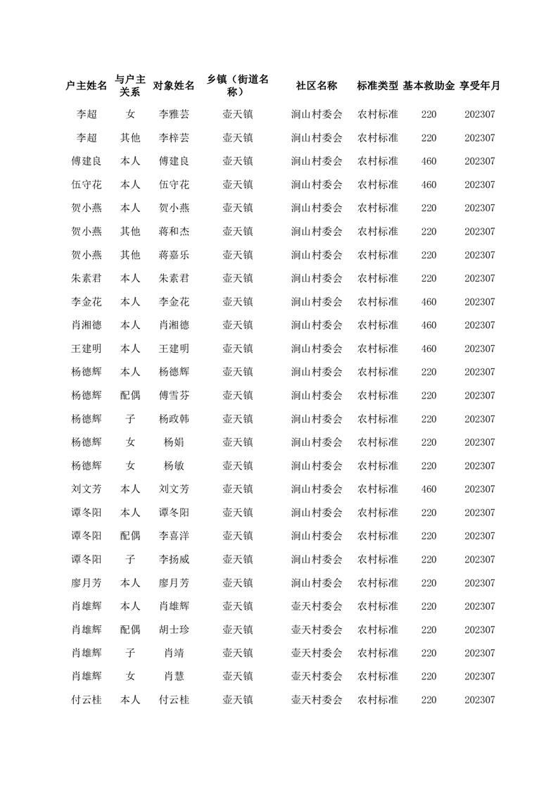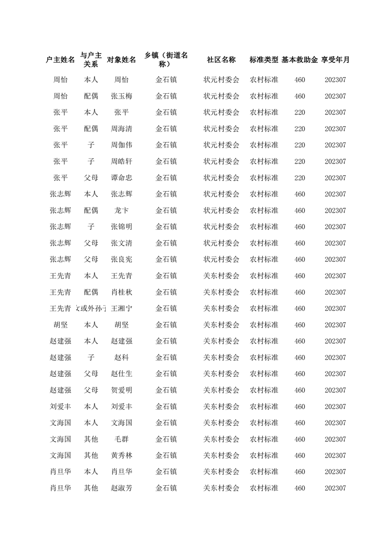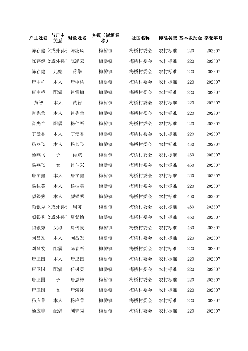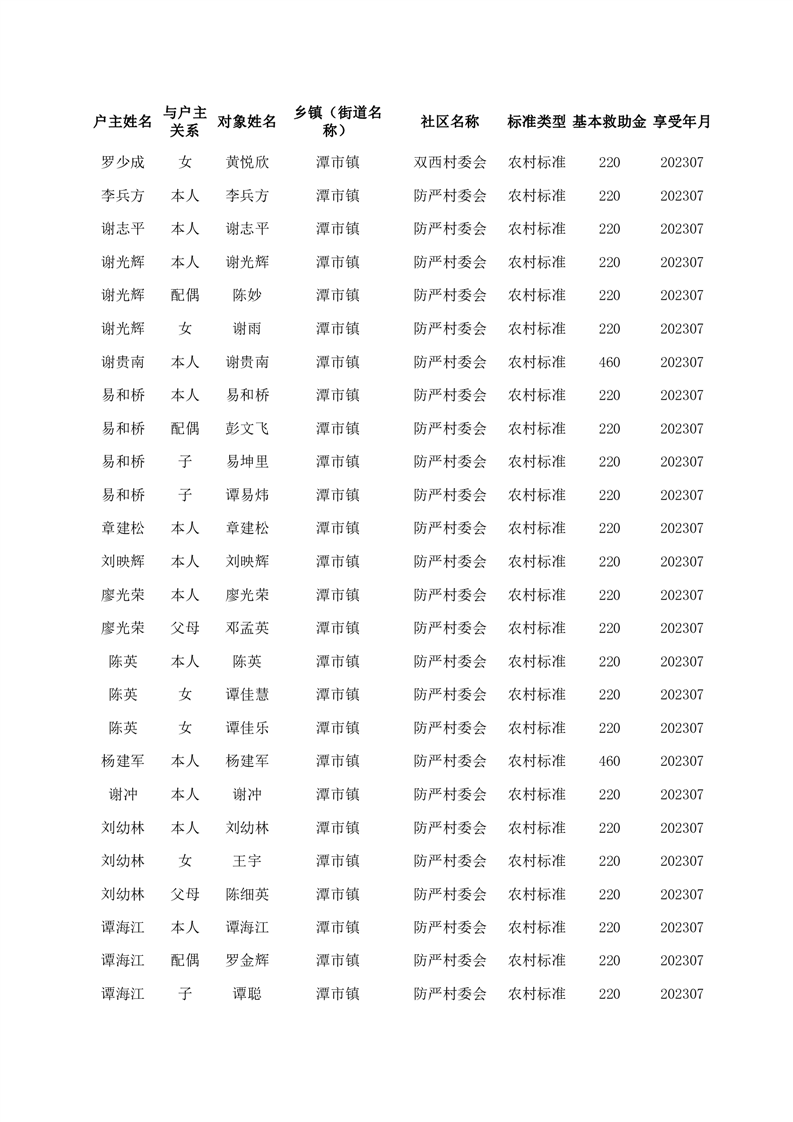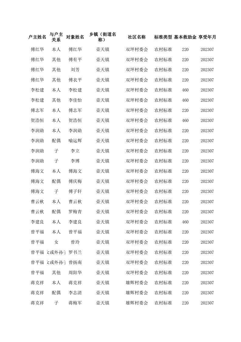 湘鄉市2023年7月份農村低保救助對象審批匯總表