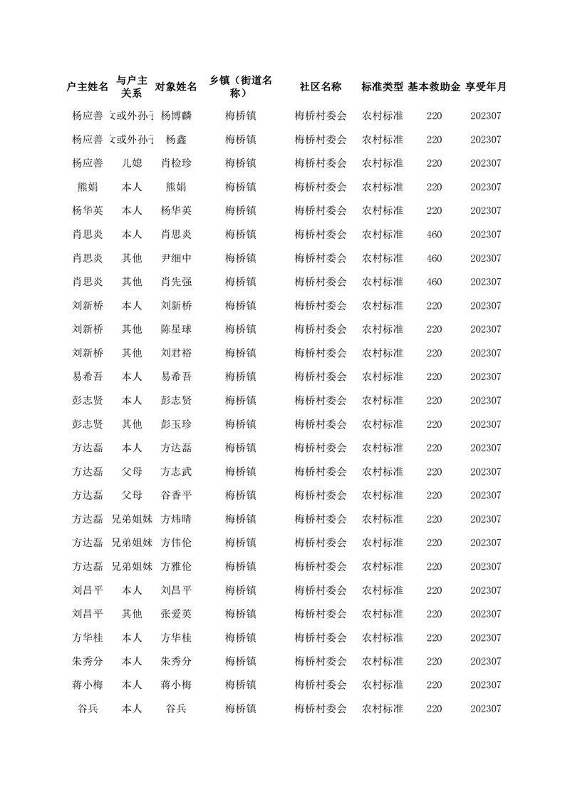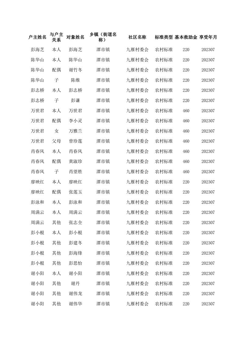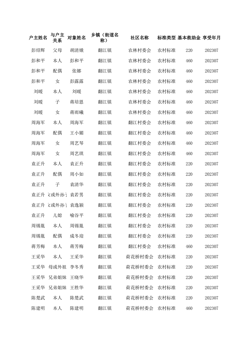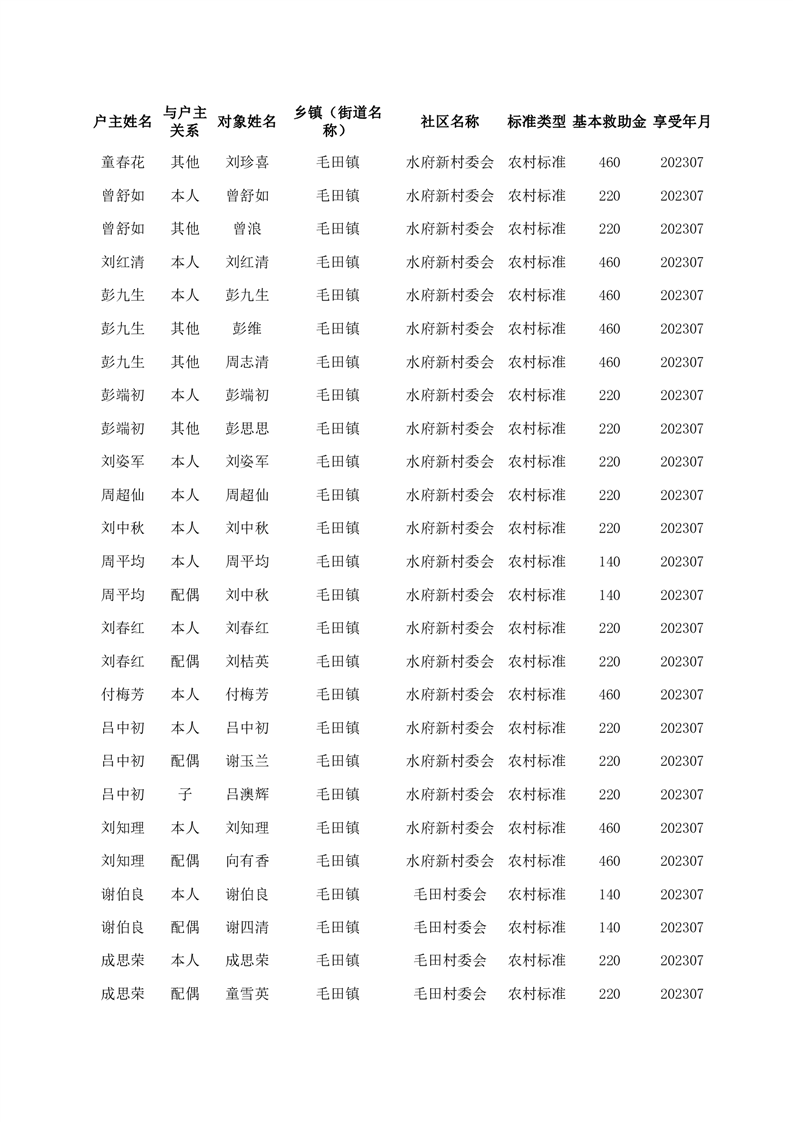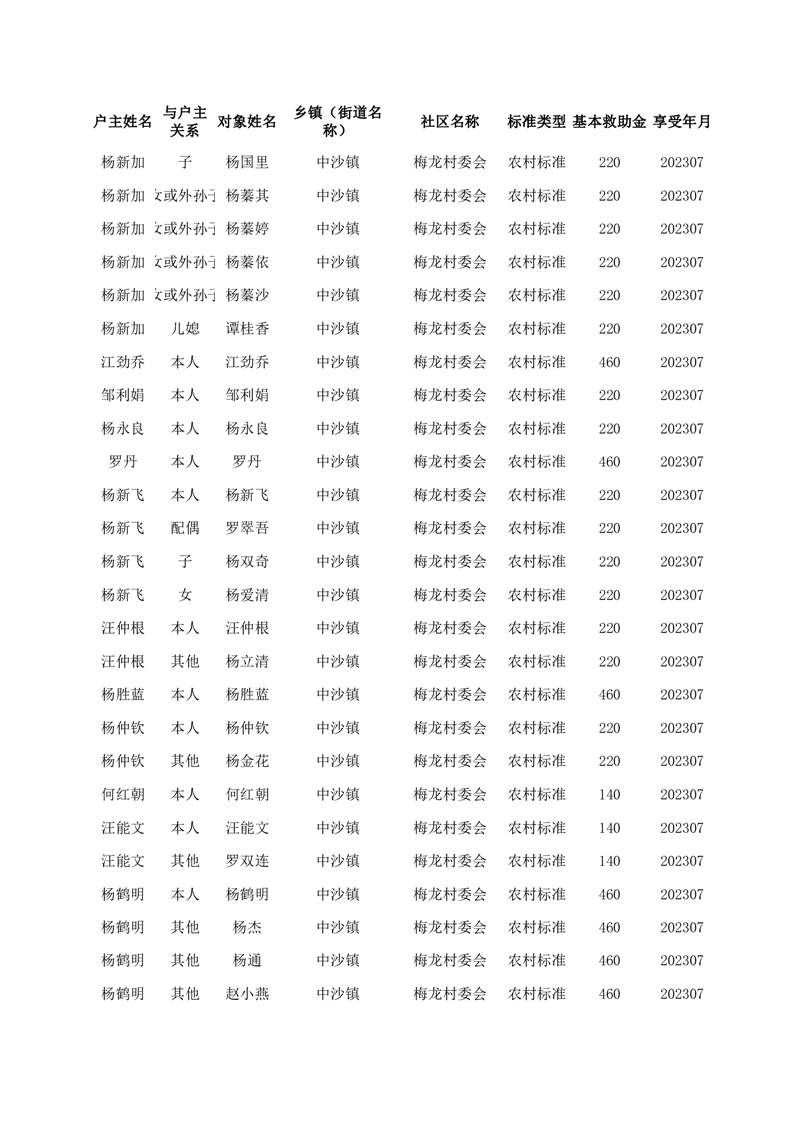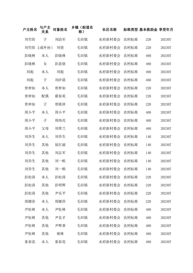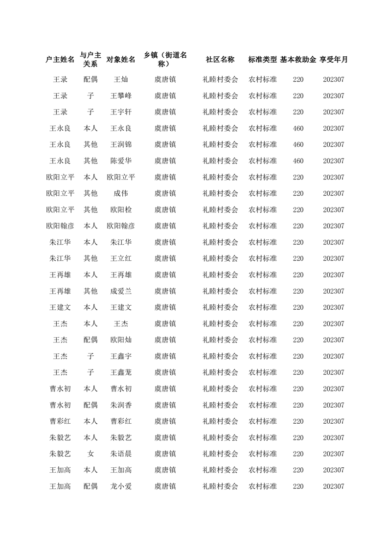 湘鄉市2023年7月份農村低保救助對象審批匯總表