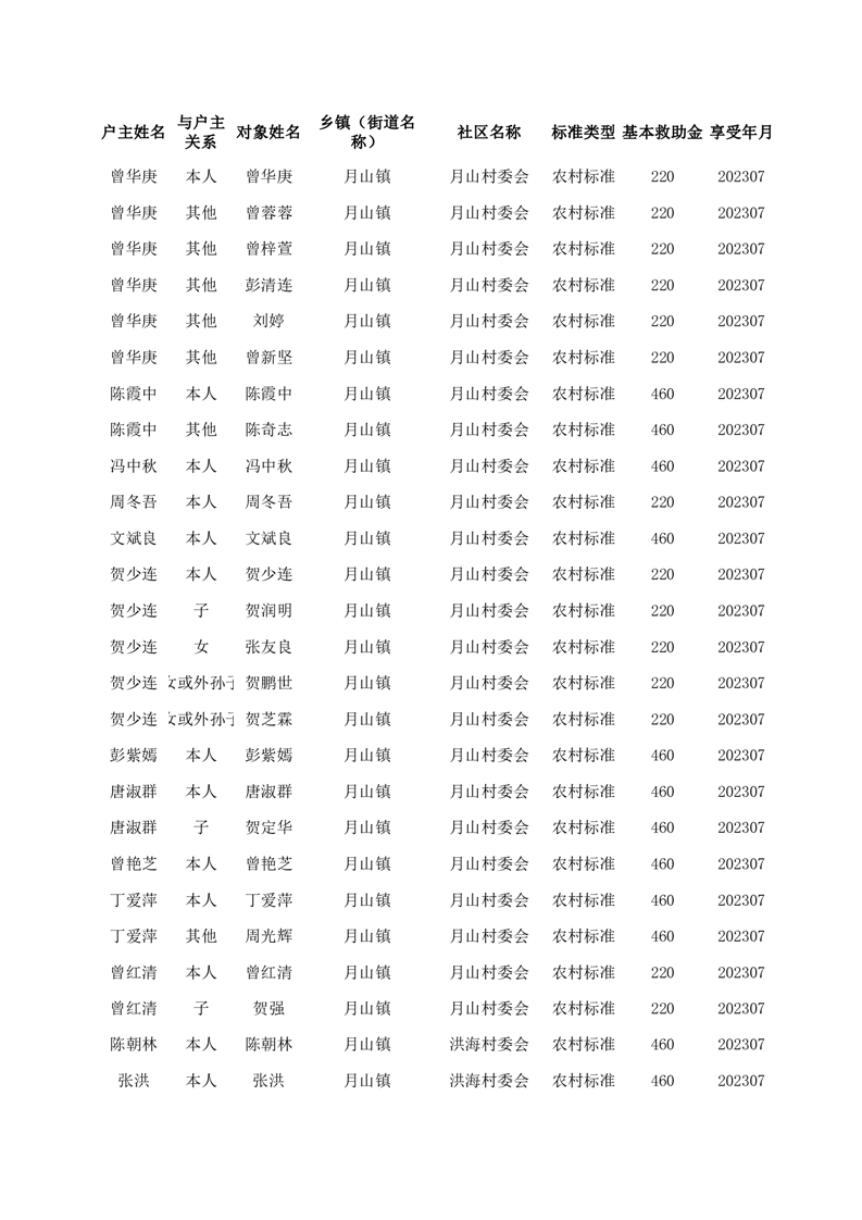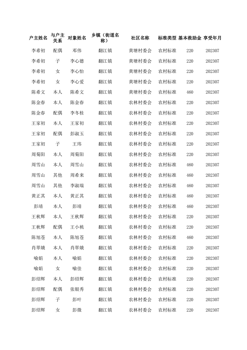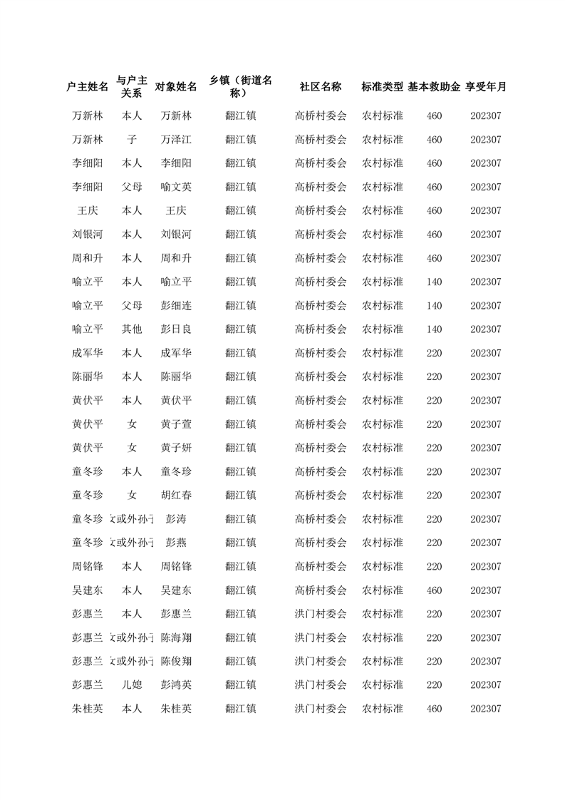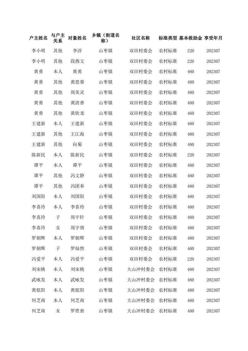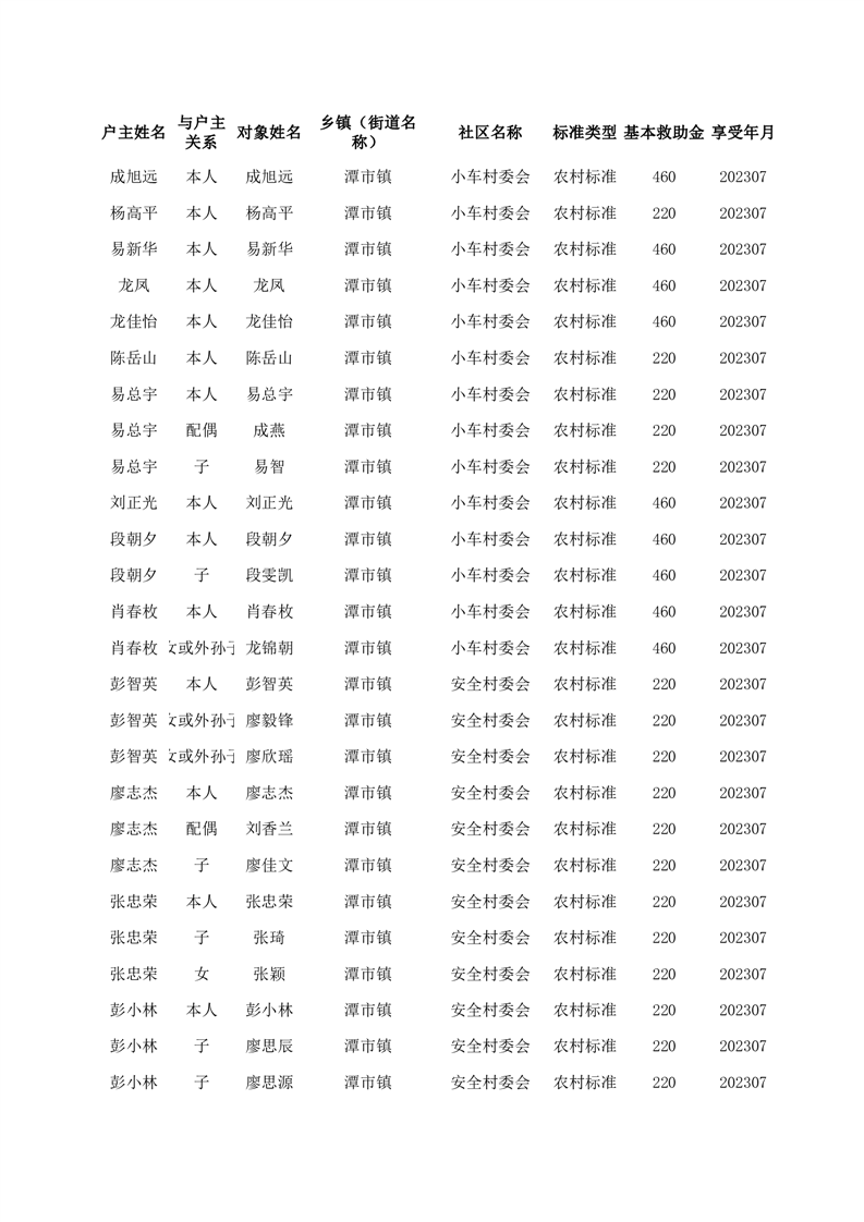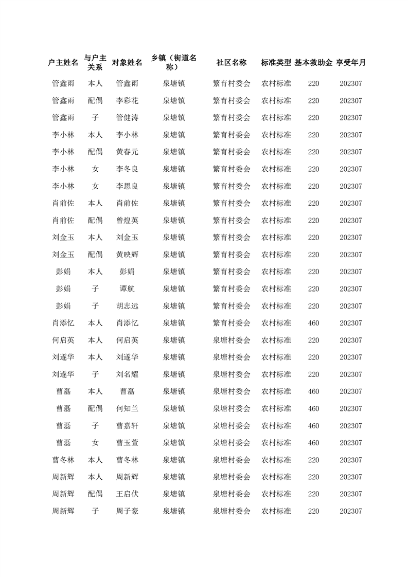 湘鄉市2023年7月份農村低保救助對象審批匯總表