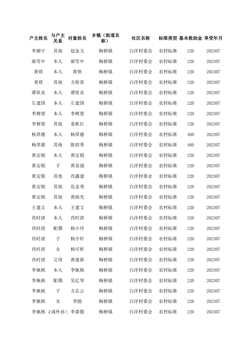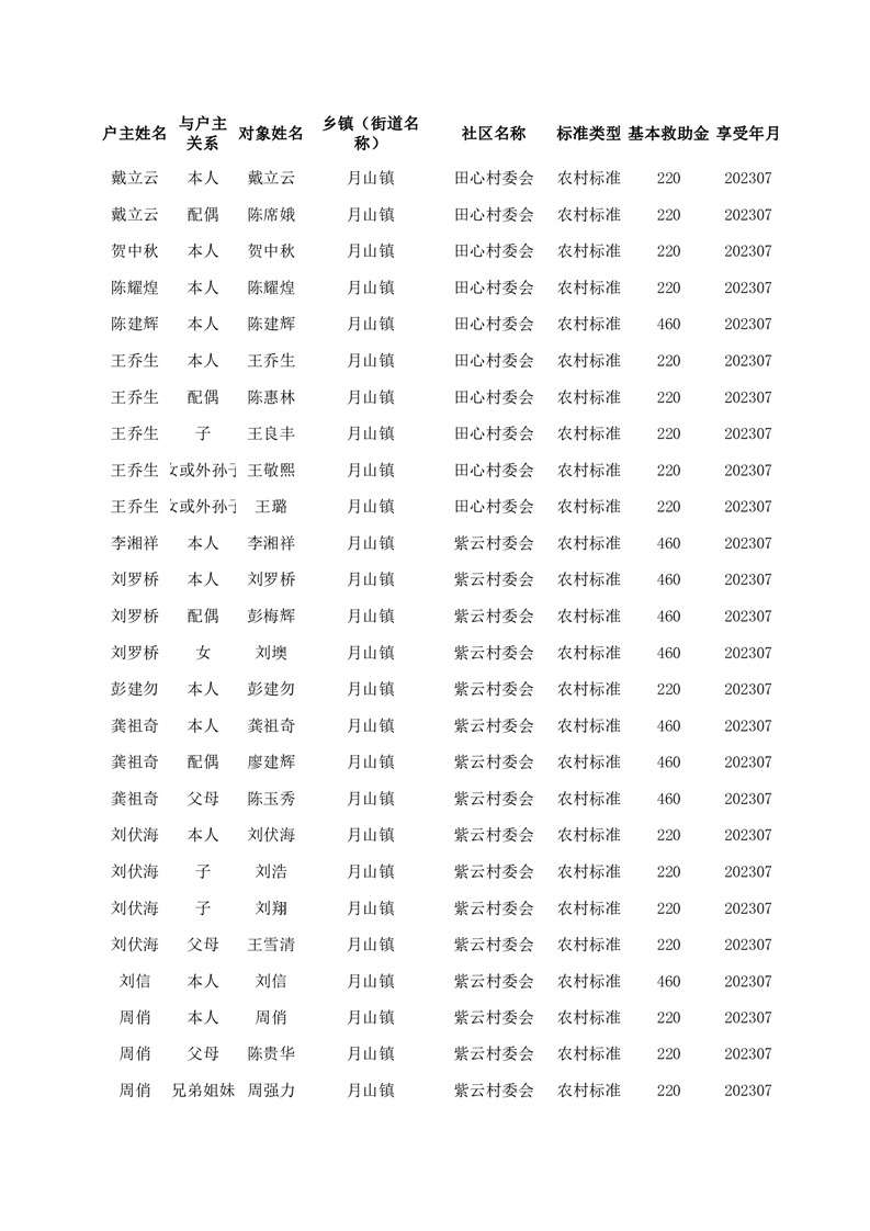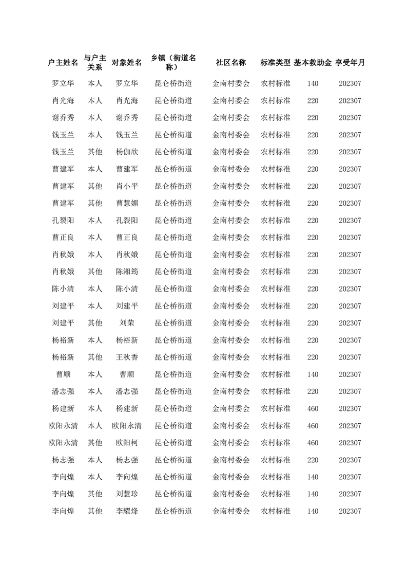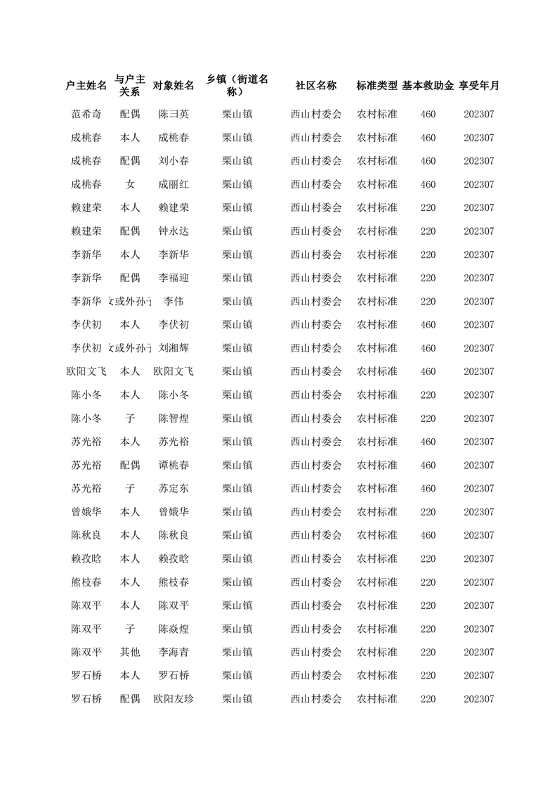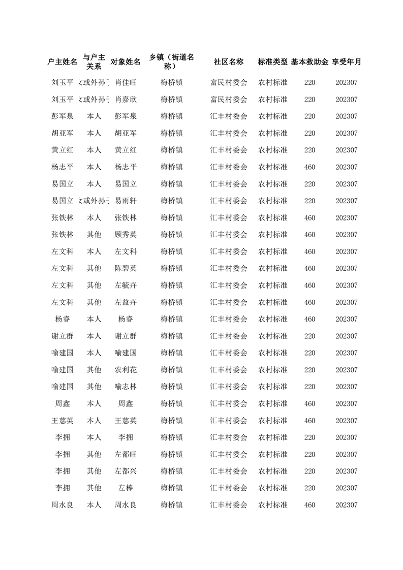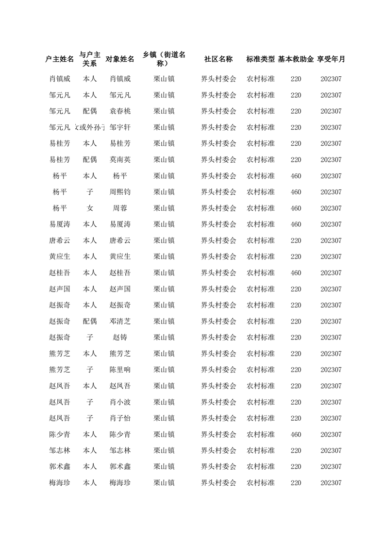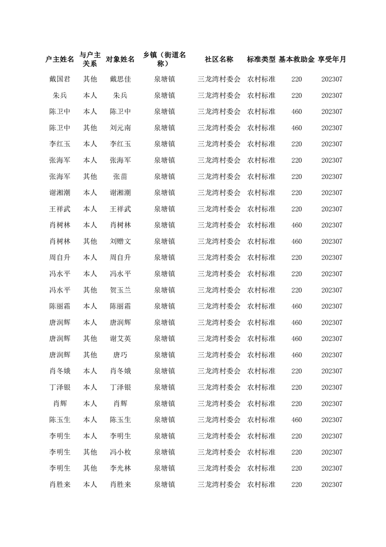 湘鄉市2023年7月份農村低保救助對象審批匯總表