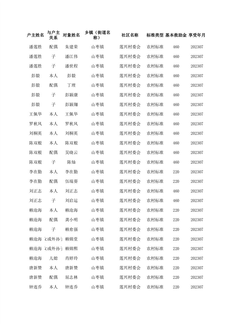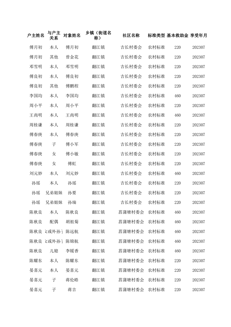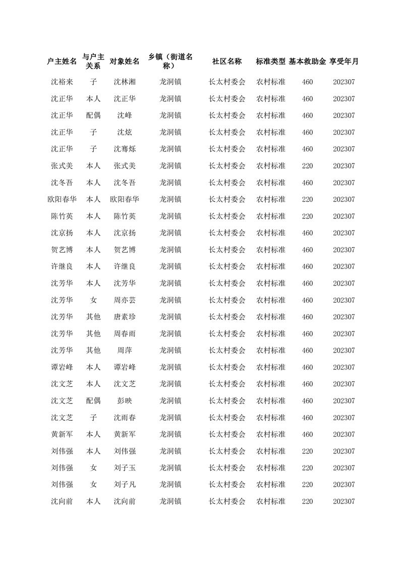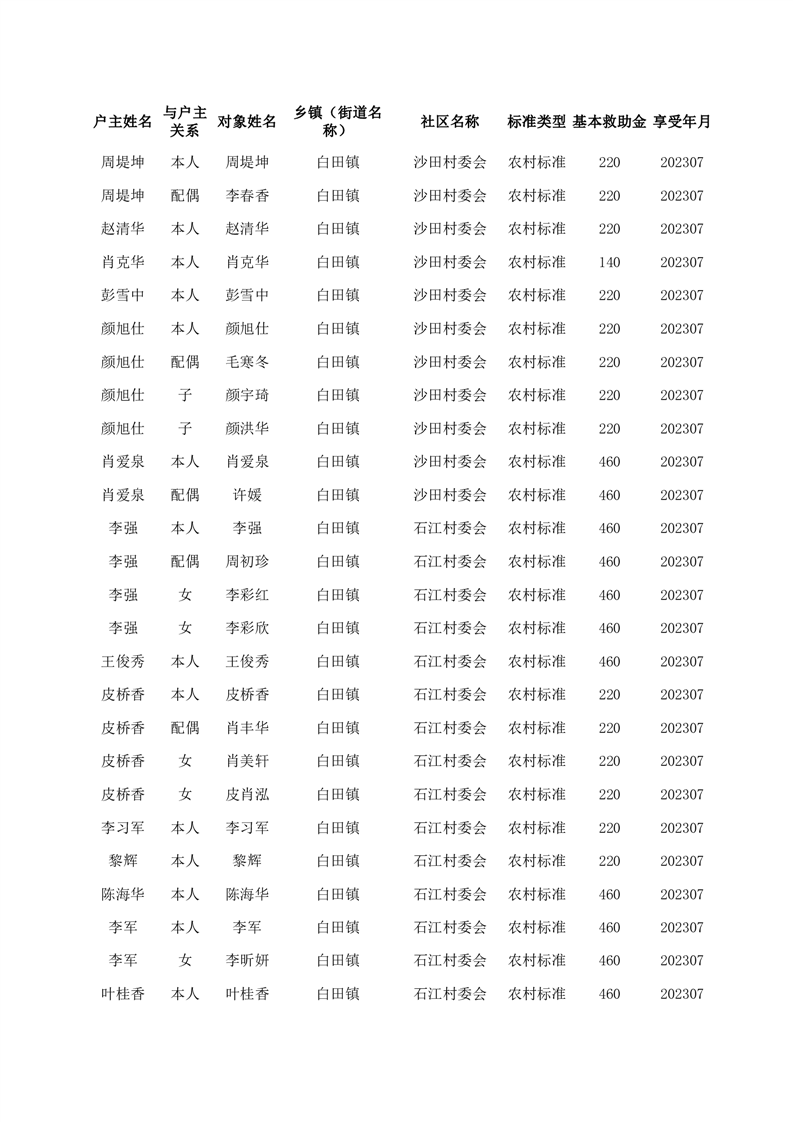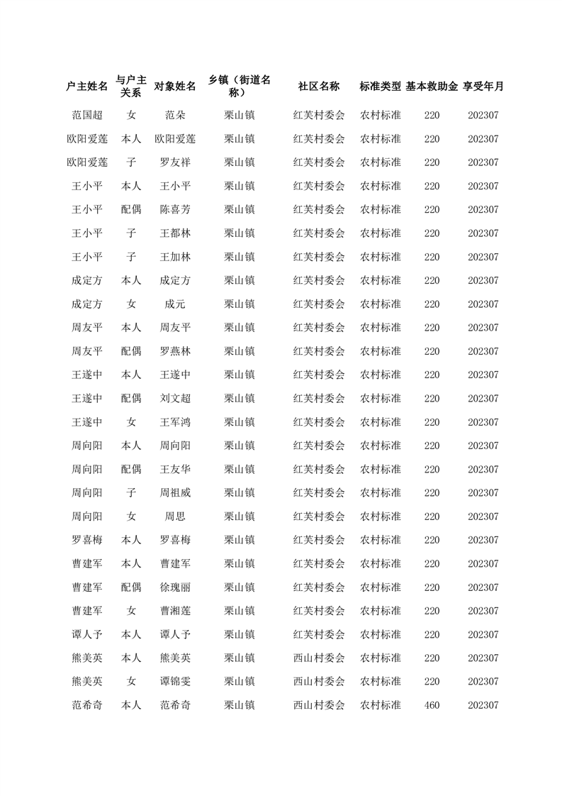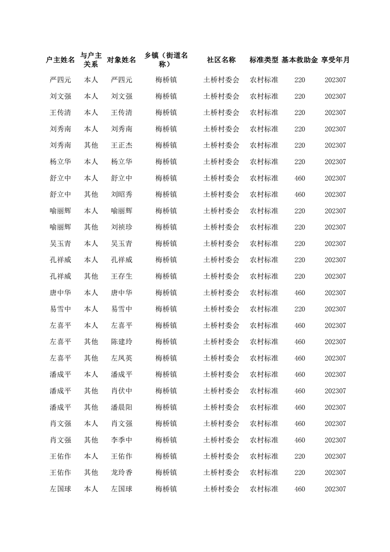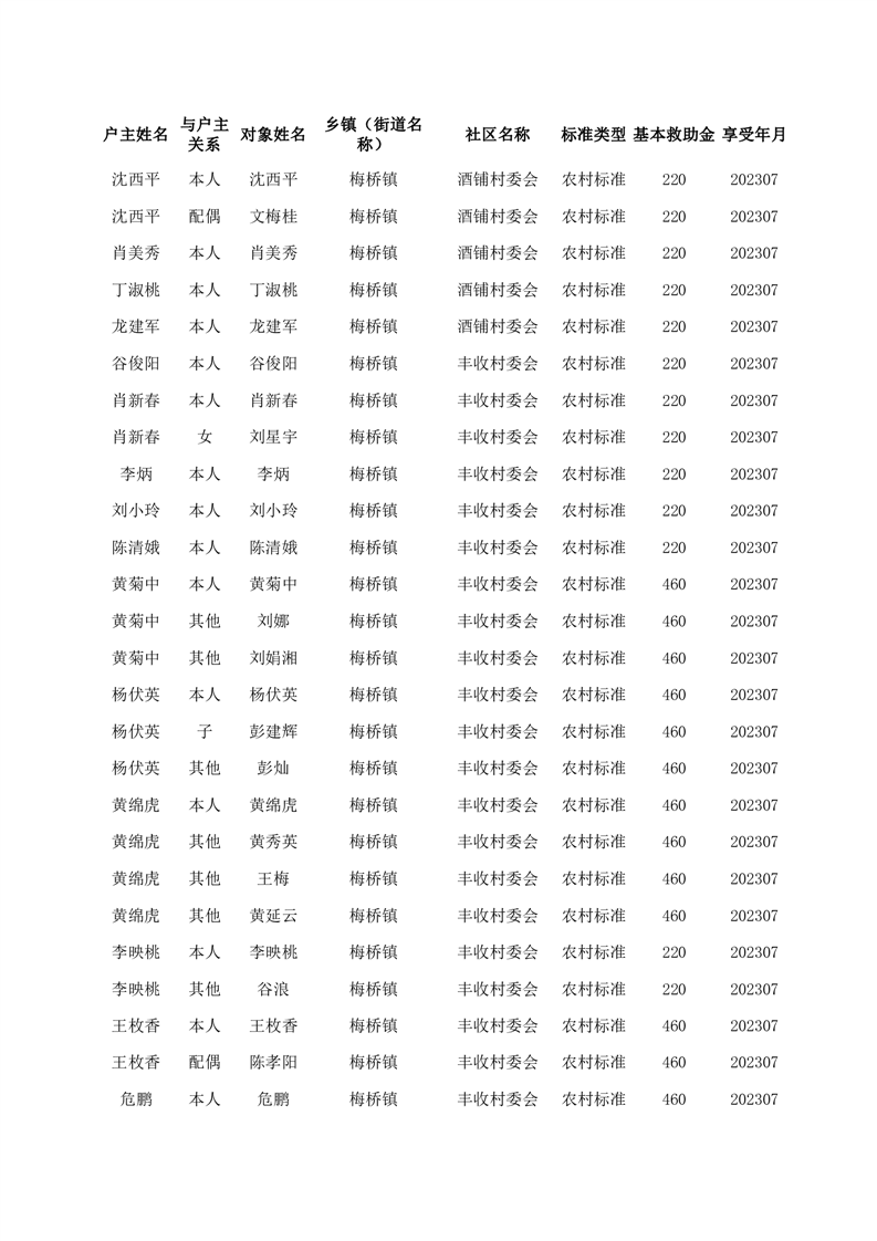 湘鄉市2023年7月份農村低保救助對象審批匯總表