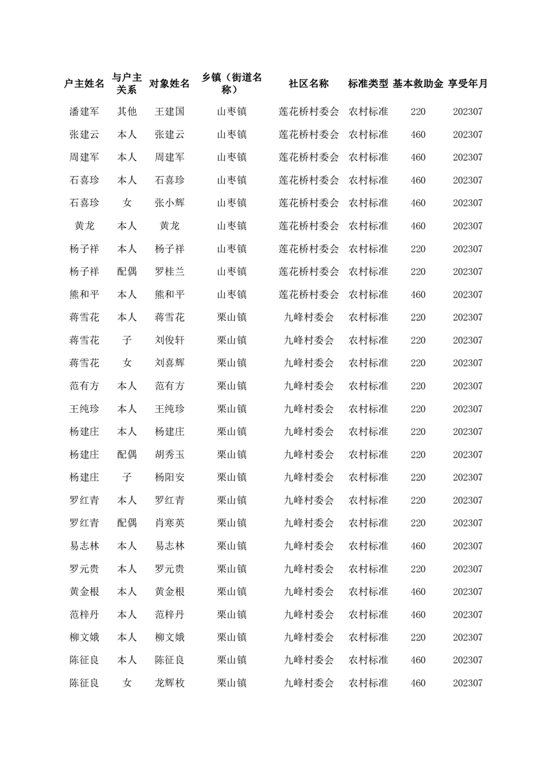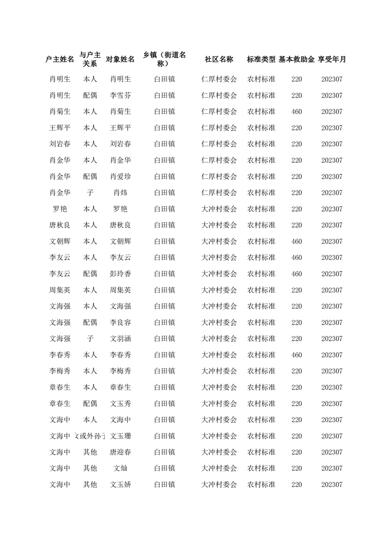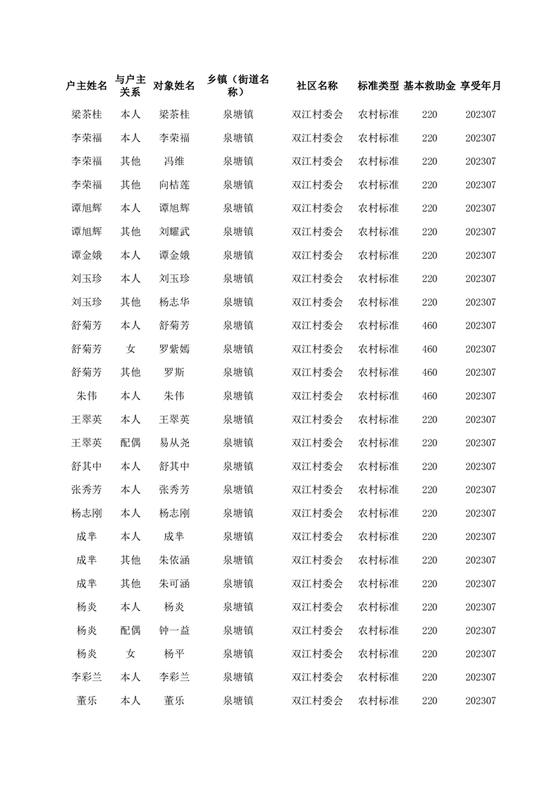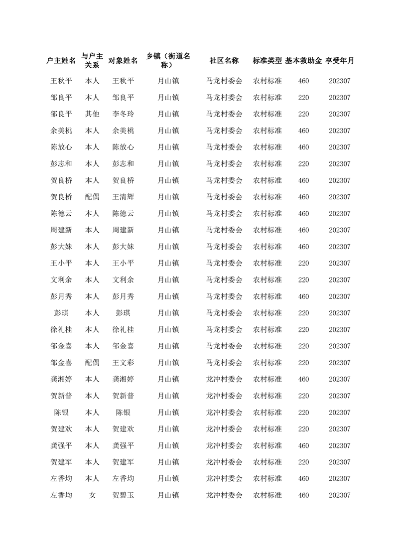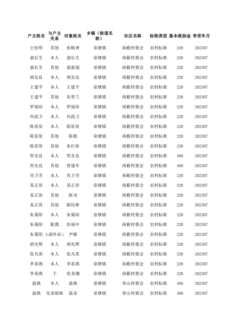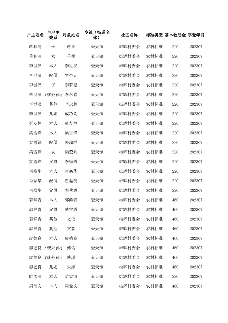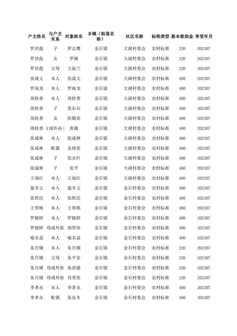 湘鄉市2023年7月份農村低保救助對象審批匯總表