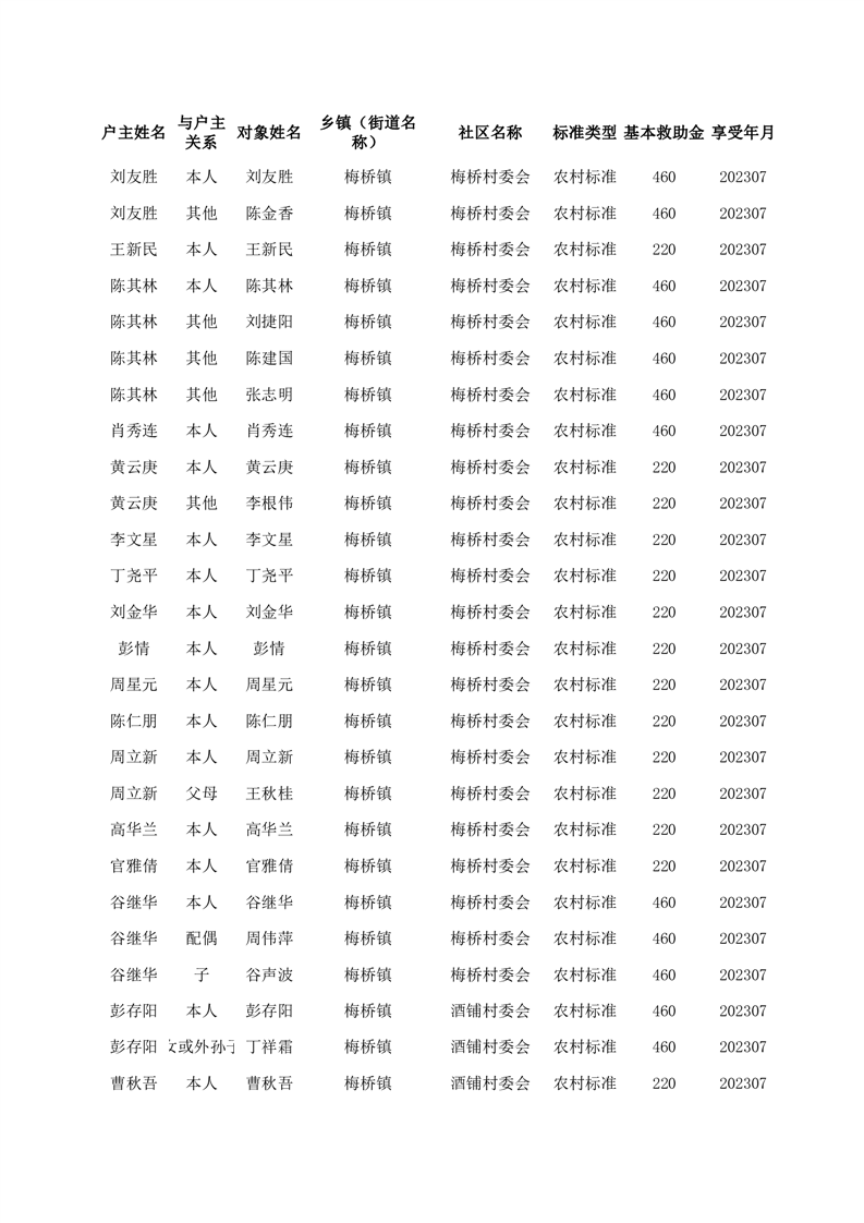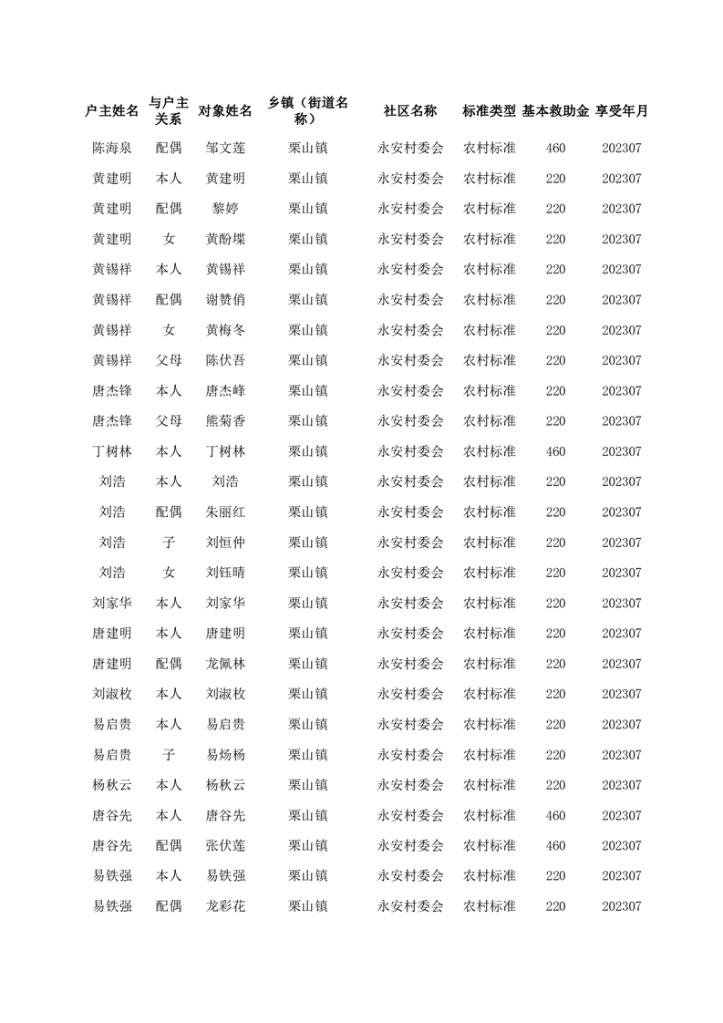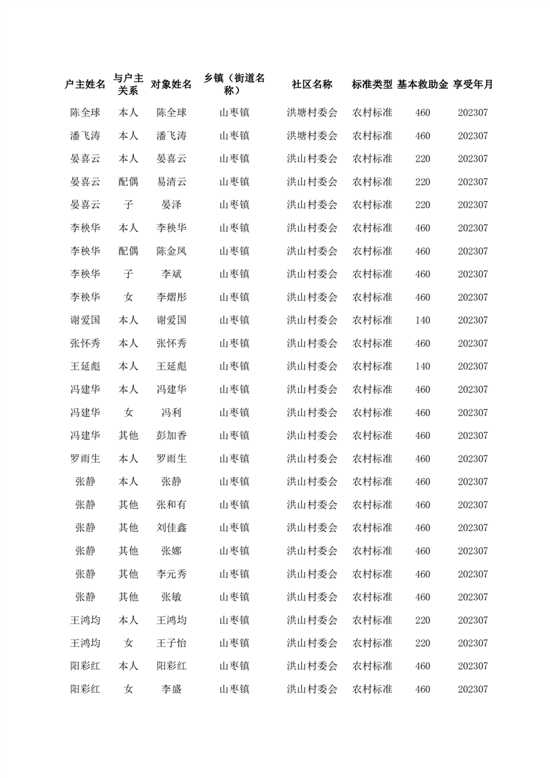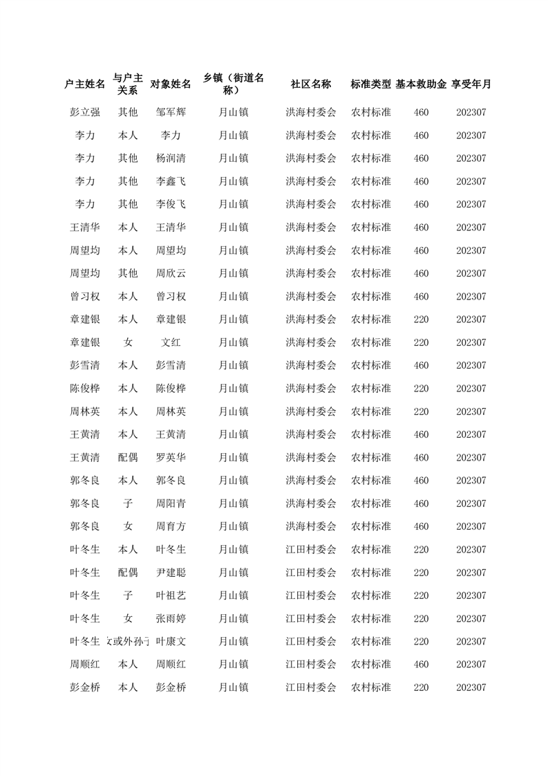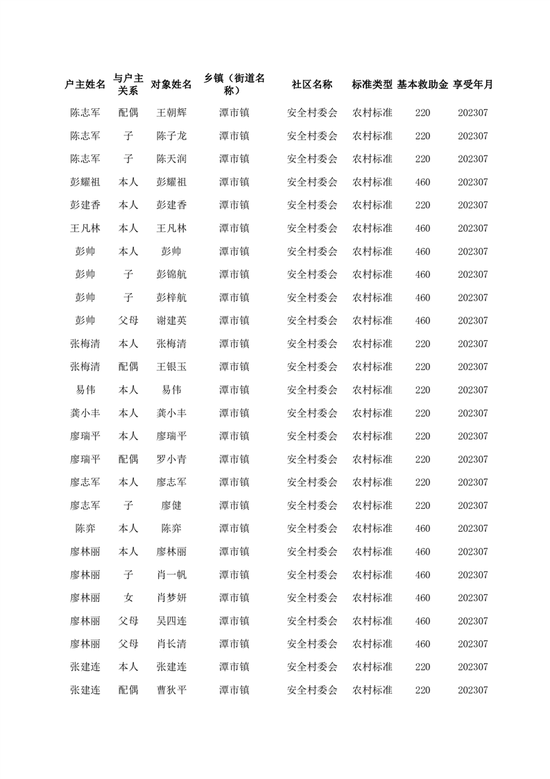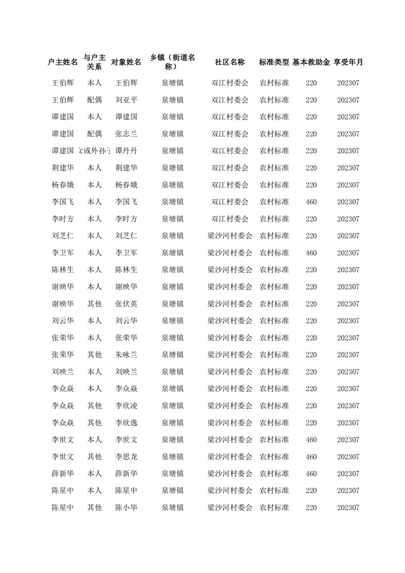 湘鄉市2023年7月份農村低保救助對象審批匯總表