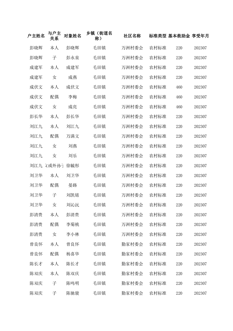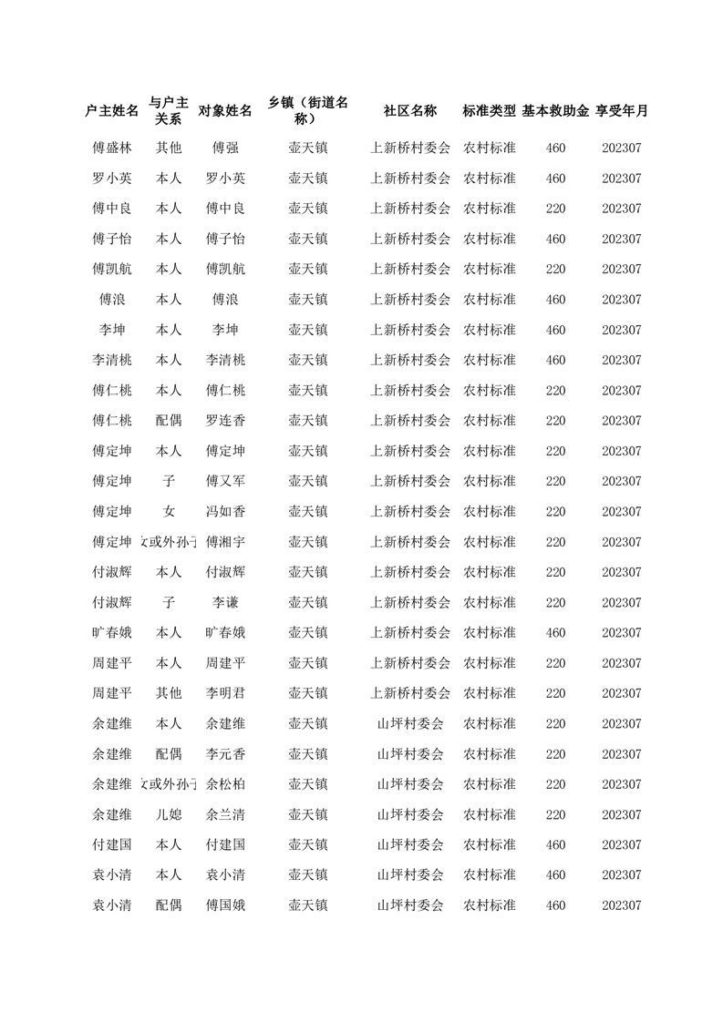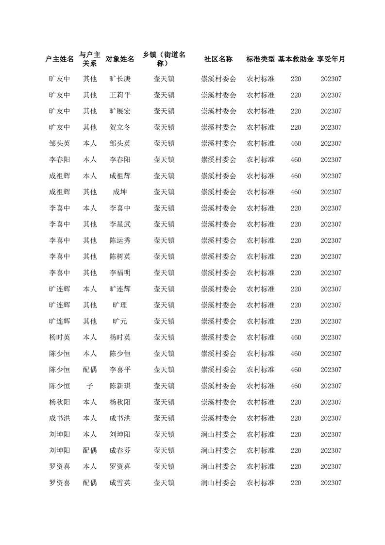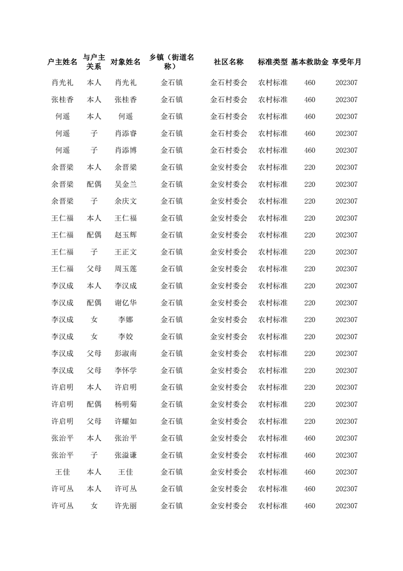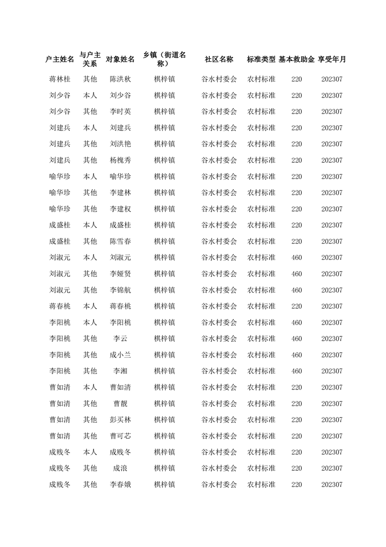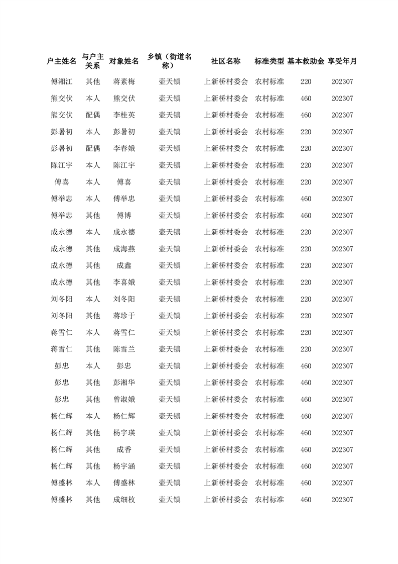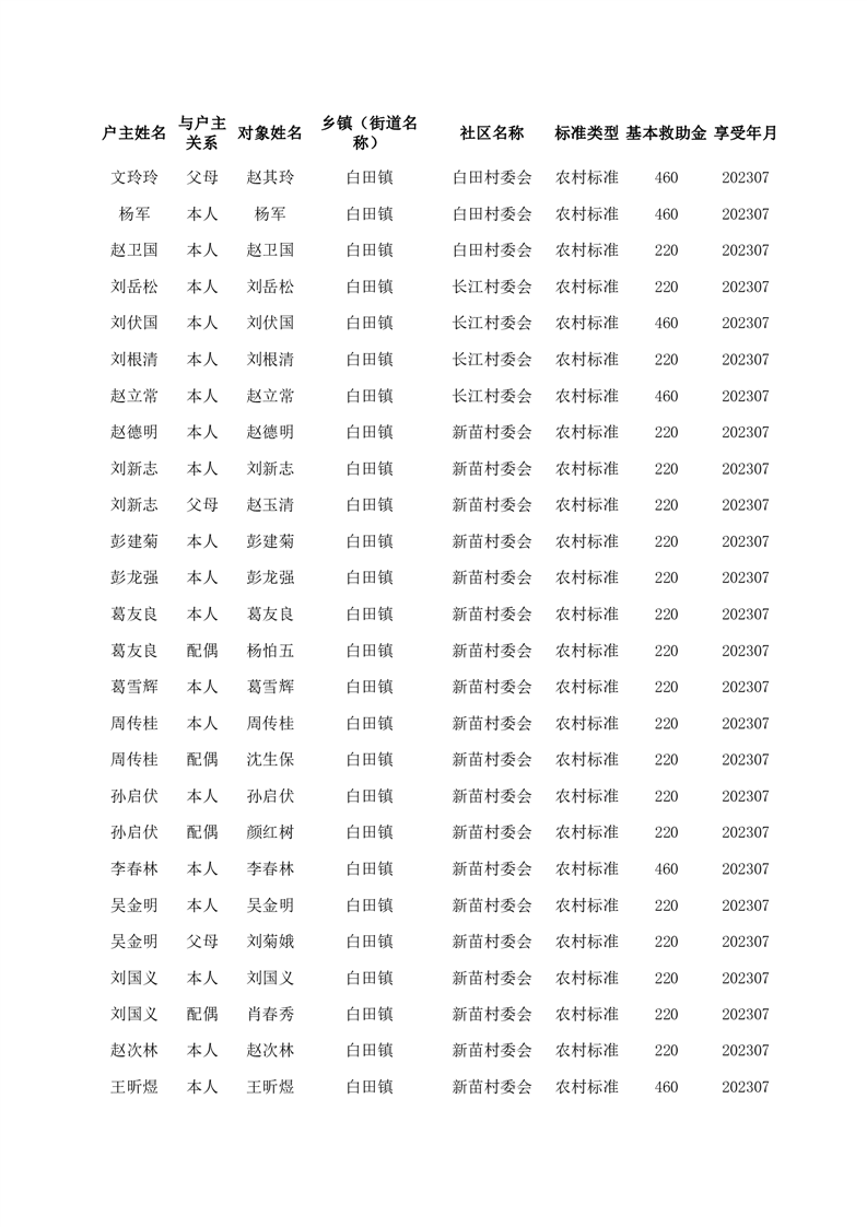 湘鄉市2023年7月份農村低保救助對象審批匯總表