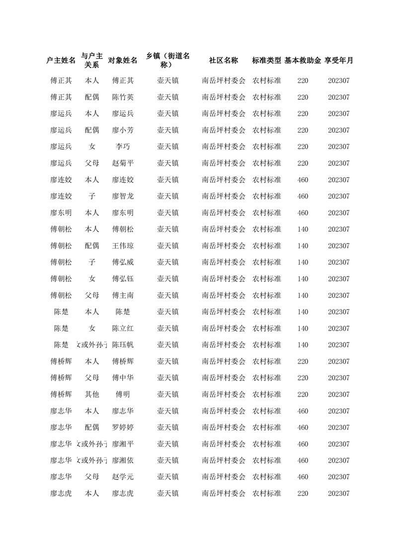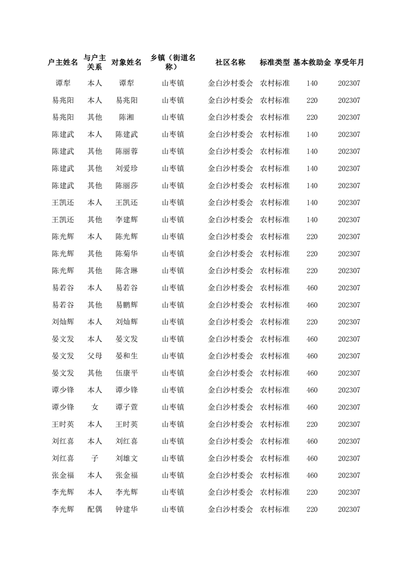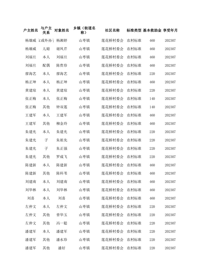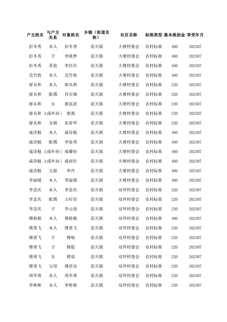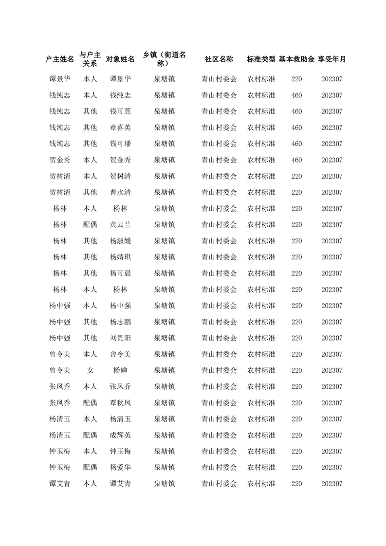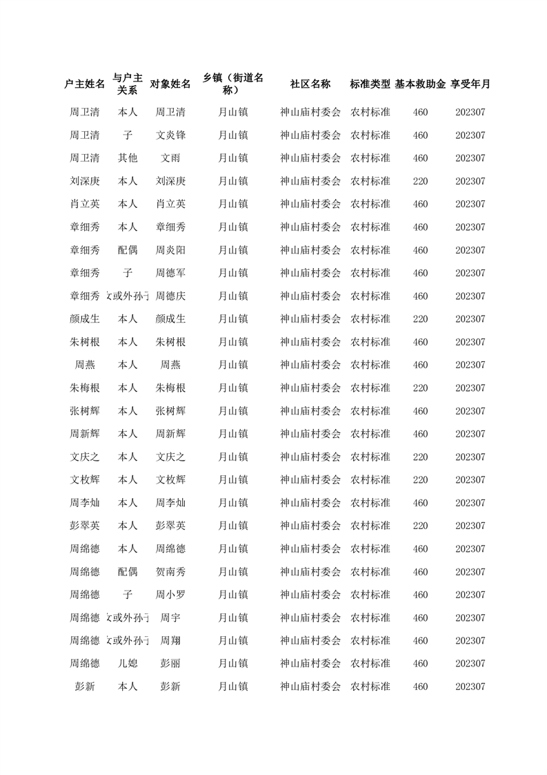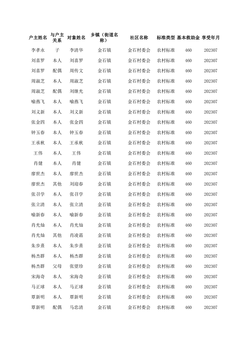 湘鄉市2023年7月份農村低保救助對象審批匯總表