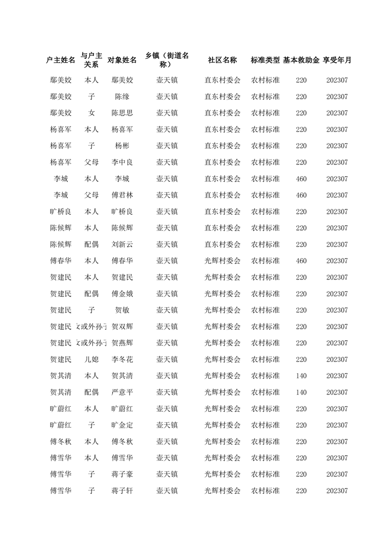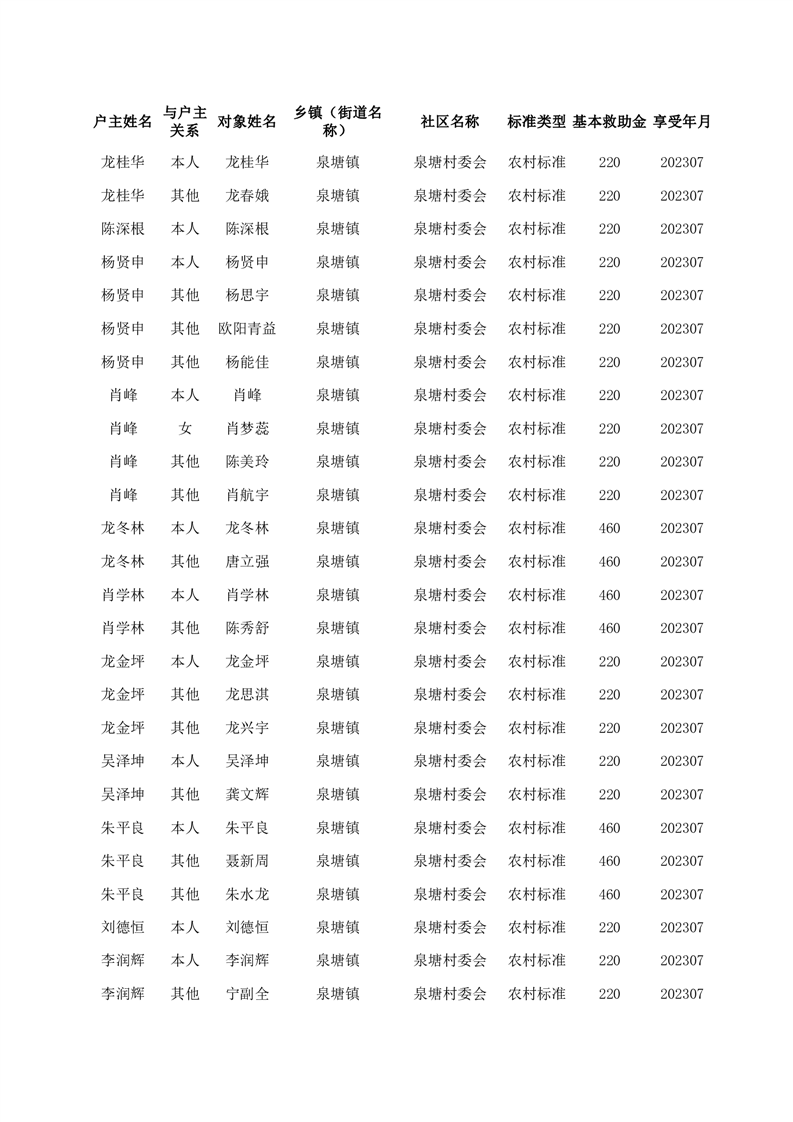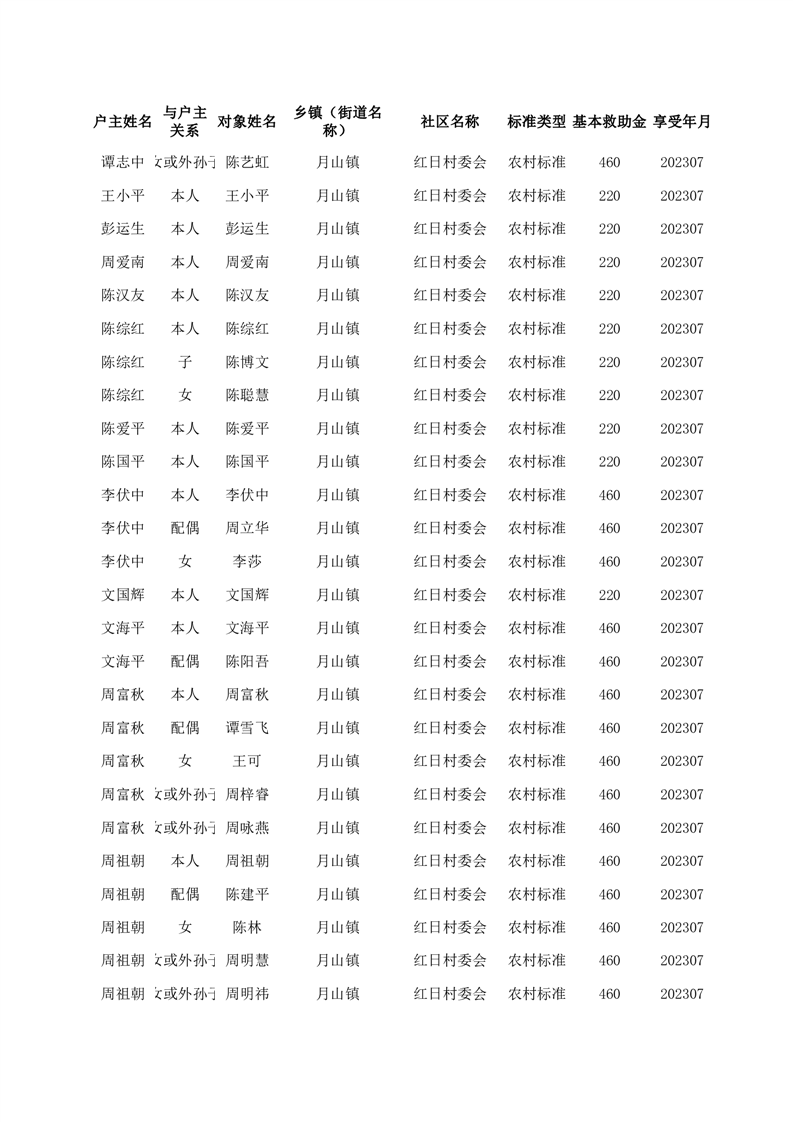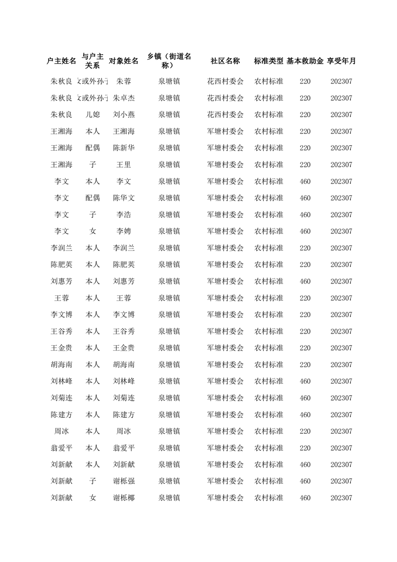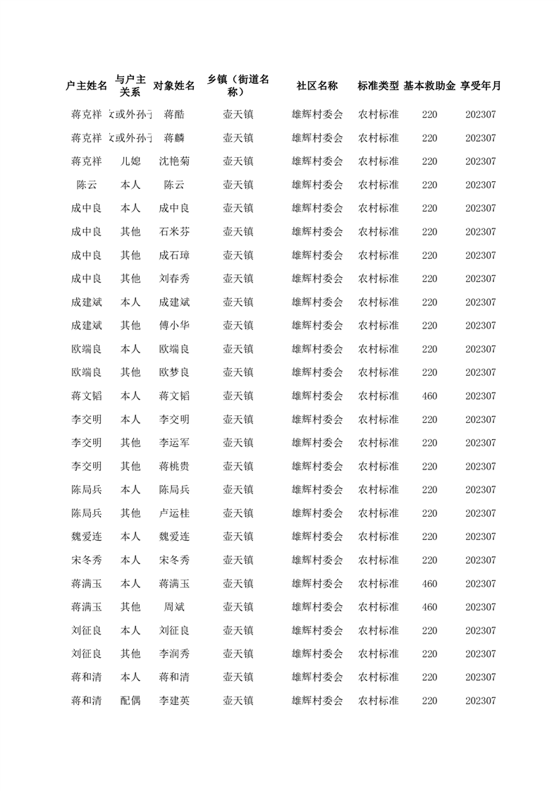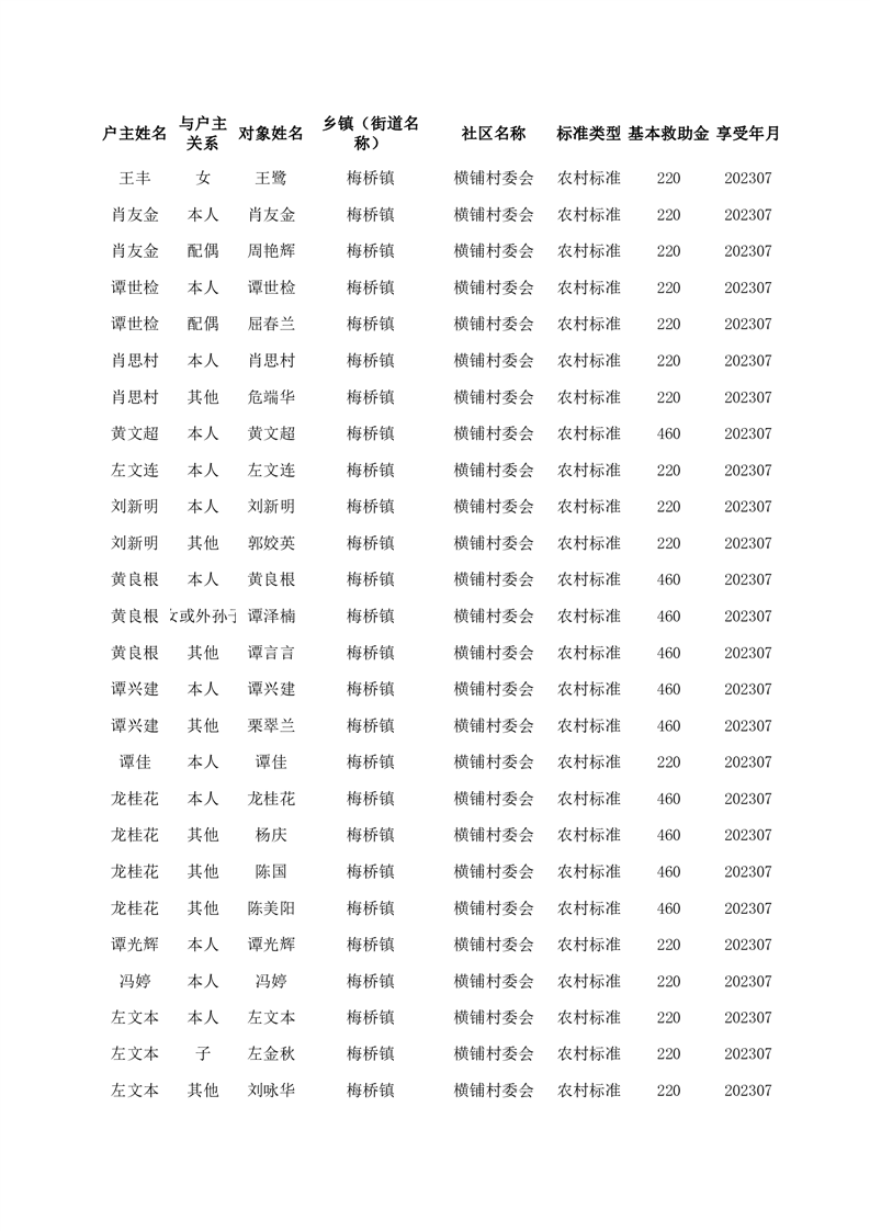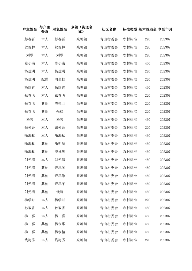 湘鄉市2023年7月份農村低保救助對象審批匯總表