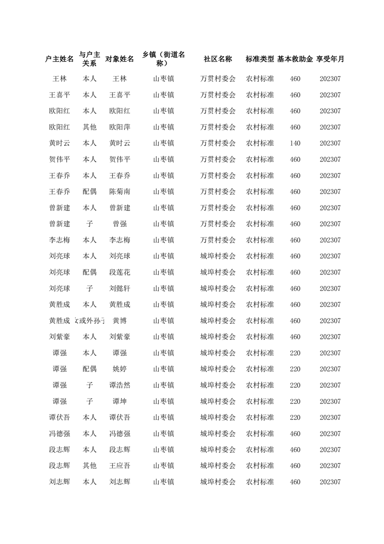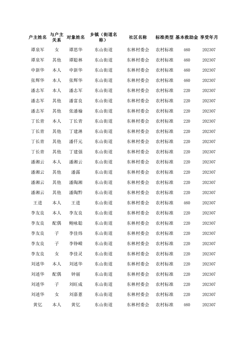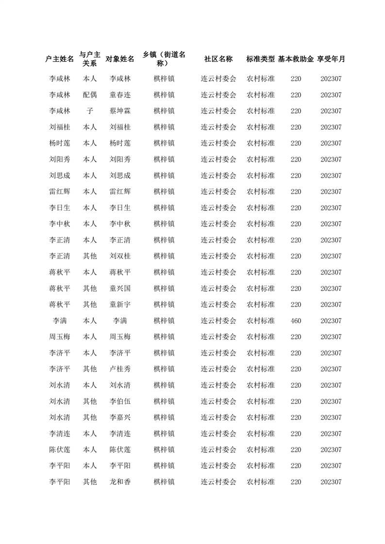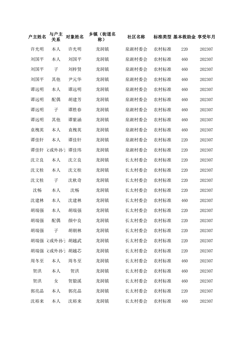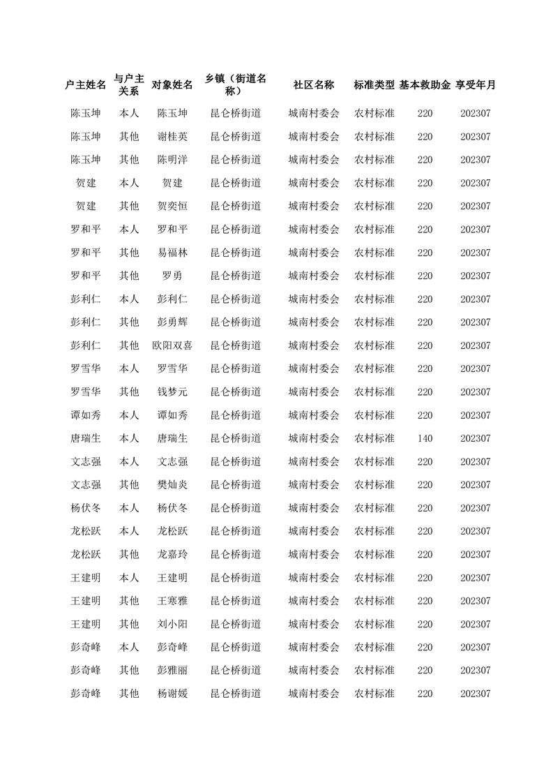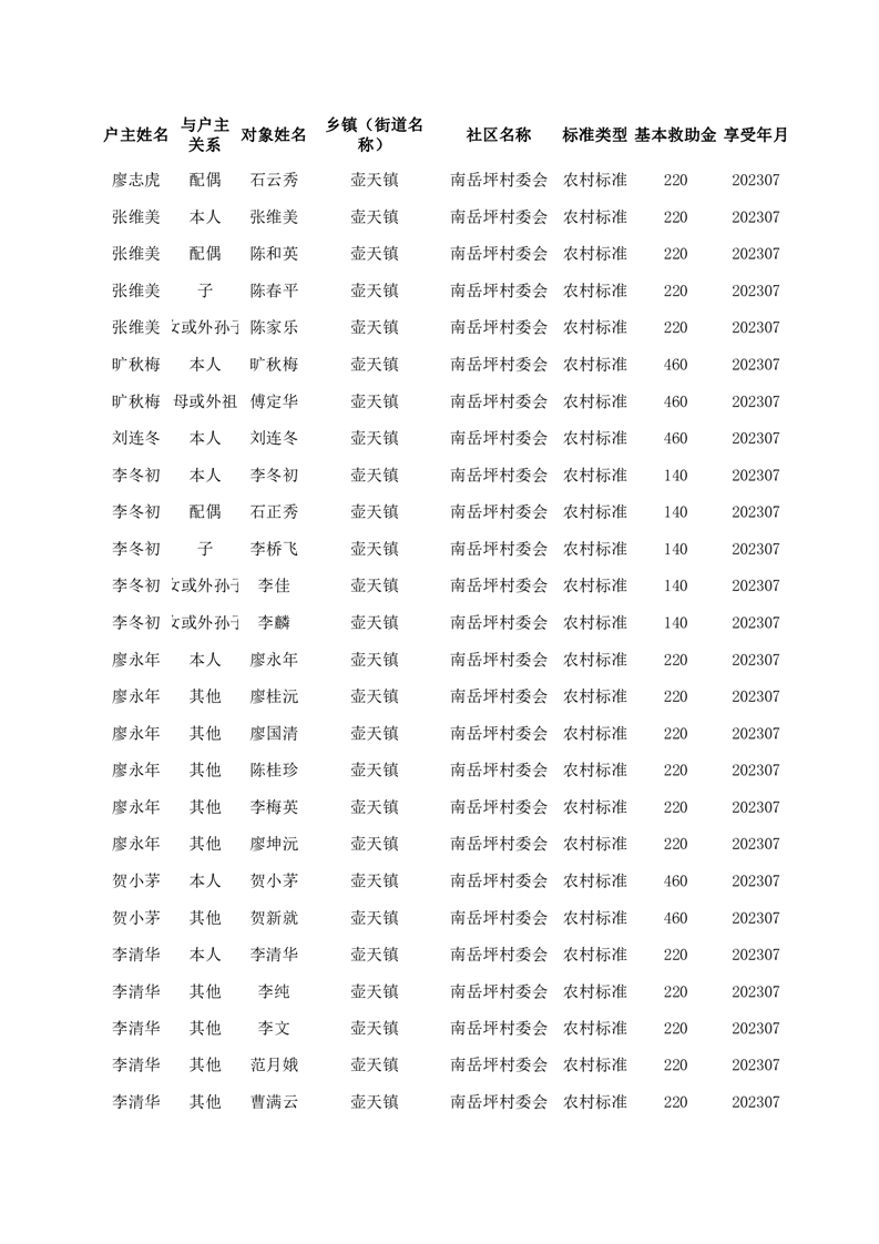 湘鄉市2023年7月份農村低保救助對象審批匯總表