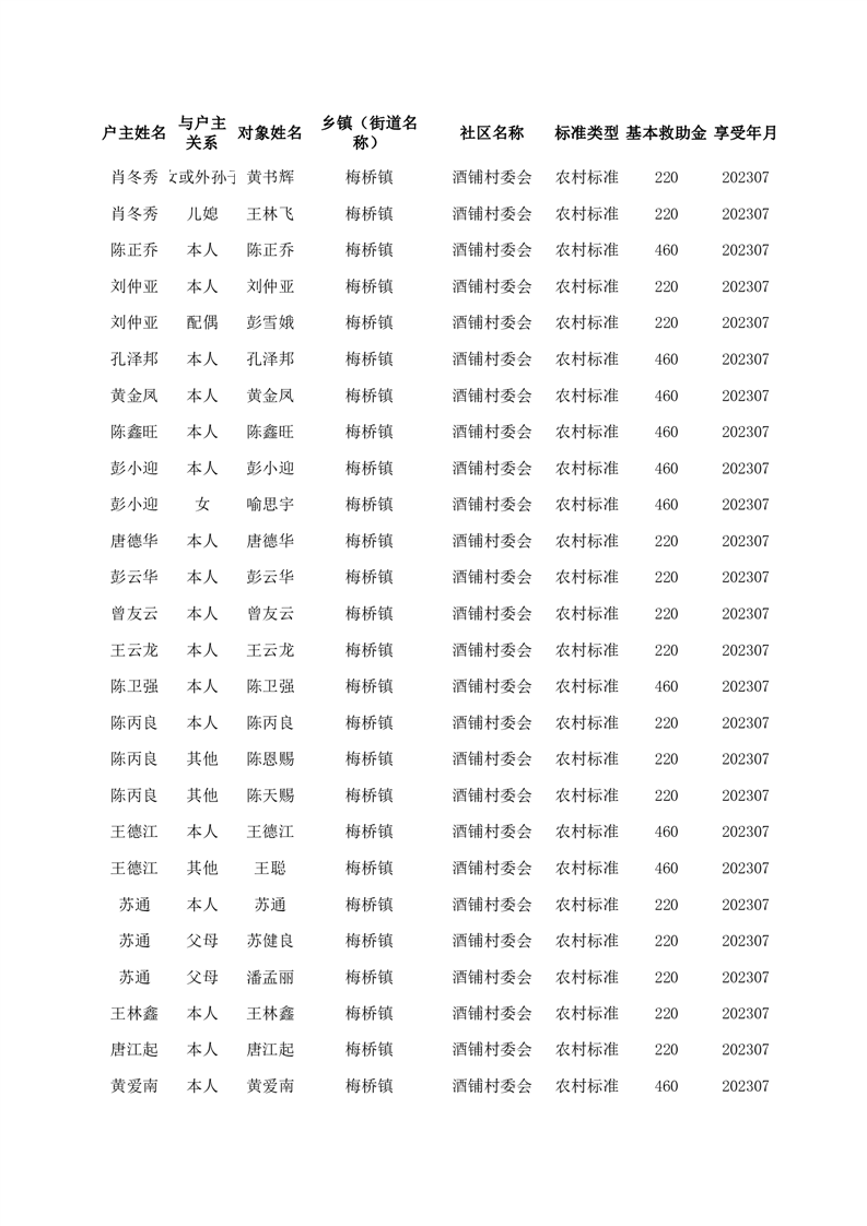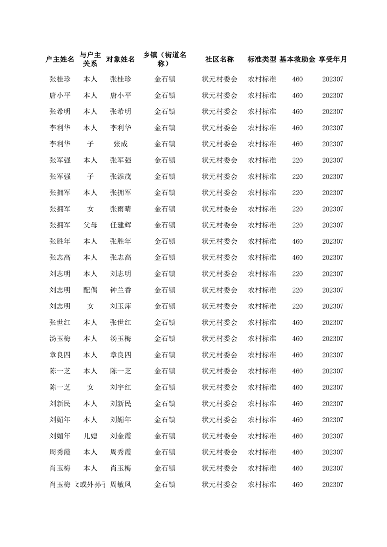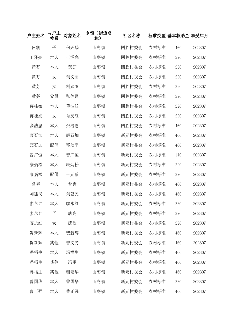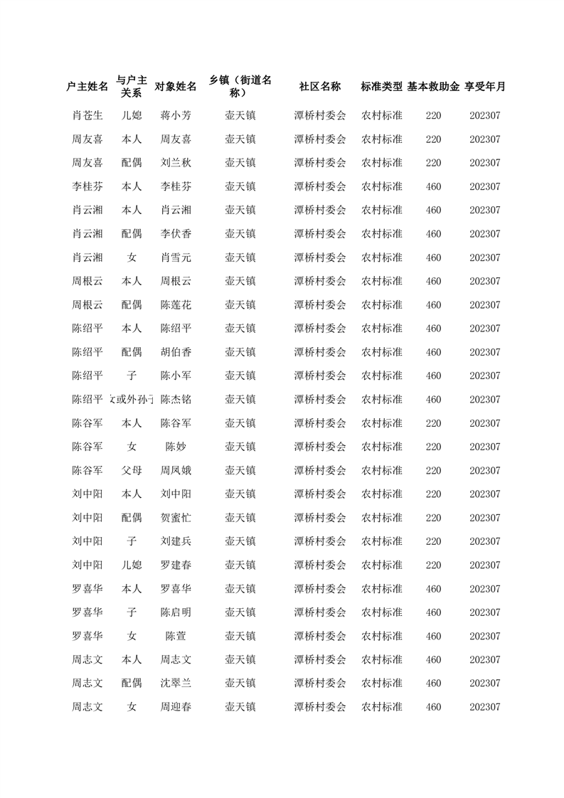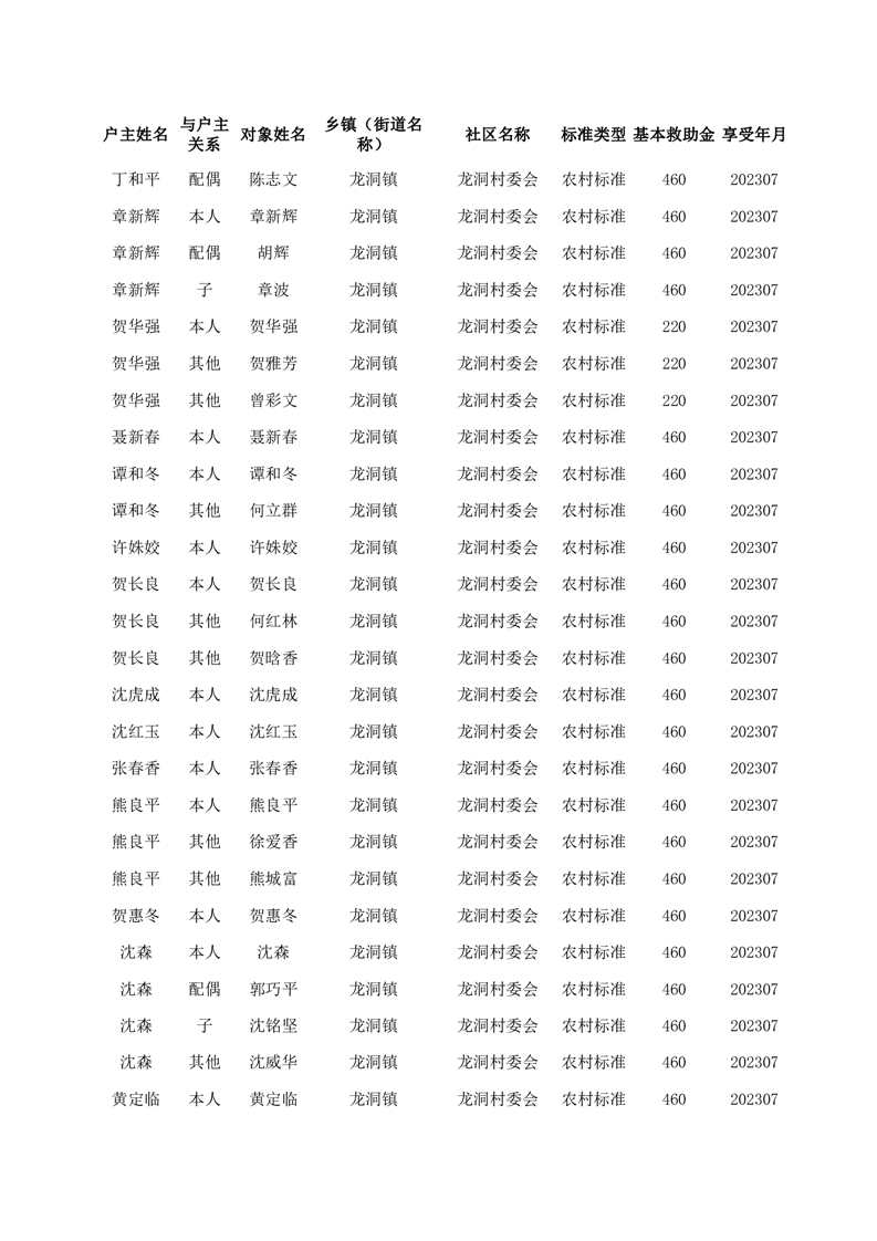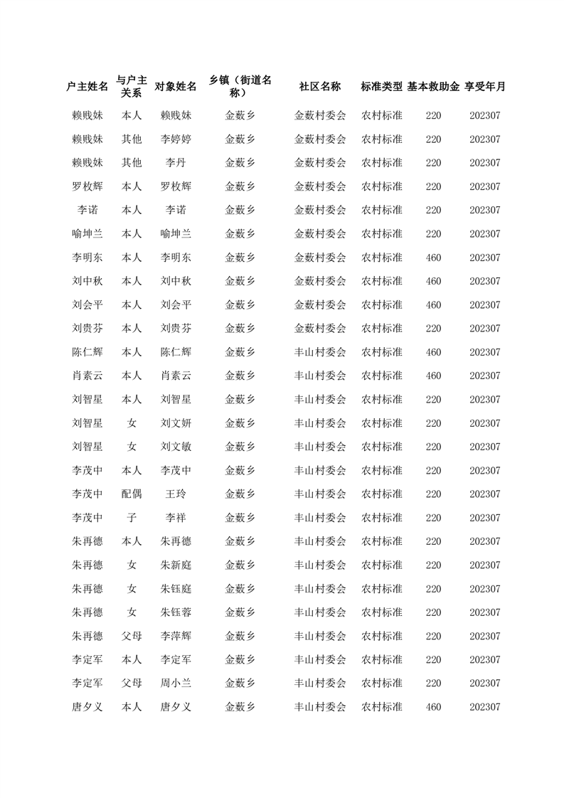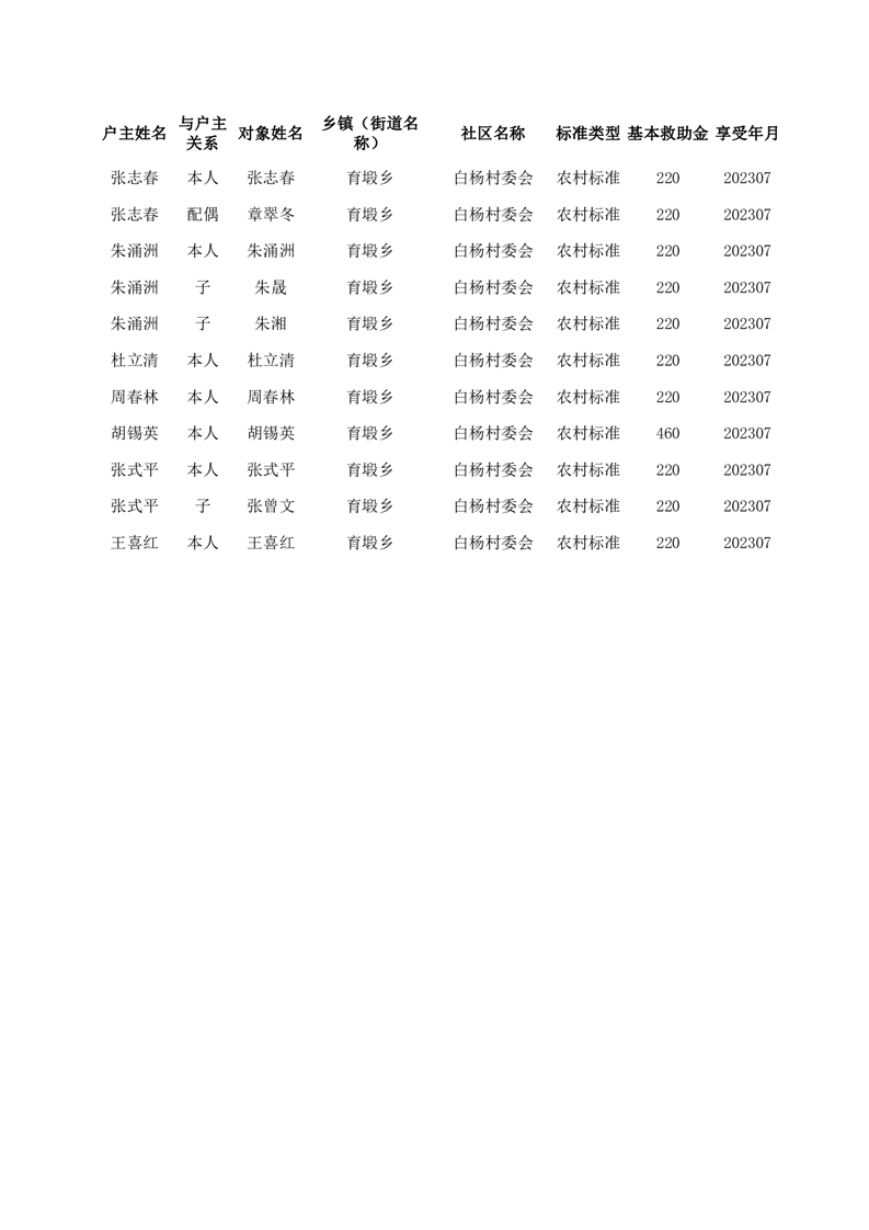 湘鄉市2023年7月份農村低保救助對象審批匯總表
