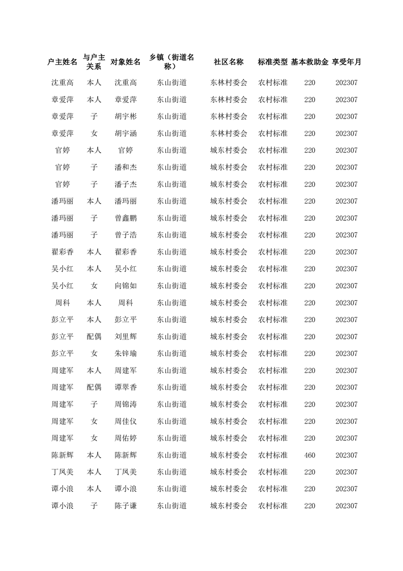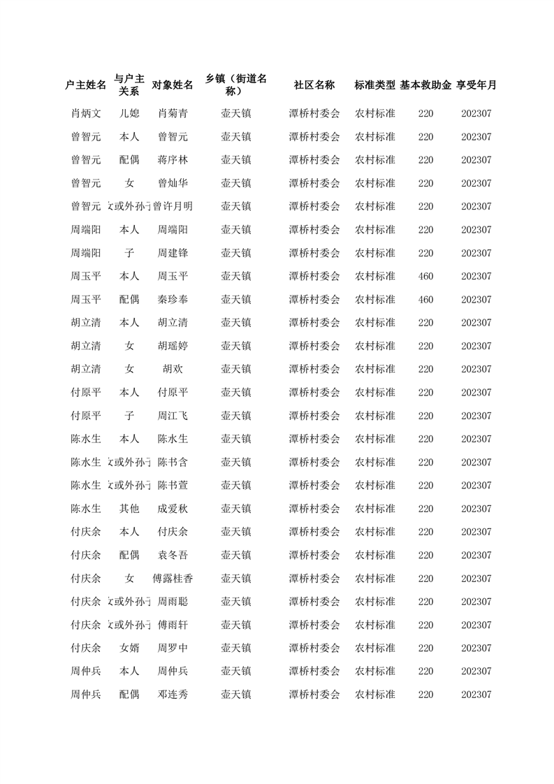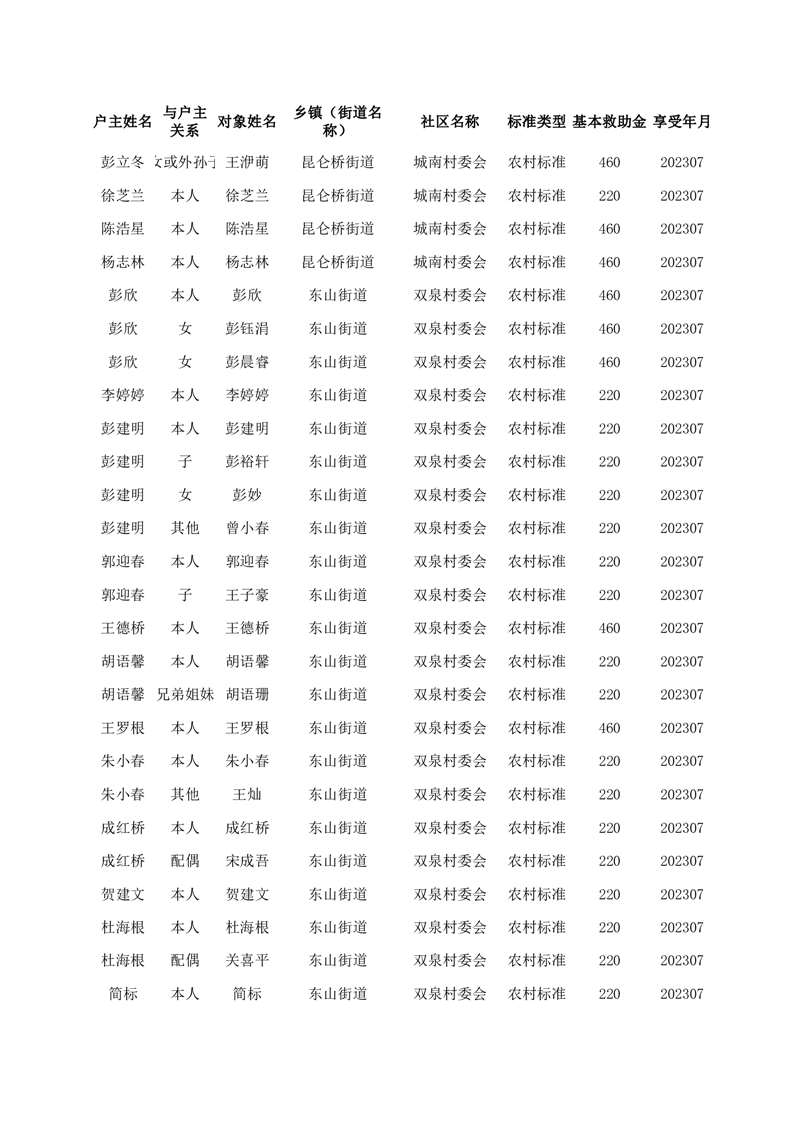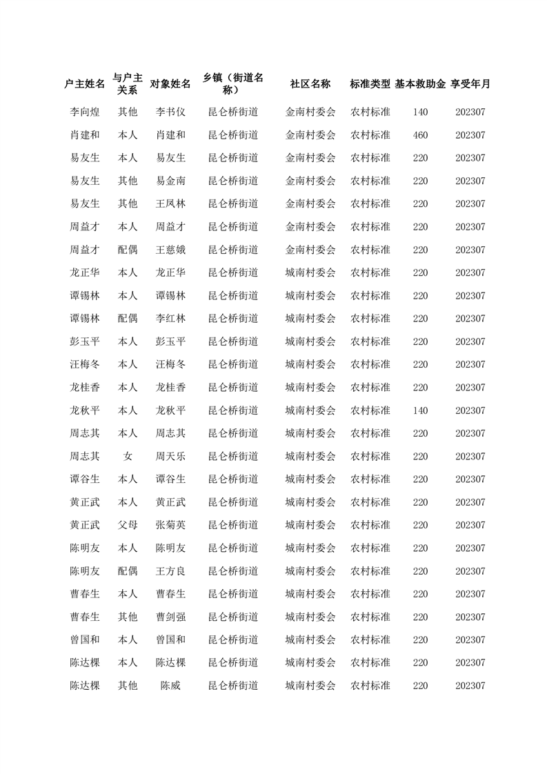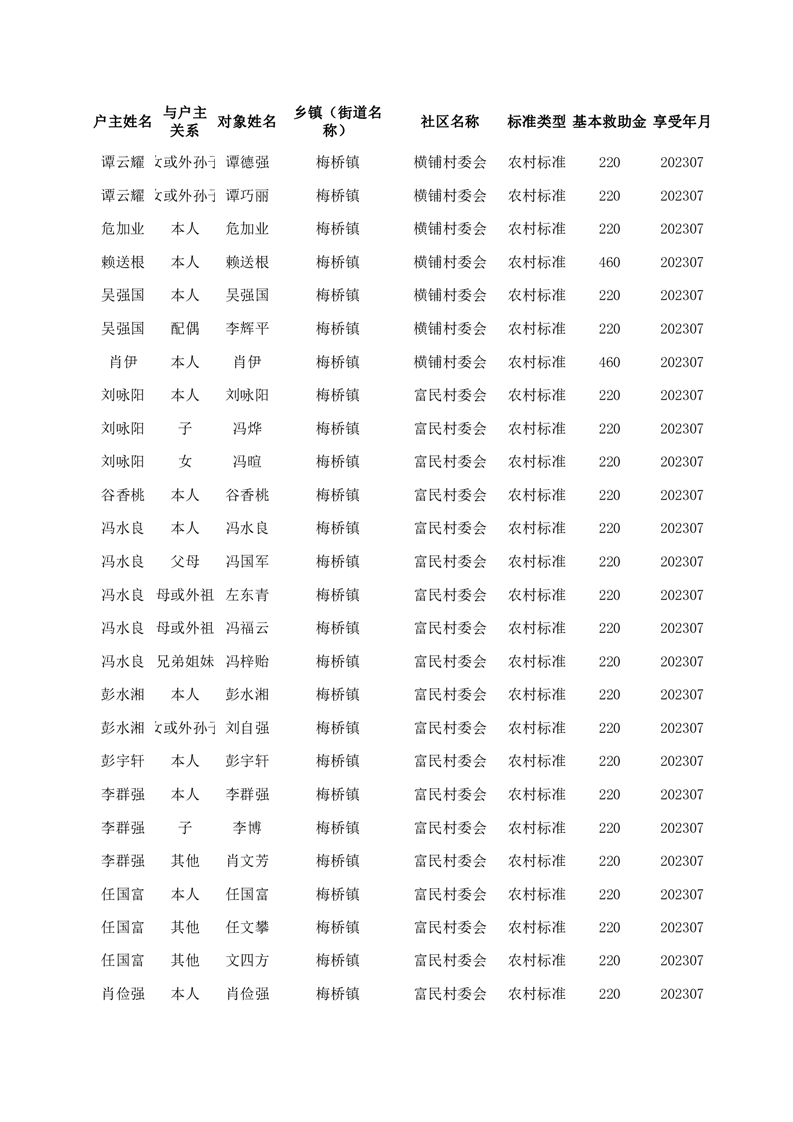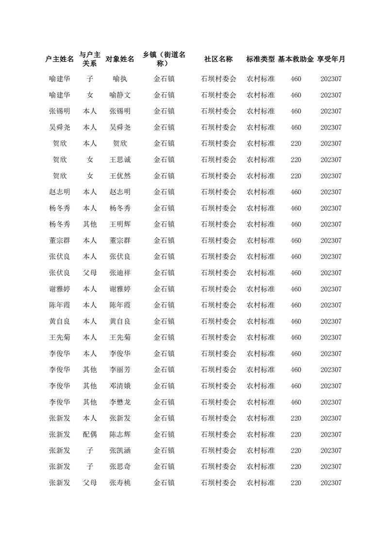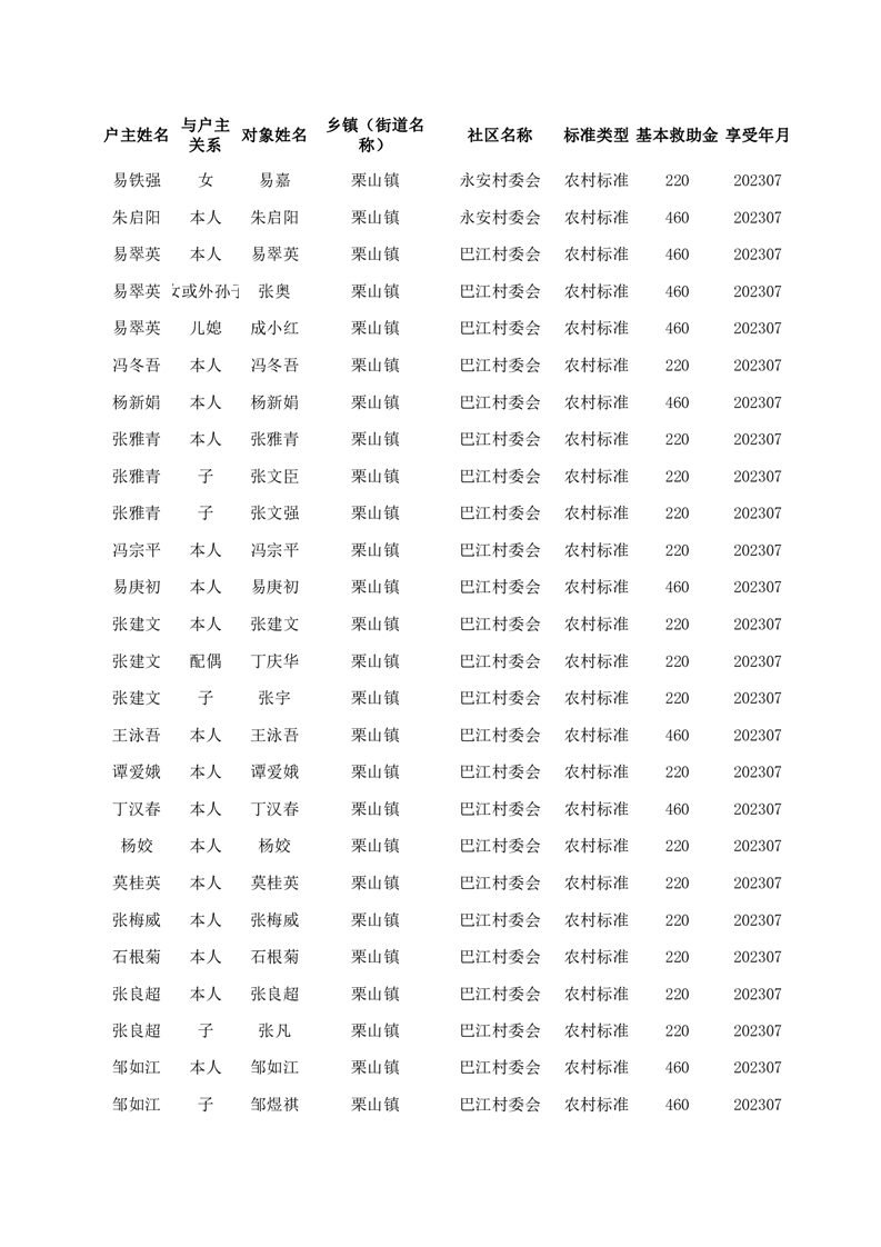湘鄉市2023年7月份農村低保救助對象審批匯總表