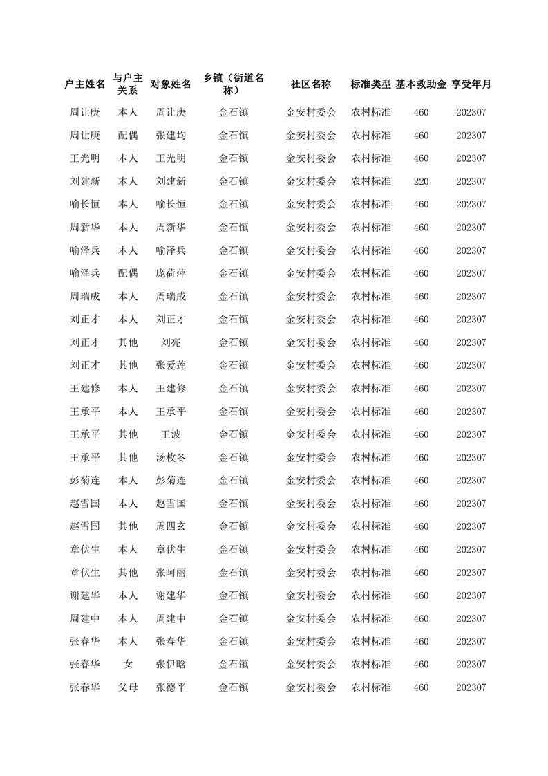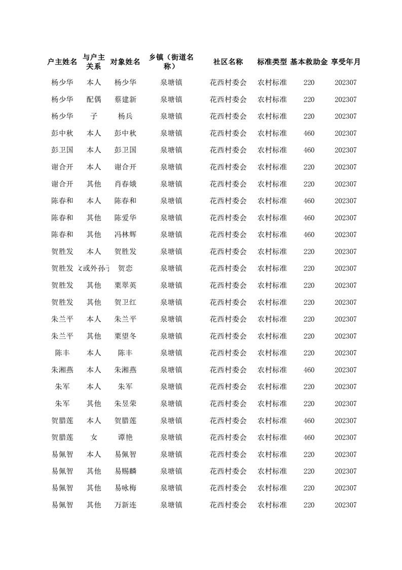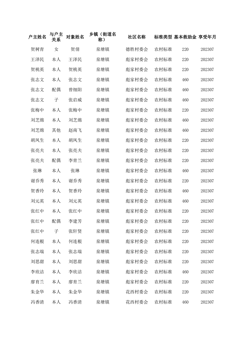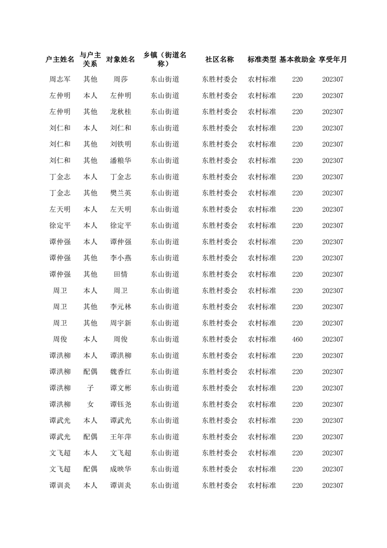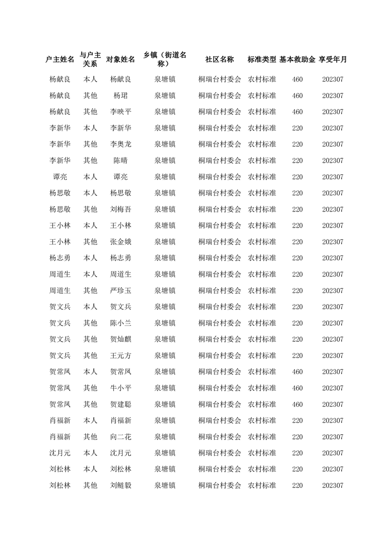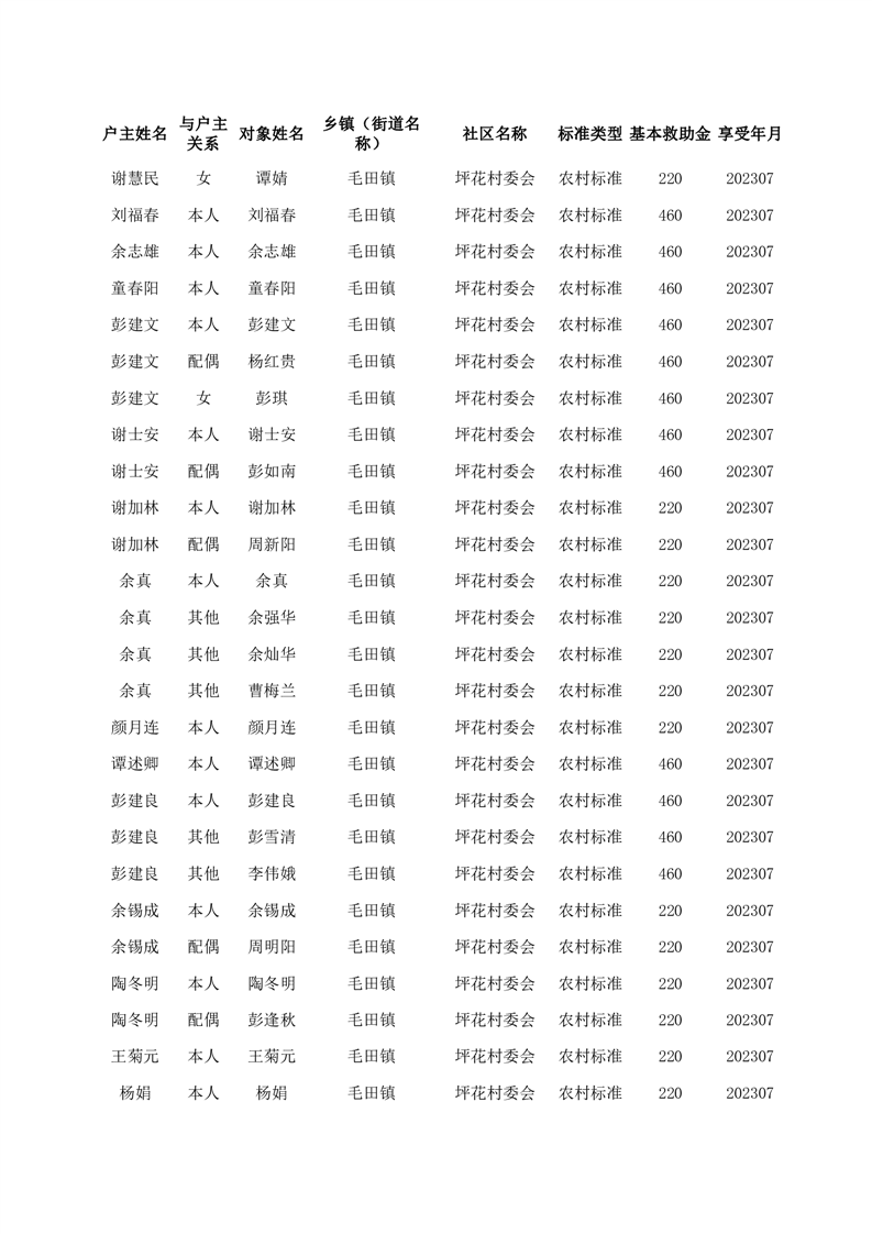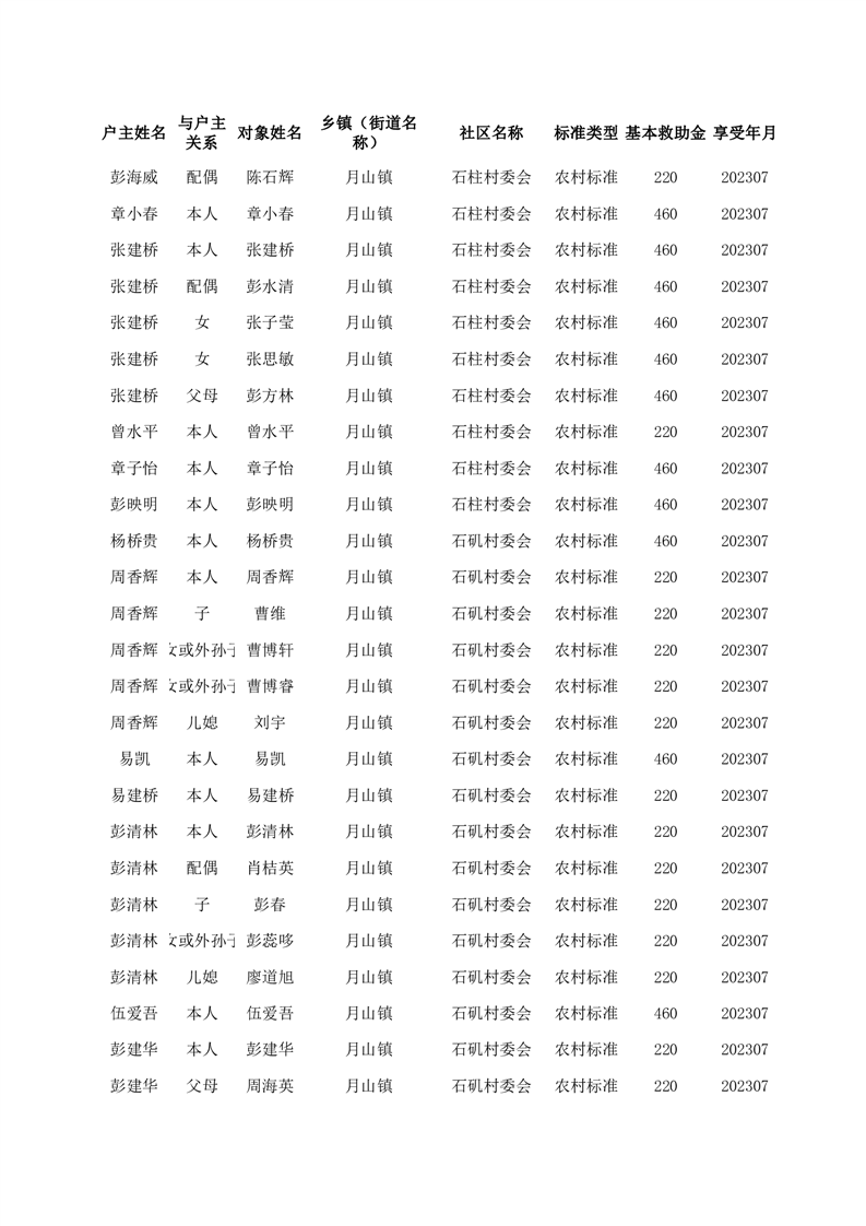 湘鄉市2023年7月份農村低保救助對象審批匯總表