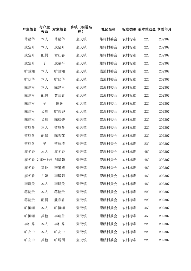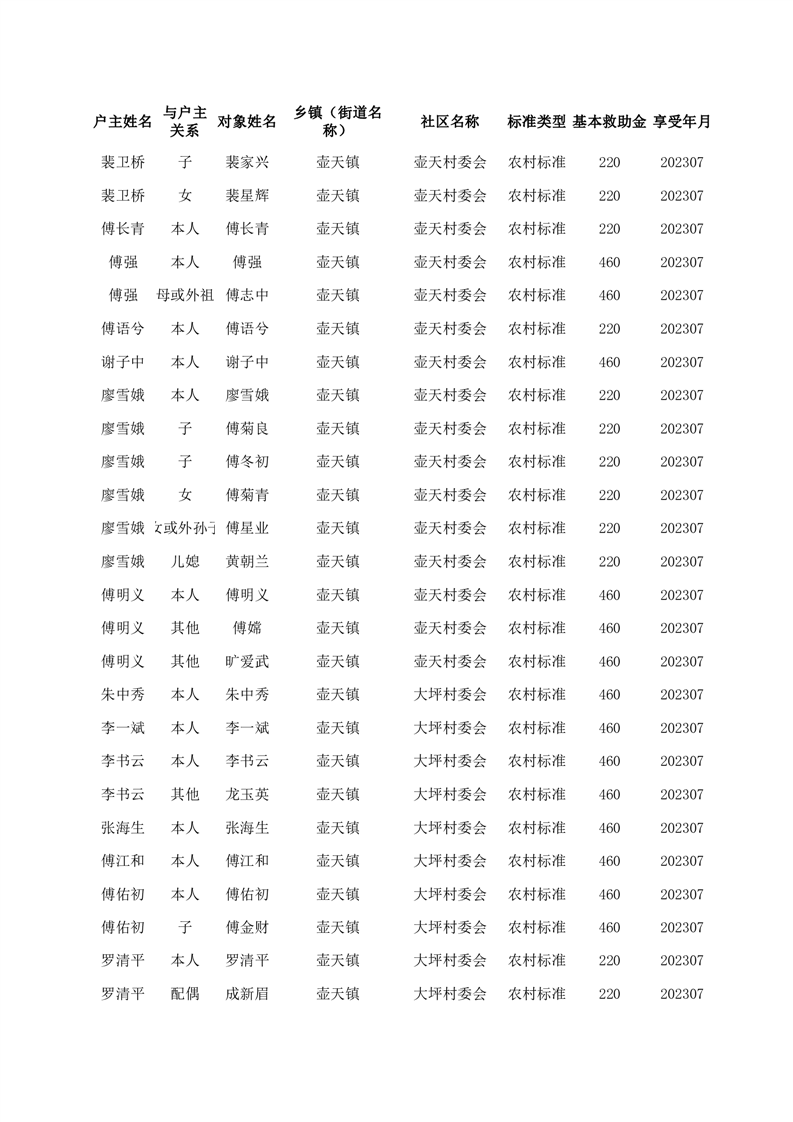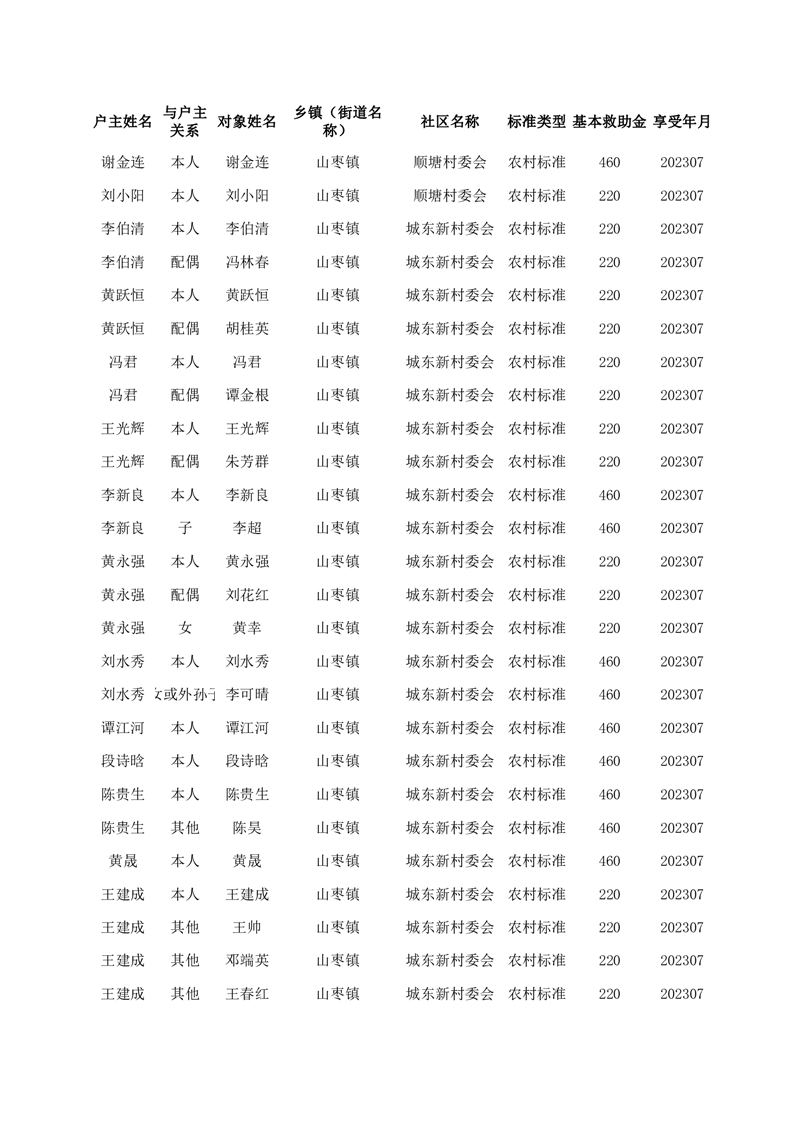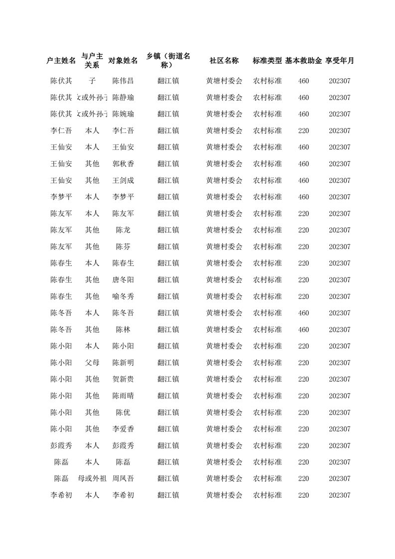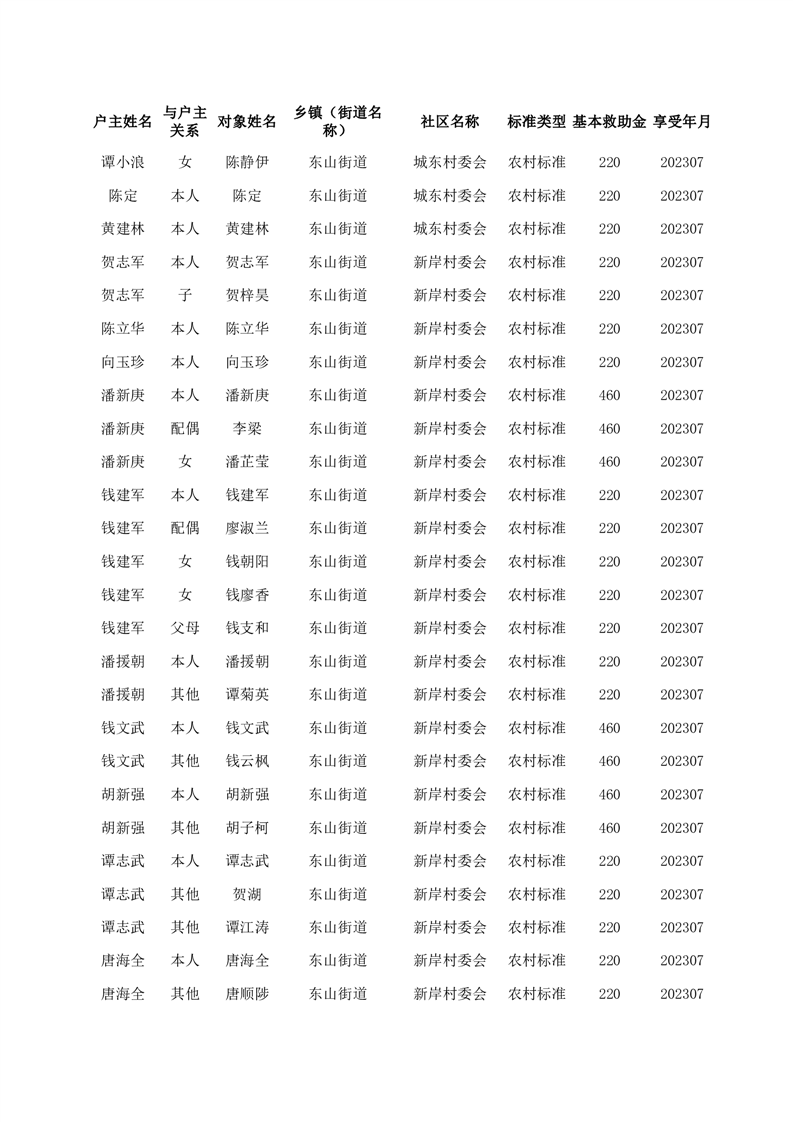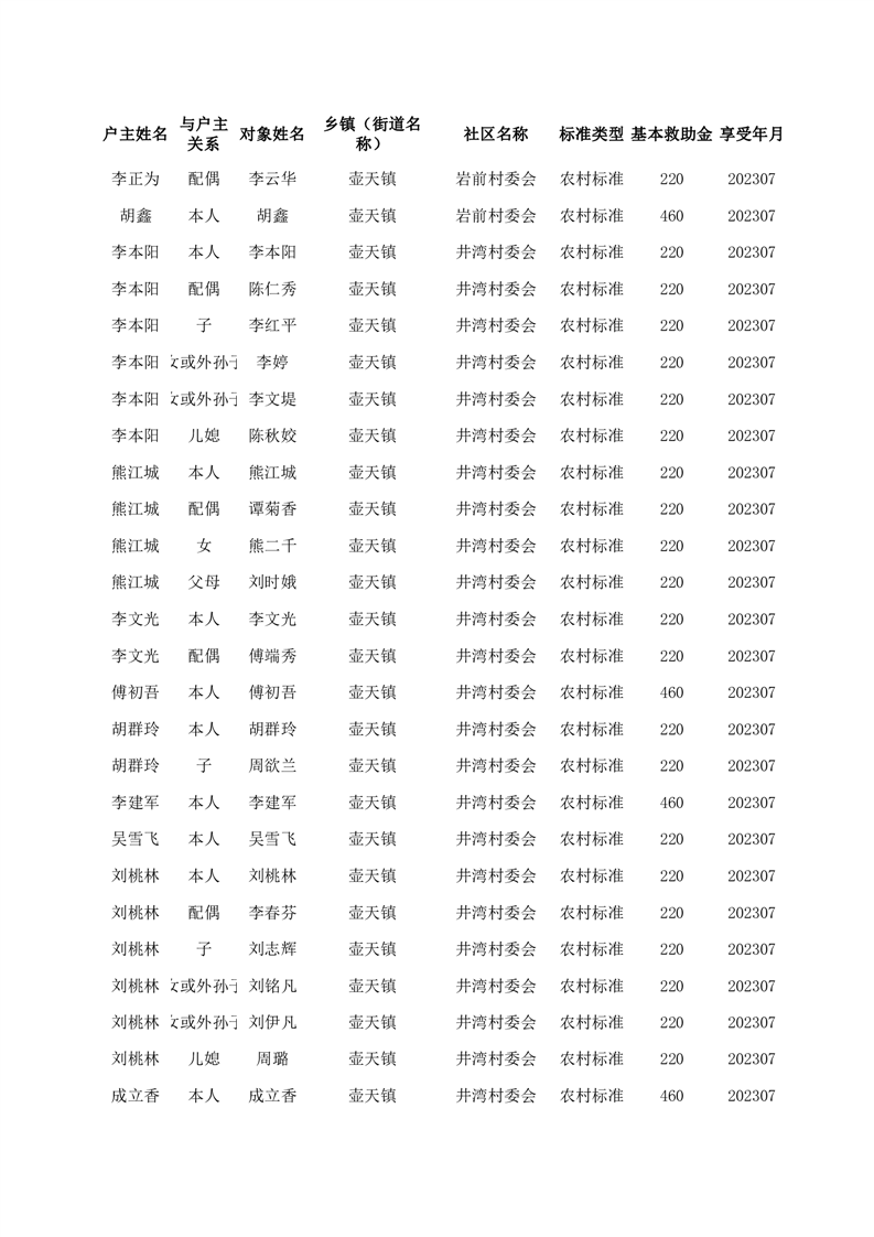 湘鄉市2023年7月份農村低保救助對象審批匯總表