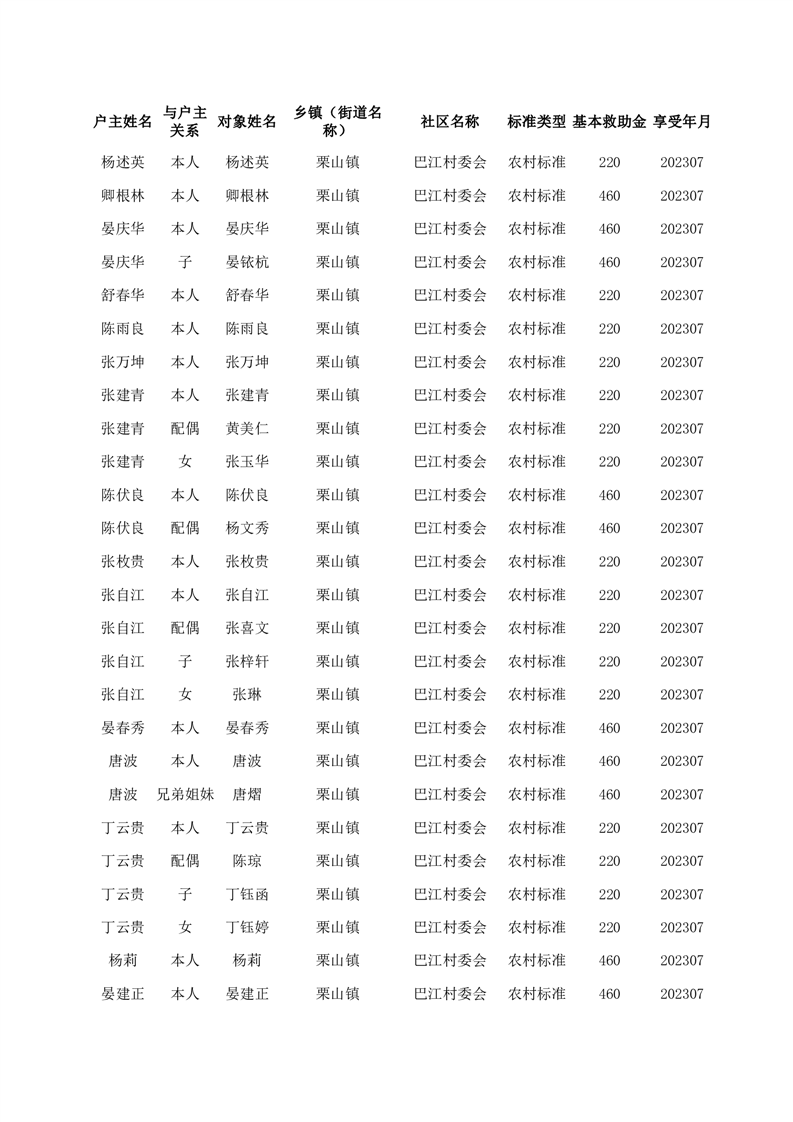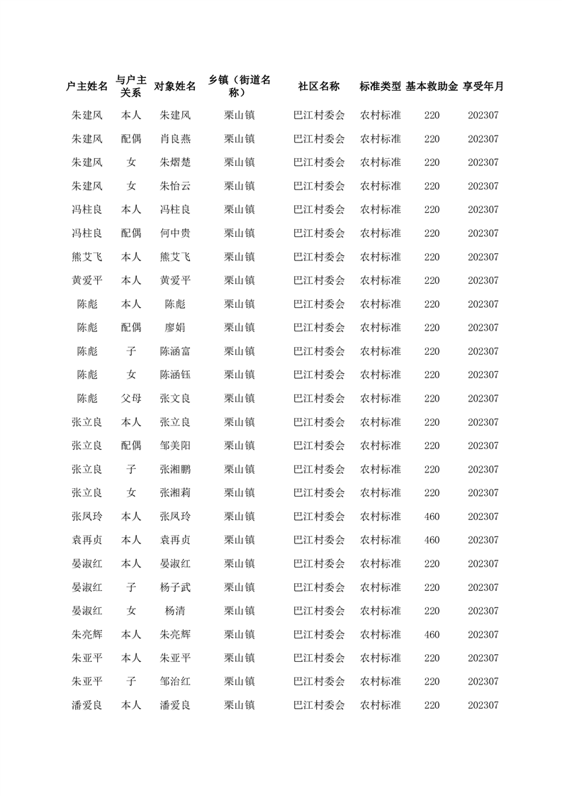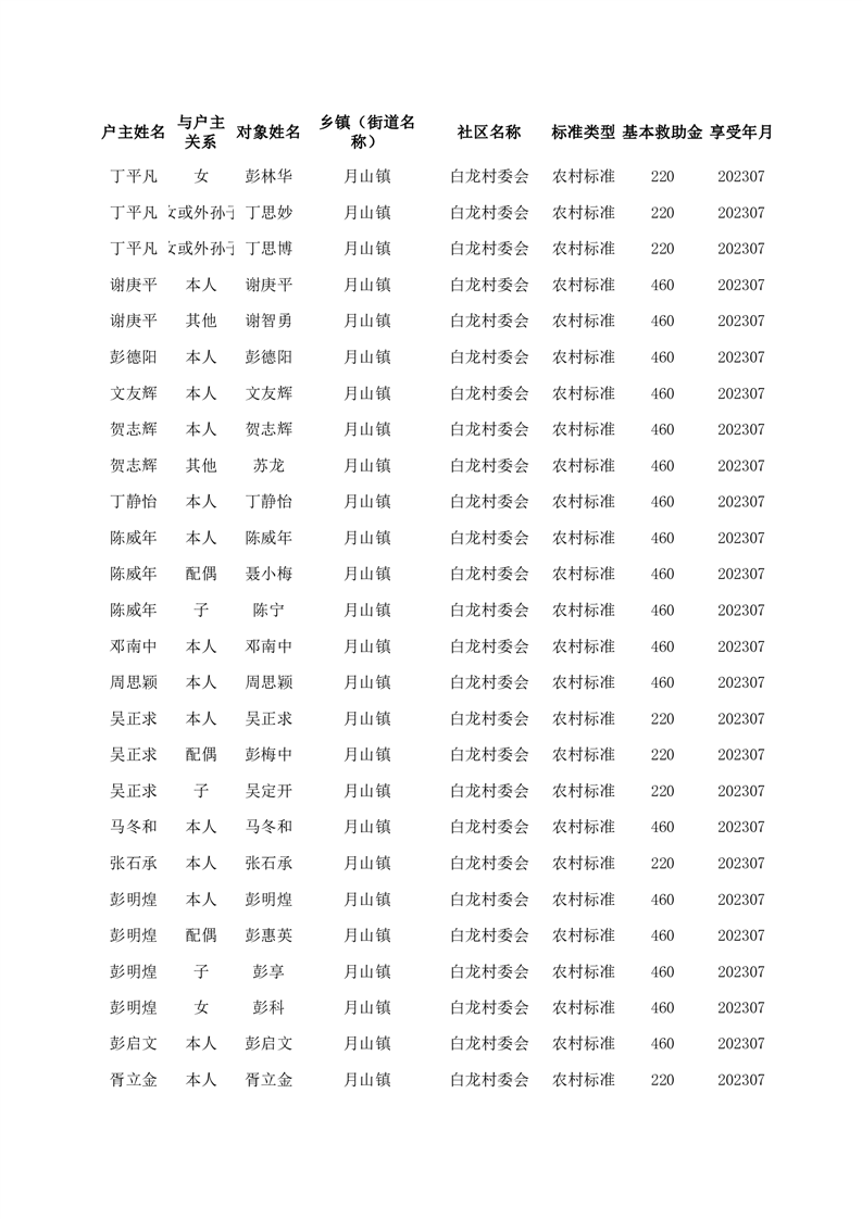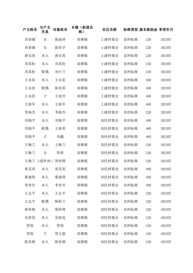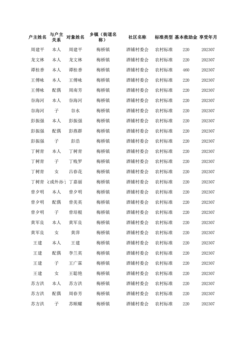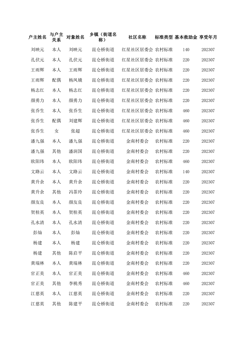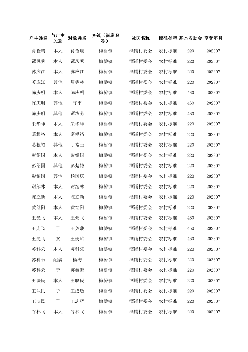 湘鄉市2023年7月份農村低保救助對象審批匯總表
