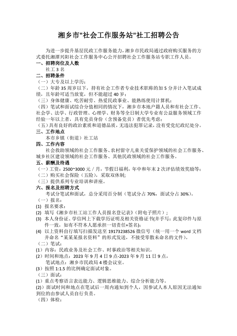 湘鄉(xiāng)市"社會工作服務(wù)站"社工招聘公告