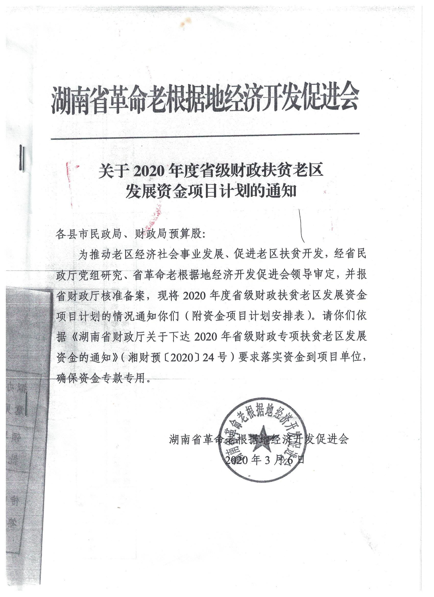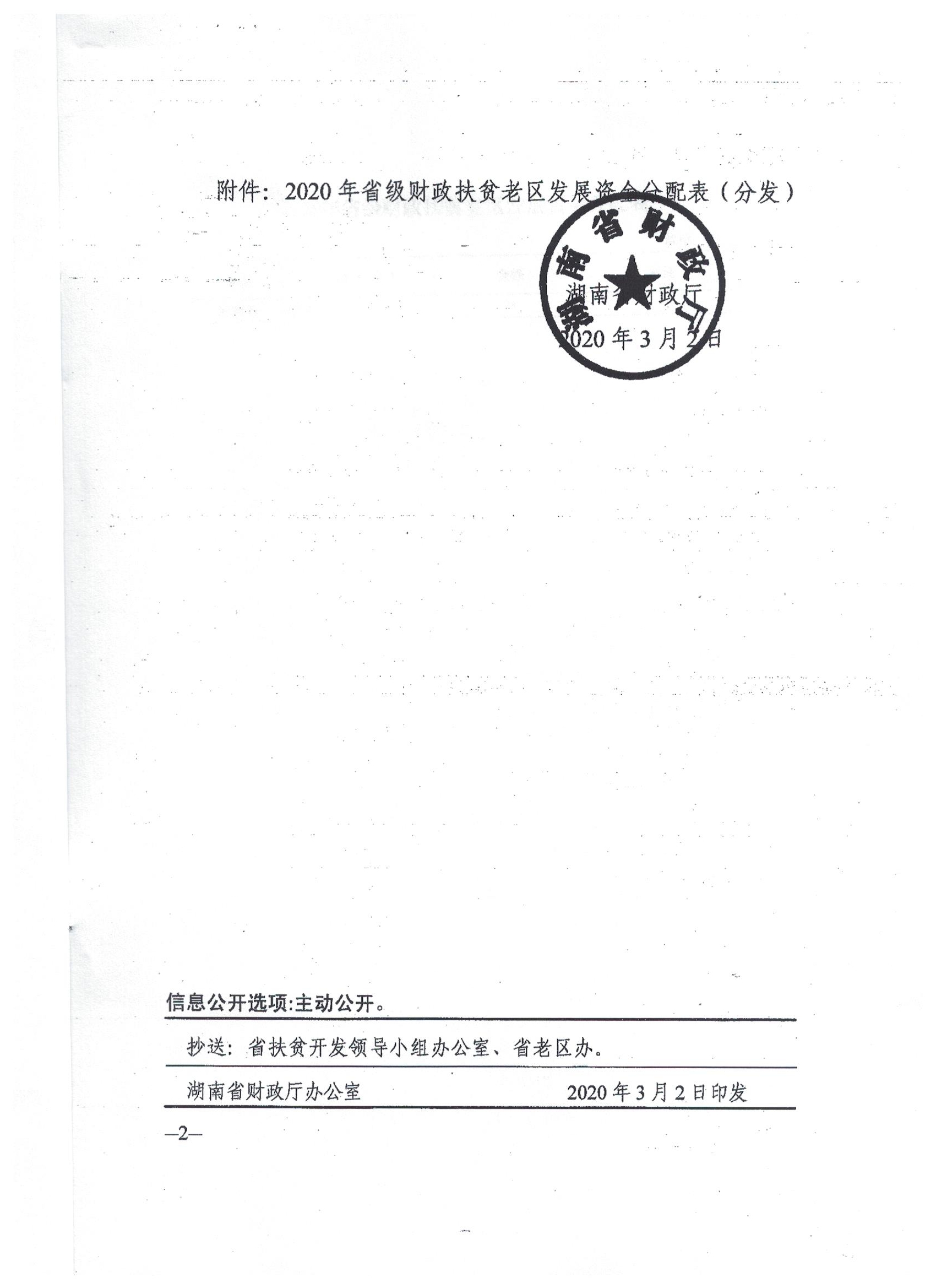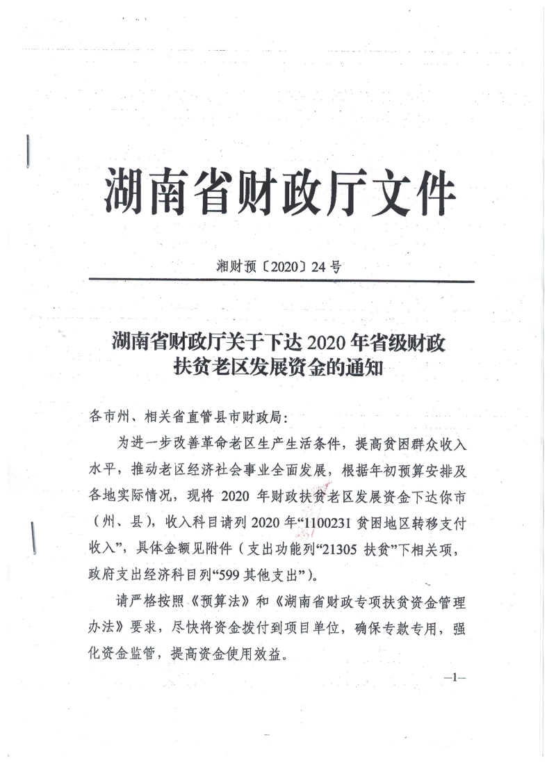 湖南省財(cái)政廳關(guān)于下達(dá)2020年省級(jí)財(cái)政扶貧老區(qū)發(fā)展資金的通知