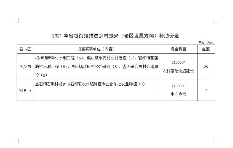 2021年省級銜接推進鄉村振興(老區發展方向)補助資金