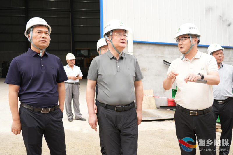 當天,趙新文首先來到廣箭灣礦區,詳細了解礦區建設情況。該礦區采礦權于2023年由湘潭綠色礦山集團(湘鄉)有限公司依法摘牌。目前,礦山工業區建設嚴格遵循綠色礦山創建要求及設計文件實施,項目建成后,將落實環境保護要求,產品加工、儲存及發運均采用全封閉設計,并配套降塵、降噪等措施。