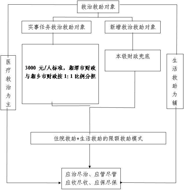 堅持“醫療救治為主,生活救助為輔”原則,最大限度收治符合條件的有肇事肇禍行為傾向或者危險性評估在3級及以上且參加我市醫保范圍、家庭貧困的嚴重精神障礙患者。采取“住院救治+生活救助”的限額救助模式,按照確定救治救助對象、醫療救治、“五包一”管理、后續管理的流程,全面組織實施嚴重精神障礙患者救治救助工作,做到“應治盡治、應管盡管、應收盡收、應保盡保”。