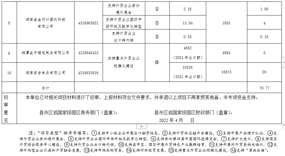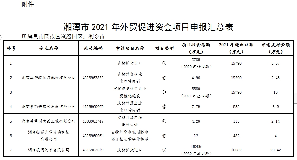 湘潭市2021年外貿(mào)促進(jìn)資金項(xiàng)目申報(bào)匯總