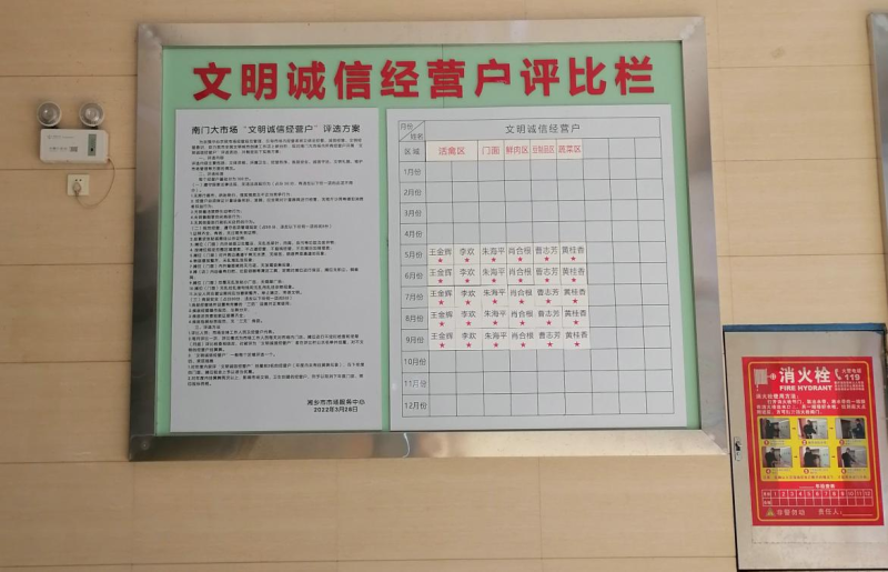 評選內容為主體資格、環(huán)境衛(wèi)生、經營秩序、食品安全、誠信守法、文明禮貌、維護市場管理等。此次“文明誠信經營戶”評選活動參評對象共計73戶。其中,活禽區(qū)6戶;門面區(qū)32戶;鮮肉區(qū)10戶;豆制品區(qū)3戶;蔬菜區(qū)10戶;魚類區(qū)6戶;羊狗肉區(qū)4戶;臘貨區(qū)2戶。活動采取每月一評比方式,由市場工作人員每天對市場內門店、攤位進行不定時檢查,于每月底綜合評比打分,并定期公示“文明誠信經營戶”名單。同時,對不文明的經營戶也將掛黃牌提醒。