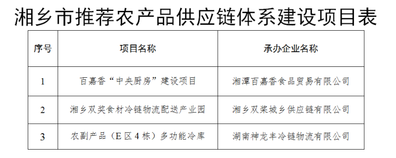 湘鄉市2024年度加快農產品供應鏈體系建設項目推薦名單公示