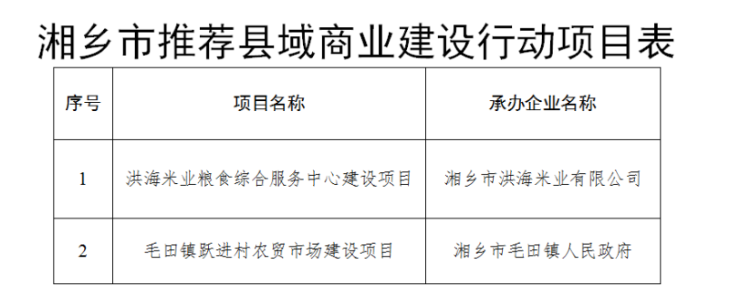 湘鄉市2024年度縣域商業體系建設項目推薦名單公示
