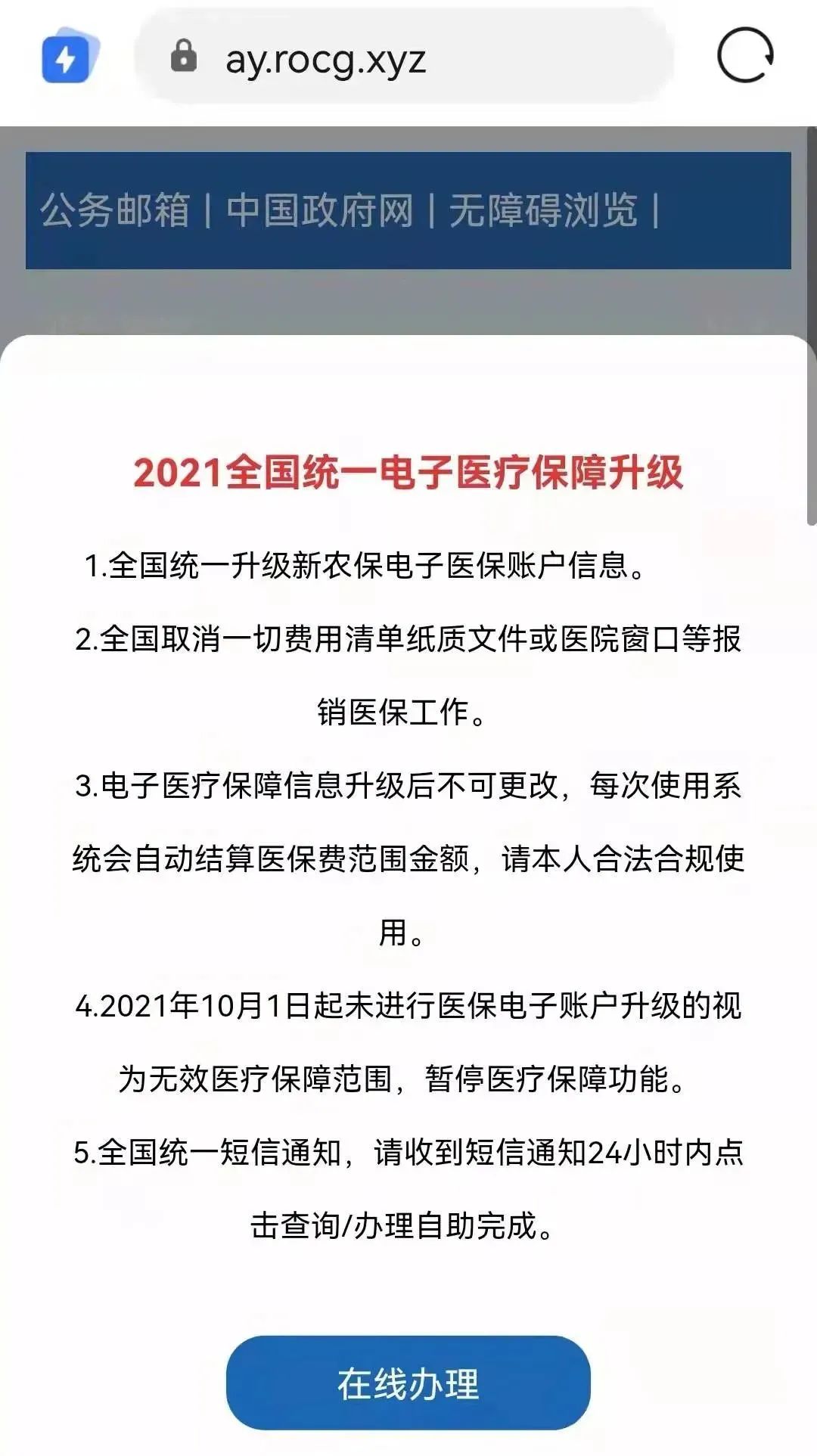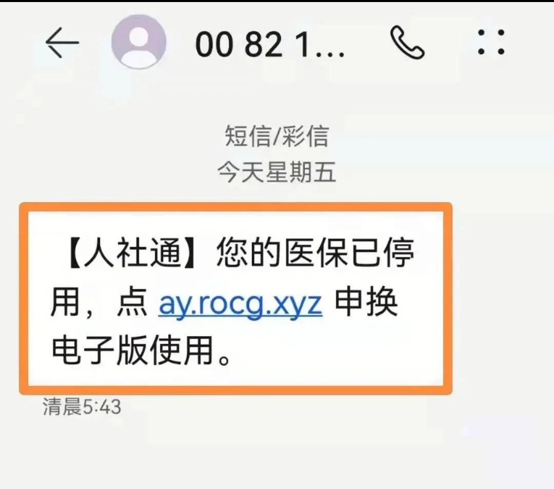 昨日凌晨,小鄧手機上收到一條短信:【人社通】您的醫保已停用,點ay.rocg.xyz申換電子版使用。