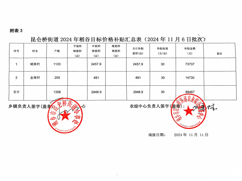 昆侖橋街道2024年稻谷目標價格補貼公示