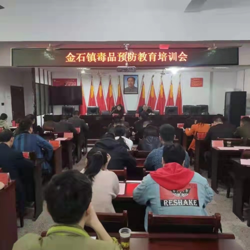 13日,金石鎮在四樓會議室組全體機關干部召開禁毒知識培訓會。