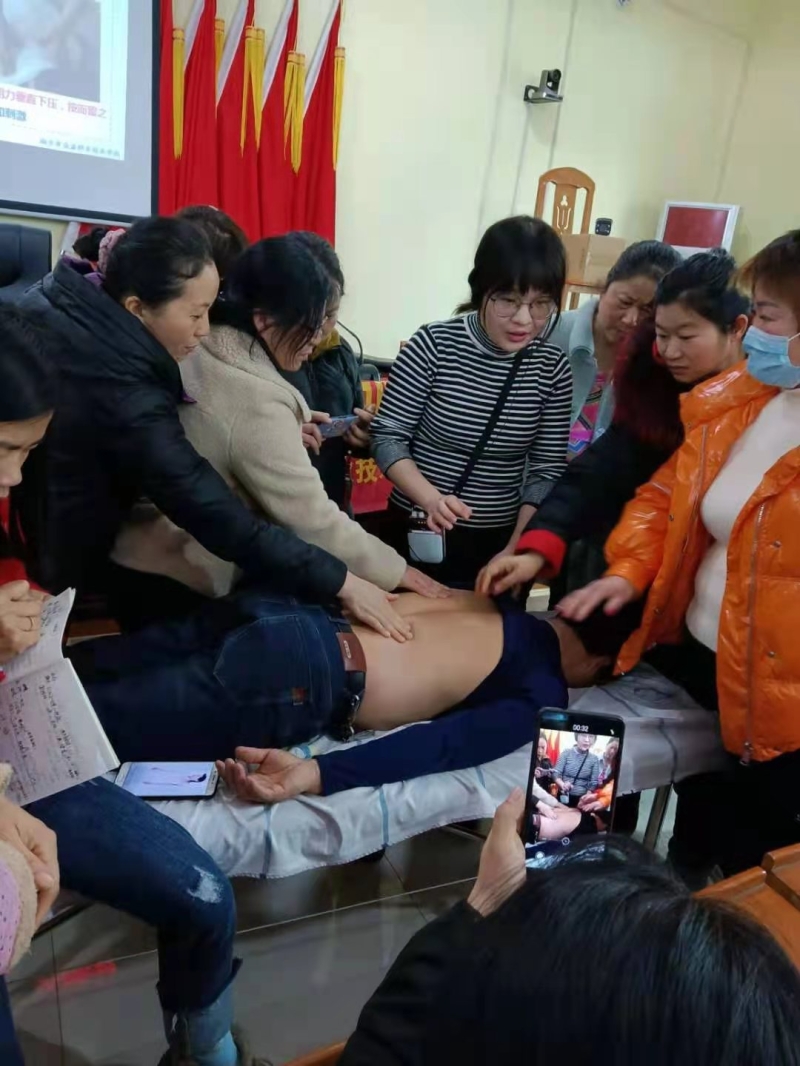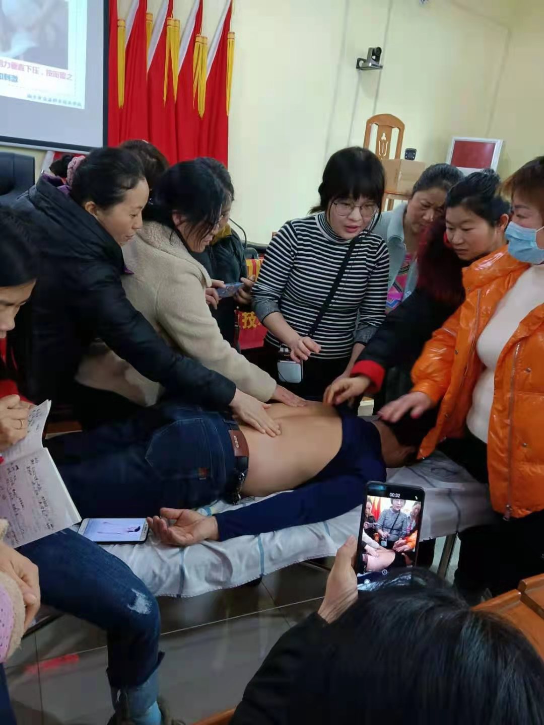 本次培訓的學員有來自東郊鄉各村的空閑勞動力、精準扶貧對象、企業職工、失業登記人員50余人。培訓內容主要是:仰臥位按摩手法基本知識及手法實操、俯臥位按摩手法基本知識及手法實操、經絡與腧穴基礎、人體經絡穴位認知及辨認、意外情況的緊急護理以及接待與禮儀等等。培訓過程中組織學員前往醫院接受專業的中醫按摩,同時也邀請了多家相關企業負責人進行實踐培訓。