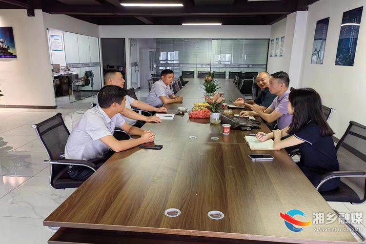 育塅鄉主要負責人(右)外出洽談招商引資工作。
