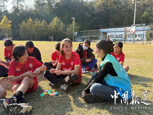 俱樂部隊員多為來自四川大涼山和新疆的女孩,她們年少離家,在綠茵場上追逐夢想。本次活動為48名隊員量身打造,通過心理疏導與互動體驗,為她們構建了一個傾訴與治愈的空間。