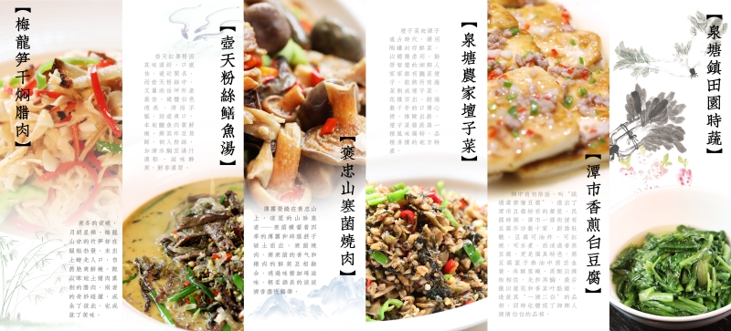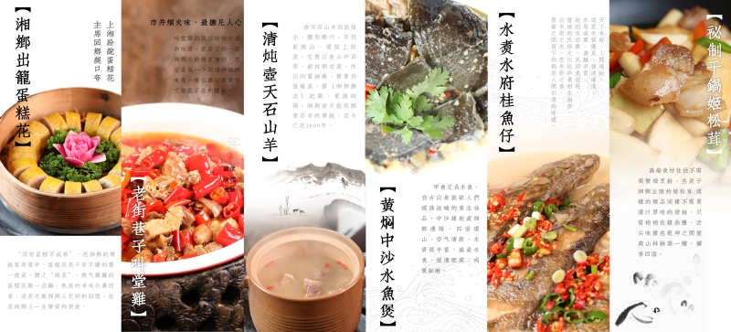 此外,壺天鱔魚粉絲湯、褒忠山寒菌燒肉、黃燜中沙水魚煲、水煮水府桂子魚、干鍋姬松茸、泉塘農家壇子菜、潭市香煎白豆腐、梅龍筍干燜臘肉等等也都是湘鄉名菜。