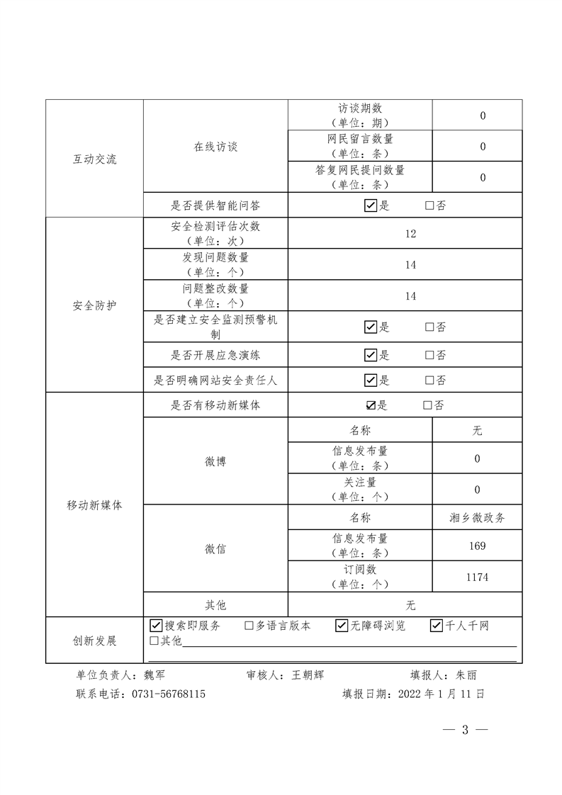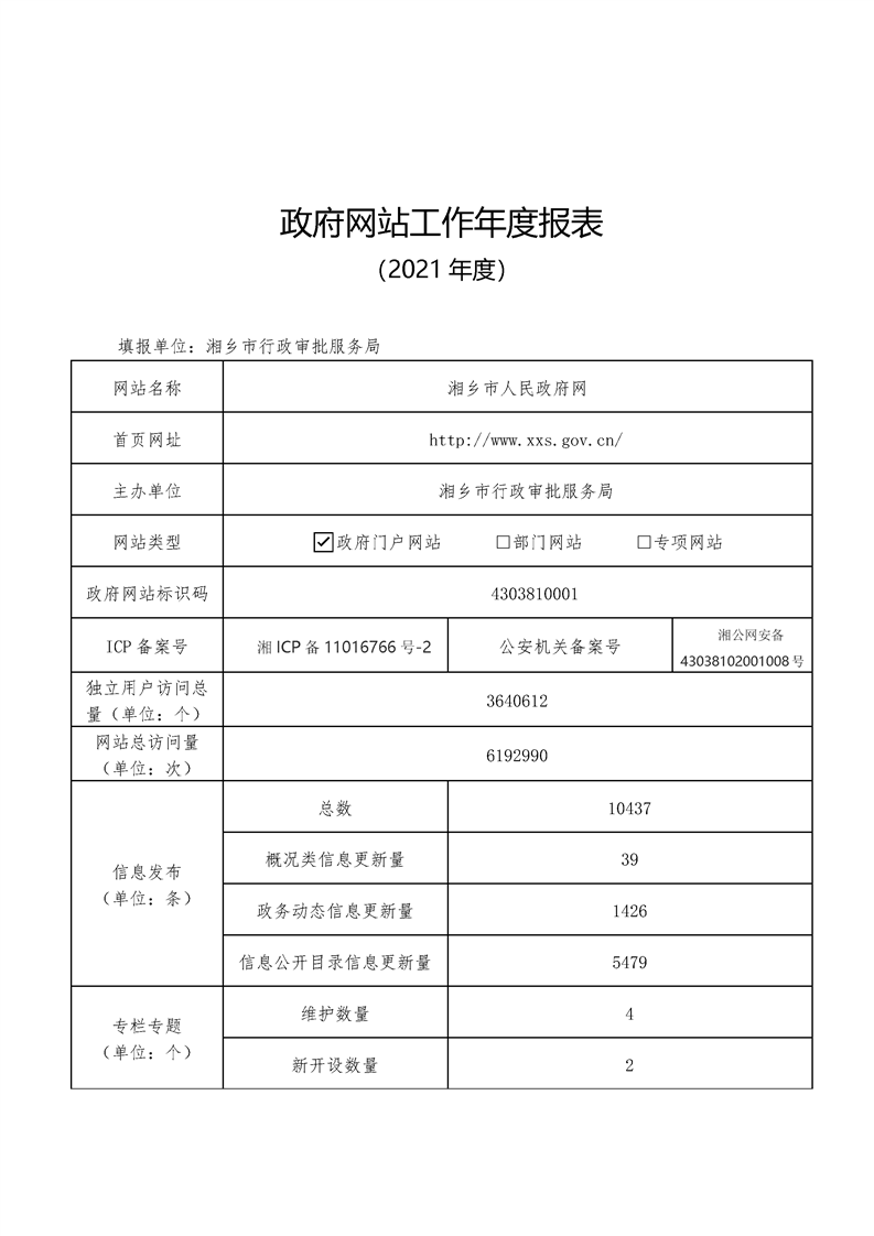 湘鄉(xiāng)市政府網站工作年度報表(2021年度)