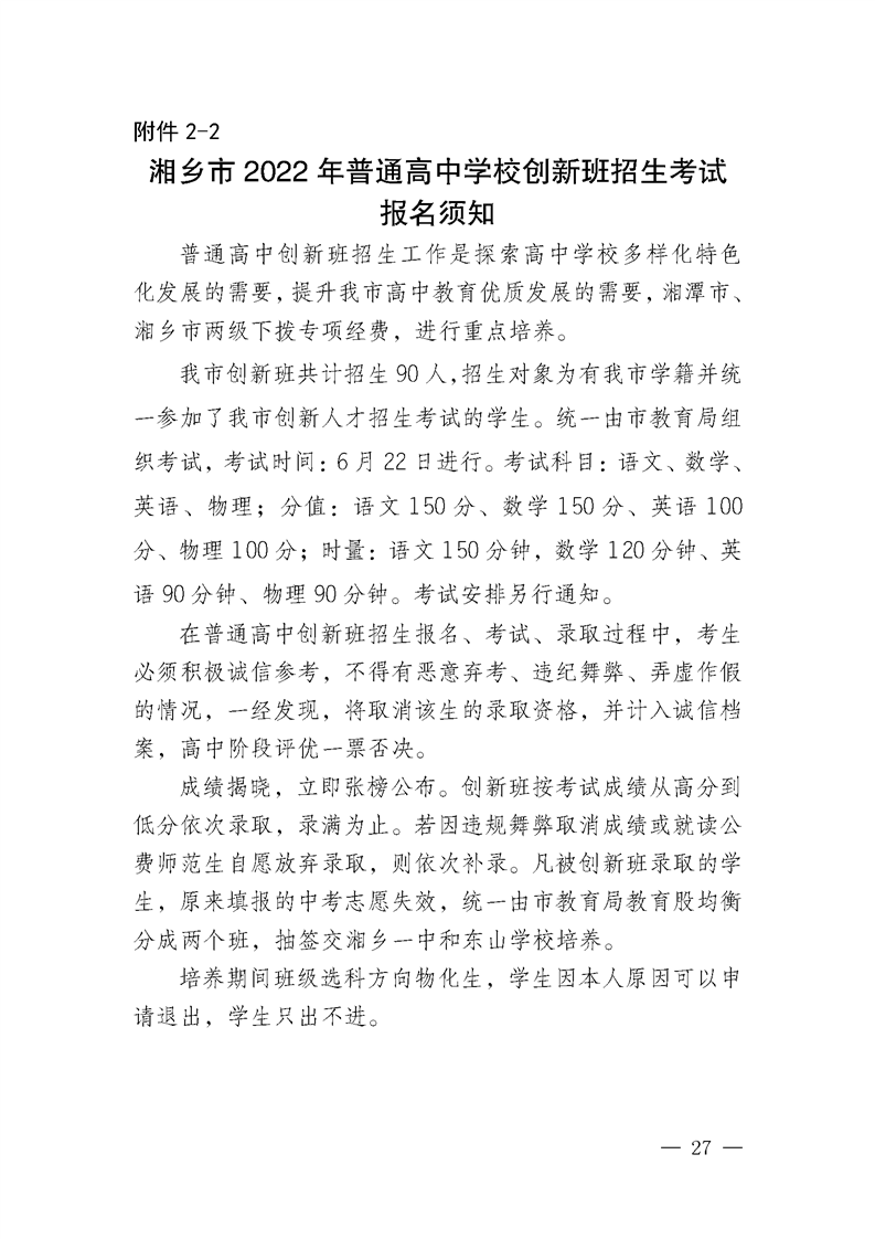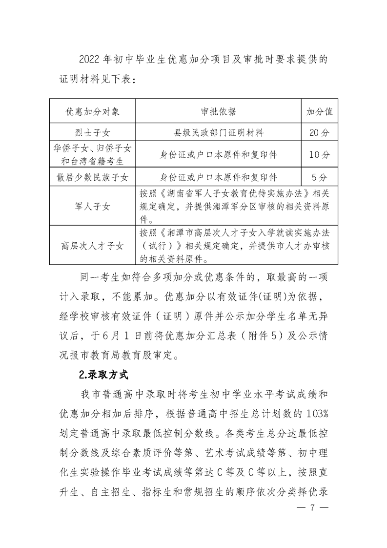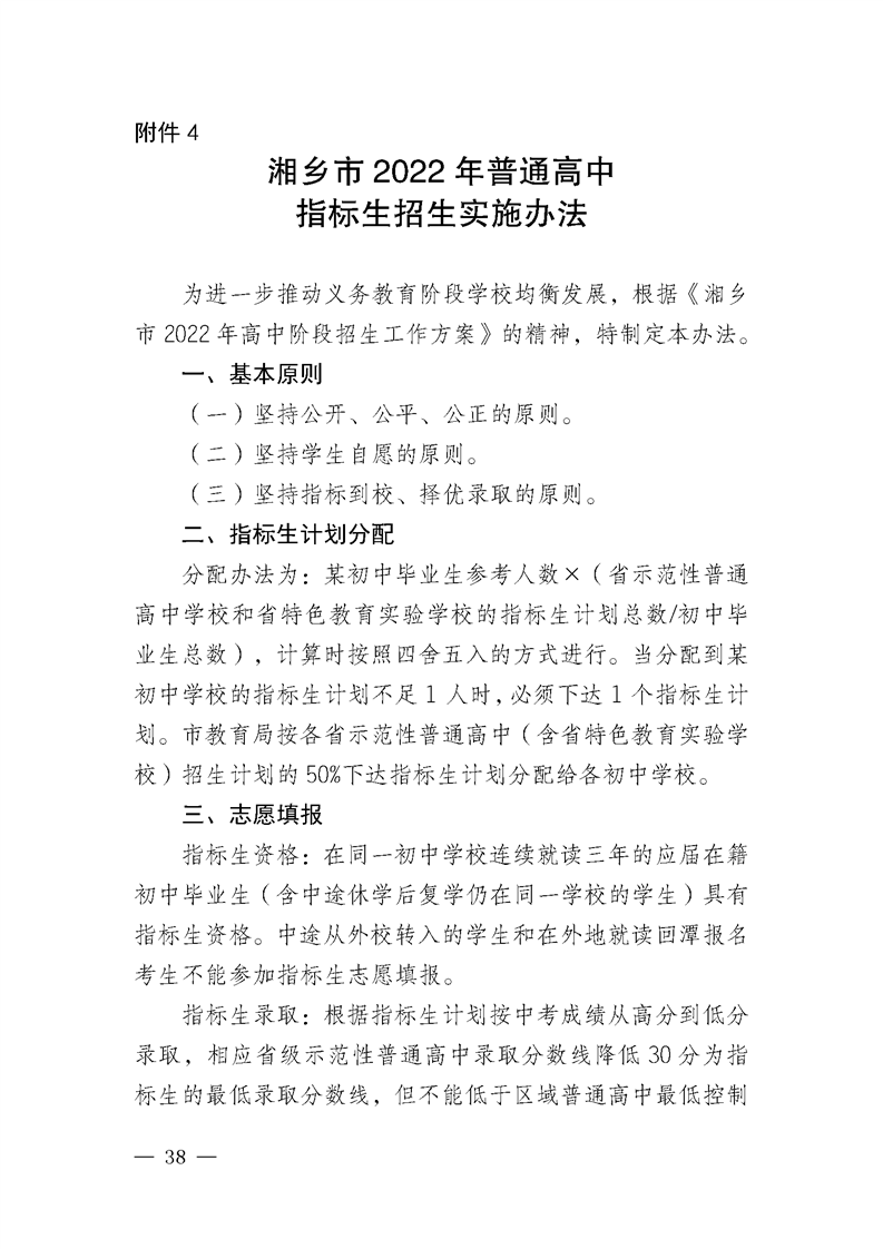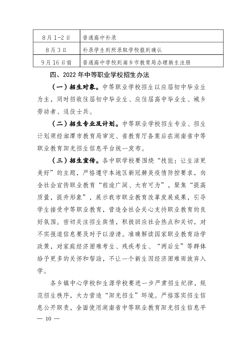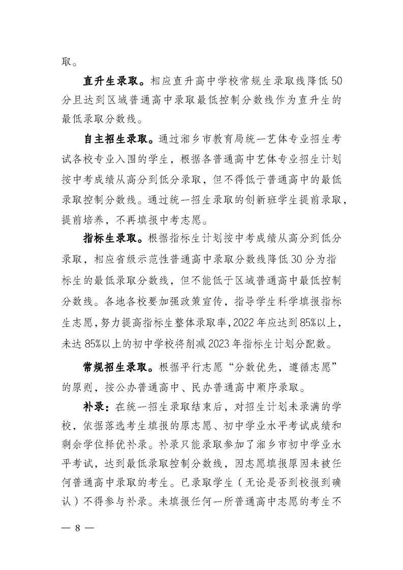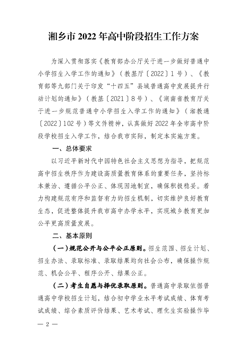 湘鄉市教育局關于印發《湘鄉市2022年高中階段招生工作方案》的通知