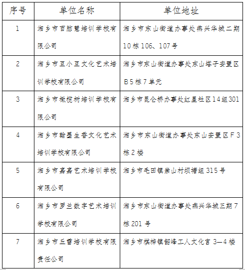 湘鄉市教育局關于同意設立民辦培訓學校的公示(二)